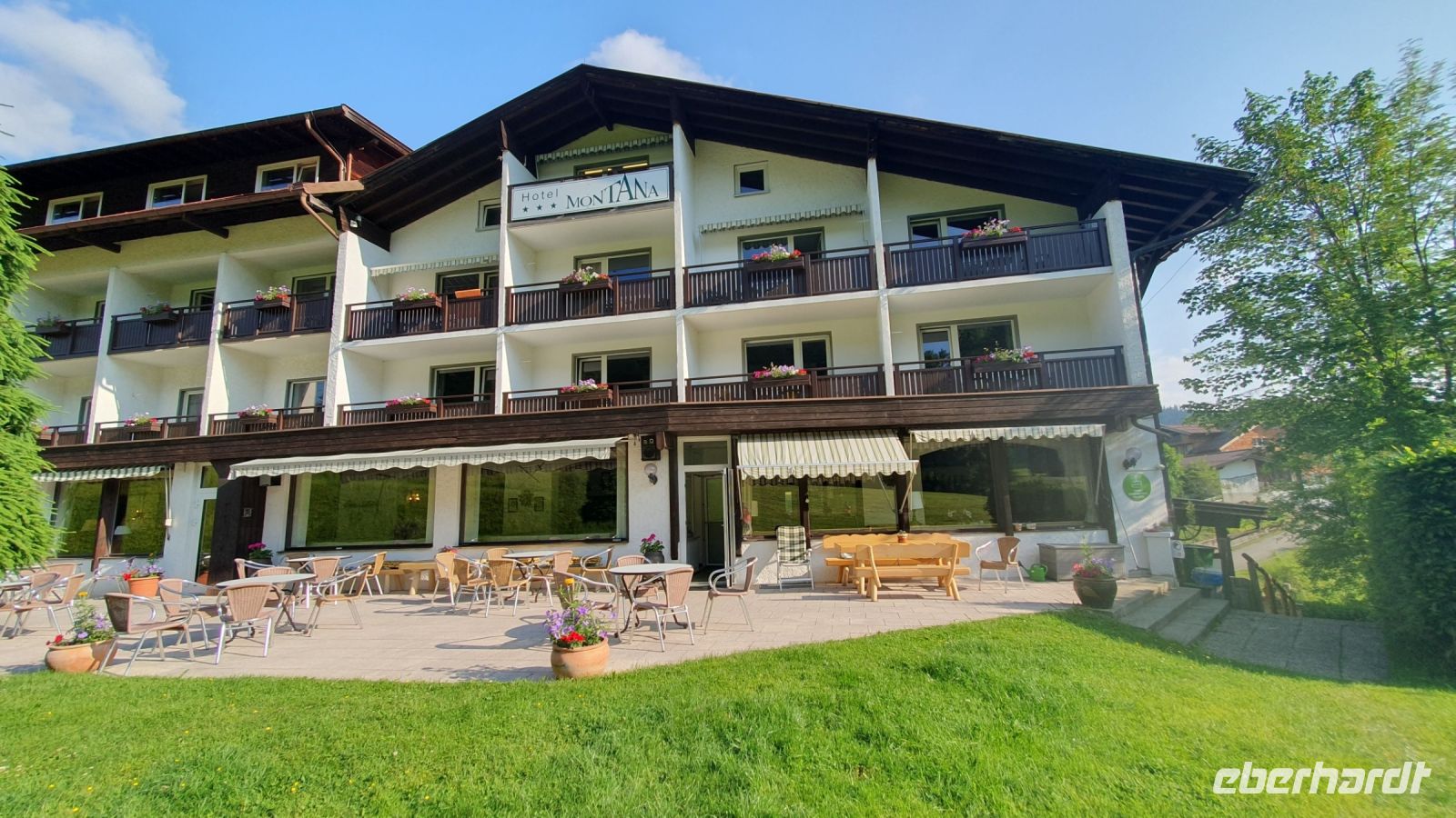 Recht früh mussten wir alle starten zur Busreise ins Kleinwalsertal. Bis kurz vor München nutzte eine kleine Gruppe mit Ziel Pustertal ebenfalls unseren Bus und stieg an der Raststätte Fürholzen um. Wir "umrundeten" München im Nordwesten und fuhren dann durch das bayrische 5 Seenland vorbei am Nordufer des Ammersees Richtung Kempten im Allgäu. Die mächtigen Bergmassive der Allgäuer Alpen kamen immer näher. Nach Oberstdorf passierten wir die Grenze zu Österreich und erreichten das Kleinwalsertal. Dieses 14 km lange Tal ist nur von Deutschland aus zugänglich und gehört zum österreichischen Bundesland Vorarlberg. Heute ist der Tourismus die wichtigste Einnahmequelle und mit der Gästekarte des Hotels kann man alle öffentlichen Busse und Bergbahnen kostenlos nutzen. Das ist ein echter Mehrwert und macht es leicht, das eigene Auto im Urlaub nicht zu bewegen. Am Nachmittag kamen wir in unserem Hotel Montana in Riezlern an, wurden von der Chefin schon im Bus herzlich begrüßt und konnten auch sogleich unsere Zimmer beziehen. Der erste Eiskaffee auf der wunderschönen und ruhigen Hotelterrasse schmeckte vorzüglich und nun konnte der Urlaub beginnen. Nach und nach trudelten auch unsere Teilnehmer mit Bahnanreise im Hotel ein und so war unsere Singlegruppe komplett. Am Abend wurden wir mit einem 5 Gang Menue verwöhnt und danach trafen wir uns in der Lobby des Hotels bei einem Glas Prosecco zu einer kleinen Vorstellungsrunde und danach gab es viele Informationen zur bevorstehenden Wanderwoche. Unser Busfahrer aß mit uns noch zu Abend, fuhr dann aber am frühen Morgen wieder zurück.