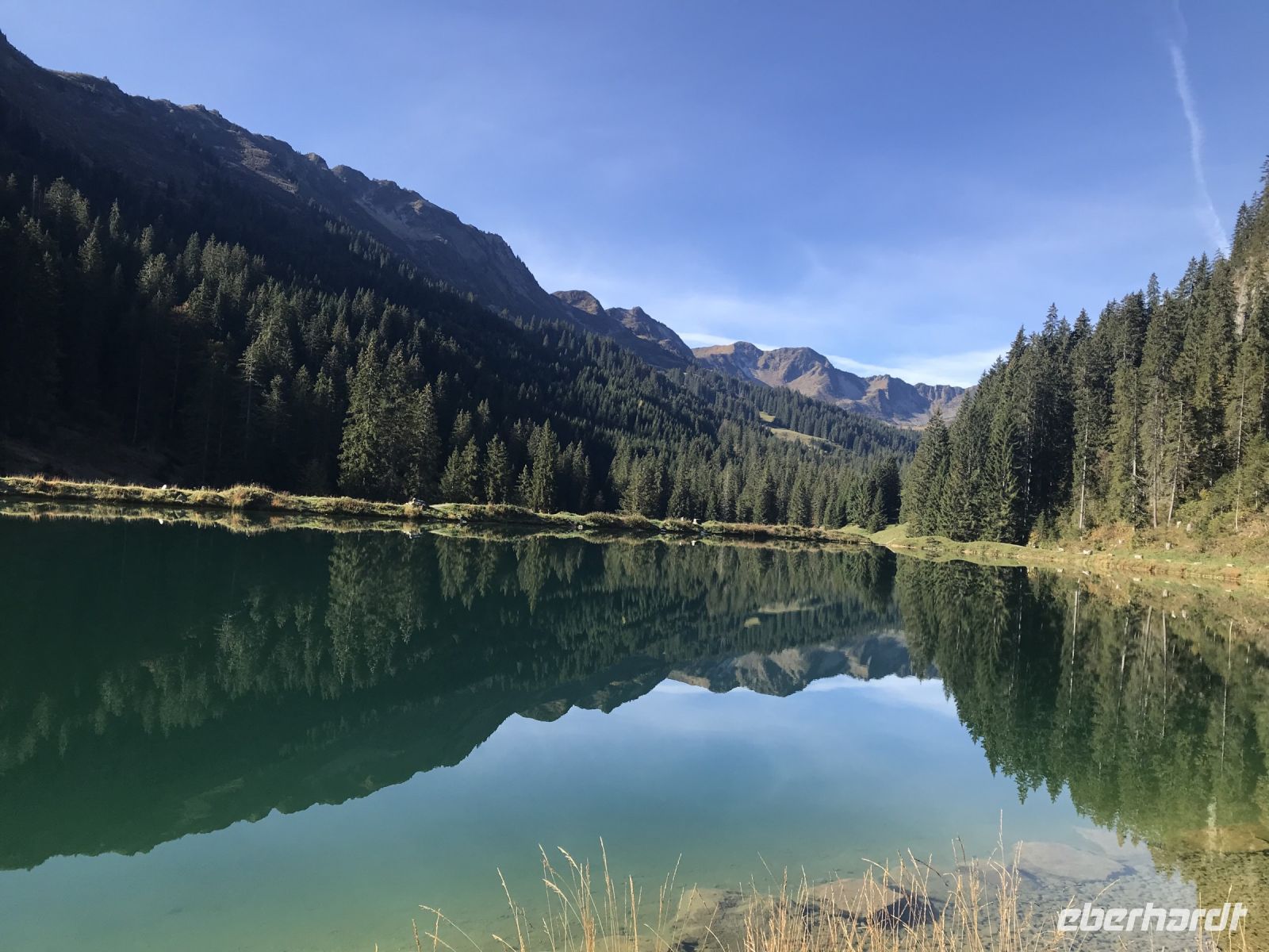 Entlang der Schwarzwassertalstraße ging es in Richtung Auenhütte, rundherum um den Herzsee. Dieser ist als Beschneiungssee errichtet. Im Wasser spiegelten sich die Felsen und es fiel schwer, nicht andauernd Fotos zu schließen.