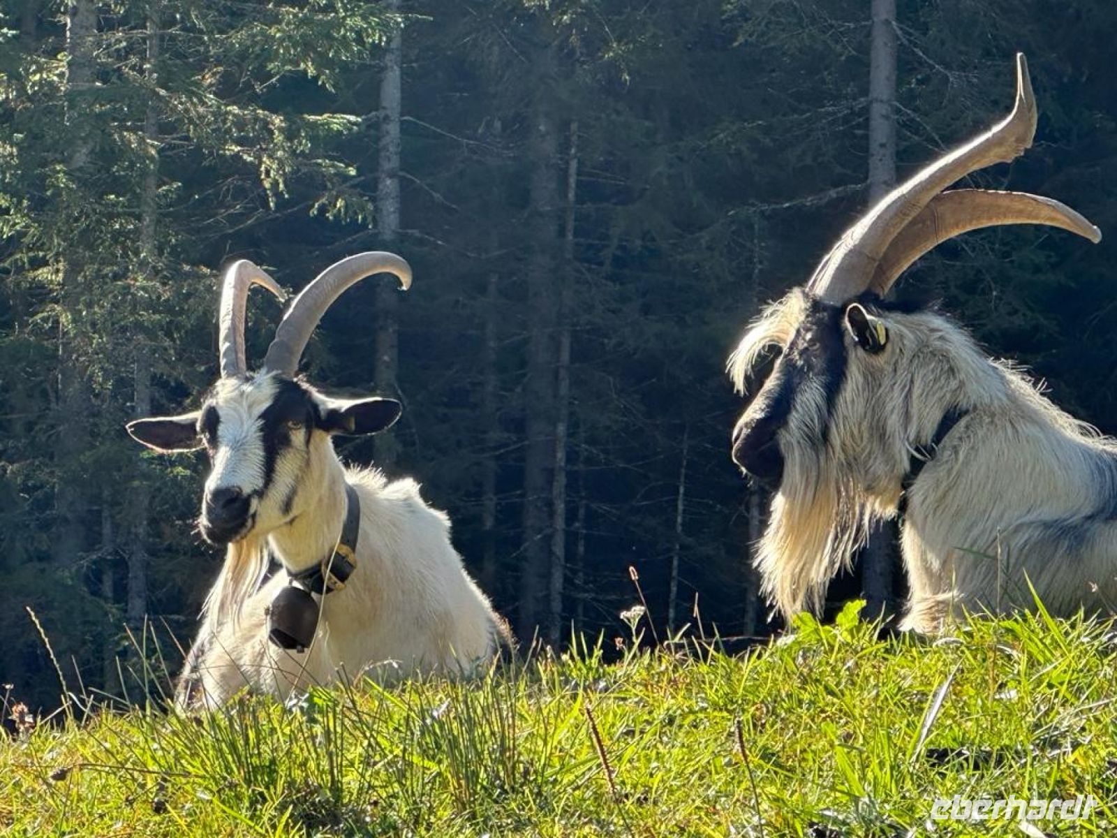 An der Hütte genossen wir eine Stunde Pause, zum in der Sonne sitzen, sich ans Fernglas zu begeben, um die Gämsen hoch oben zu beobachten oder sich einen Imbiss zu gönnen.