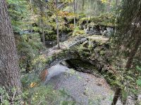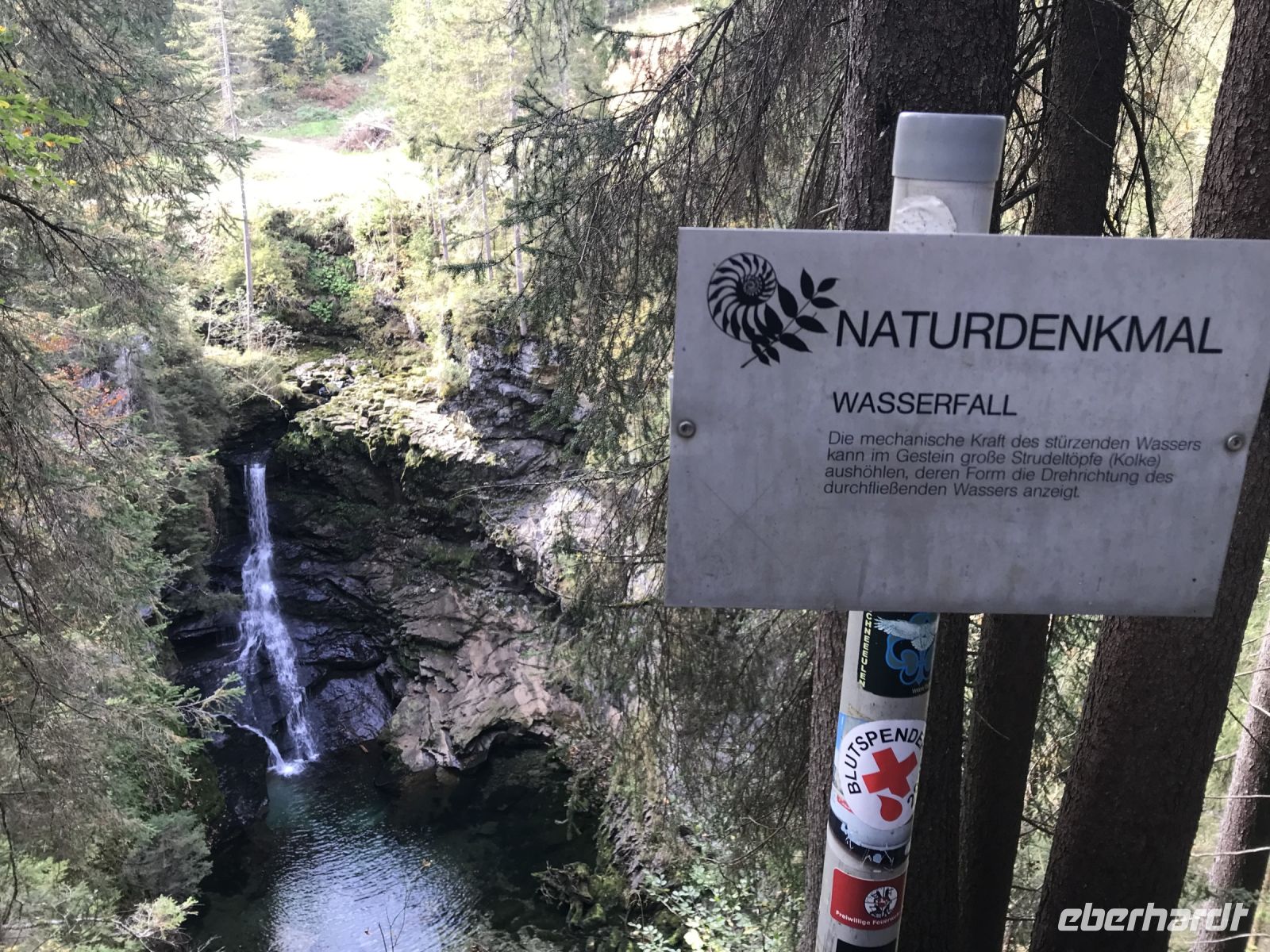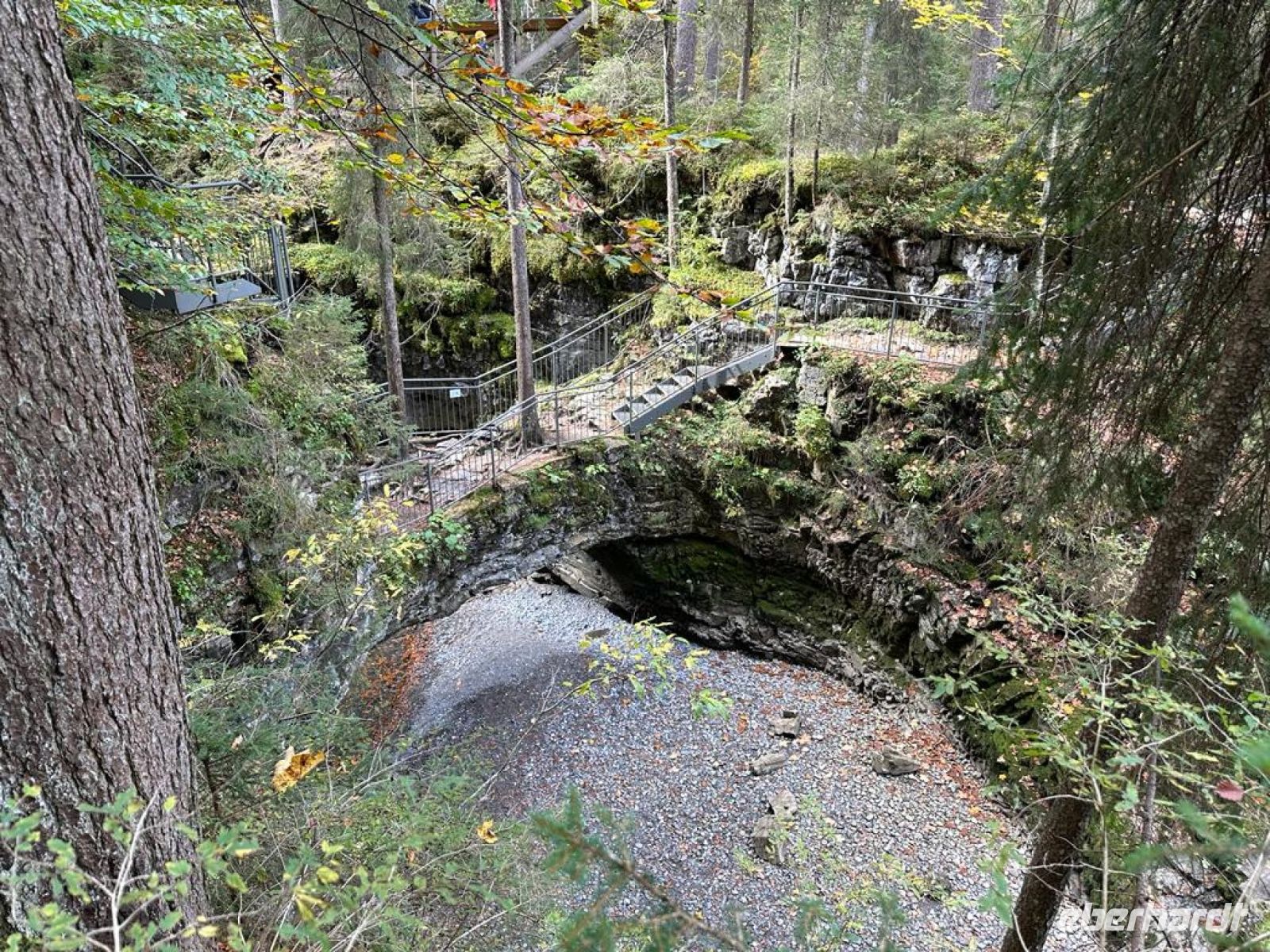 Abwärts nutzten wir auch die Gondel, gingen weiter über’s Oberwäldle, Richtung Hirschen, entlang dem Schwarzwasserbach und deren Kessellöcher. Weiter bis zur Naturbrücke und zum Naturdenkmal „Wasserfall“ Richtung Mahrtal, bis hin zur Hängebrücke.