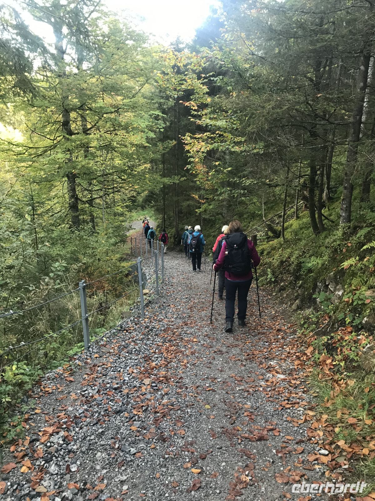 Über den Zwingsteg und das Breitachhoch ging es direkt oberhalb der Klamm entlang. Wir konnten auf den Gehweg der Klamm schauen und die gigantischen Felsformationen bestaunen - was die Natur so geschaffen hat - Wahnsinn! Wir überquerten eine Brücke, welche dann von der Klamm aus hoch über uns war, geschätzte 40 m. Die Sonnenstrahlen schimmerten durch den Wald, die erste Blätterfärbung war herrlich ins Bild gesetzt. Traumhaft.