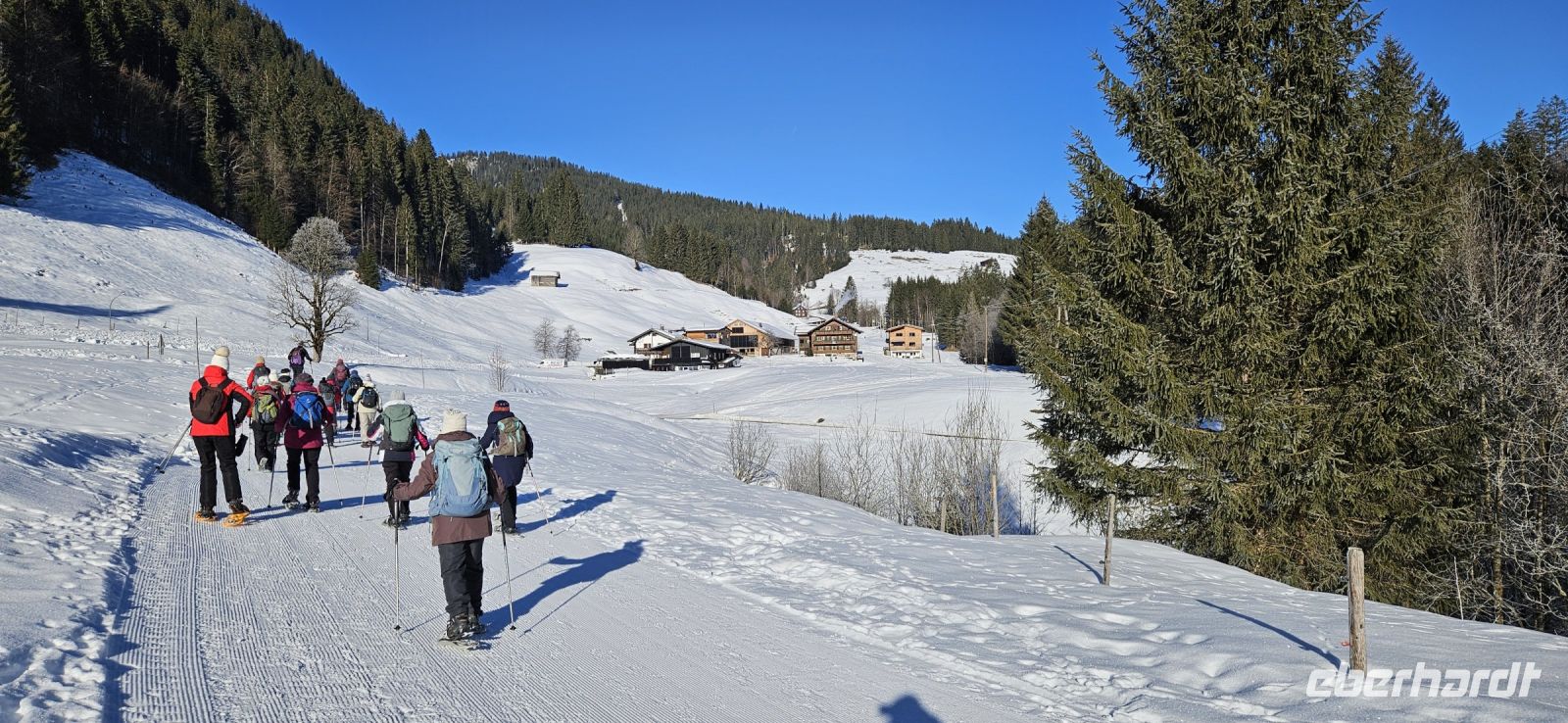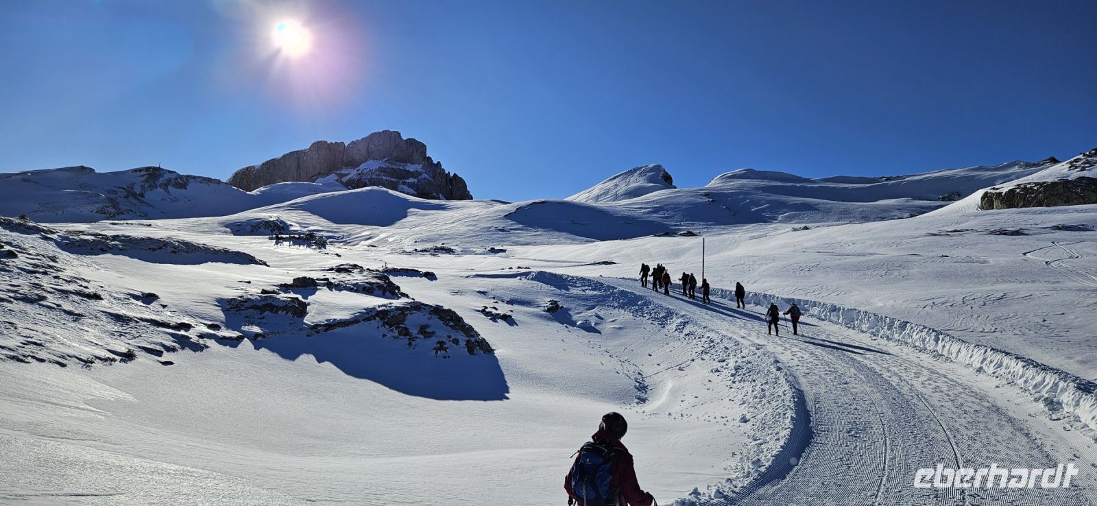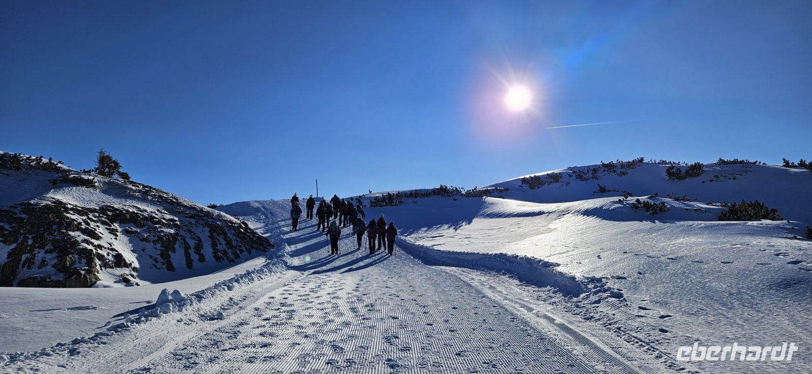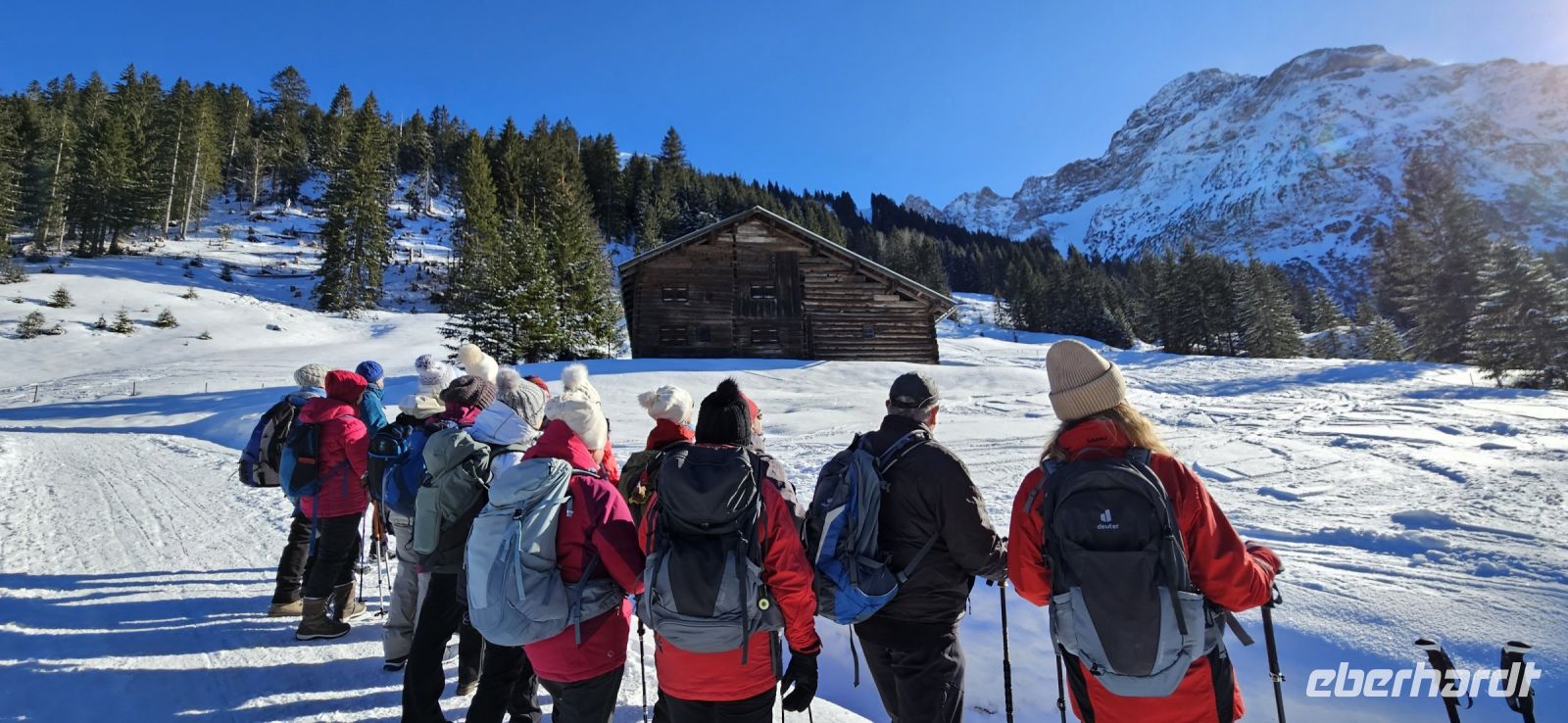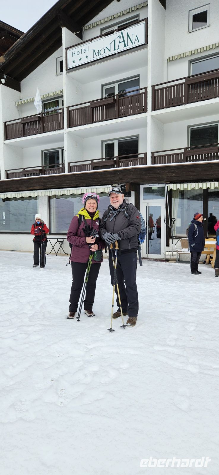 Eine wunderschöne Winterwanderwoche mit Schnee und viel Sonnenschein lag vor uns und alle 16 Gäste waren gespannt auf die Wanderungen zu Fuss, mit Schneeschuhen und auch eine Rodeltour stand auf dem P
