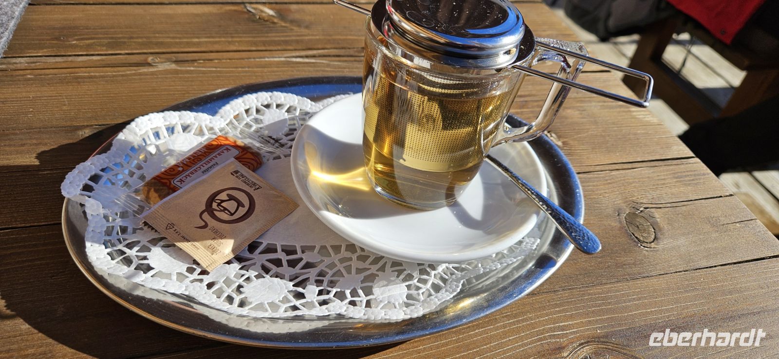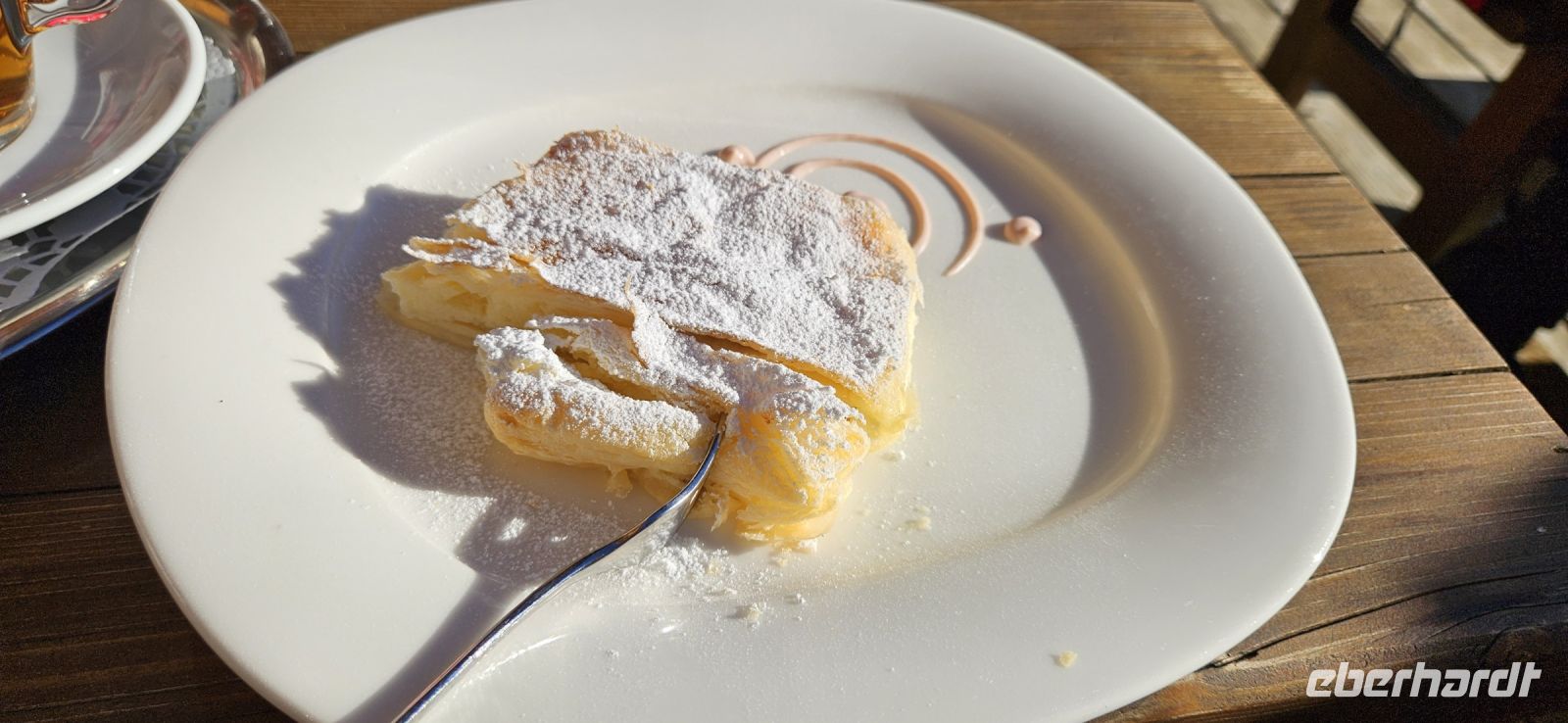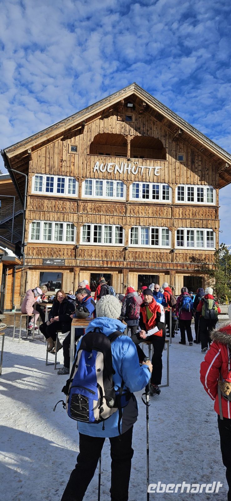 Zur Mittagspause am Hörnle Pass sassen wir draussen in der Sonne und genossen die leckeren Spezialitäten. Danach wanderten wir wieder bergab zum Berghof und nahmen von dort den Bus zurück nach Riezlern. Wir gaben unsere geliehenen Schneeschuhe und Stöcke ab und gönnten uns noch einen Glühwein am Hotel Riezlern. Dann mussten die Koffer gepackt werden und 18.30 Uhr gab es ein letztes Mal das leckere Abendessen. Wir bedankten uns beim Service- und Küchenteam sehr herzlich und begaben uns zu Bett.