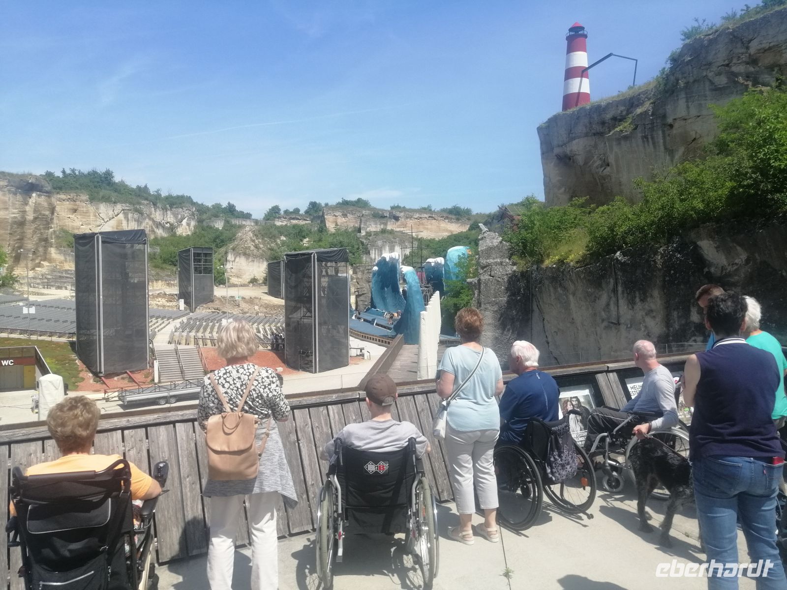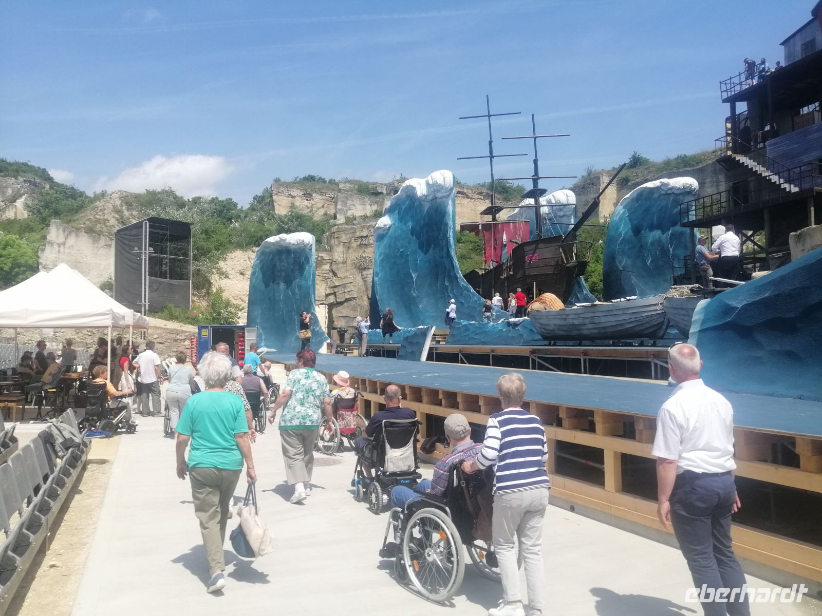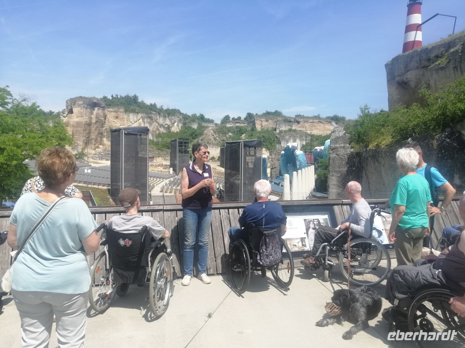 Nach einem reichhaltigen Frühstück starteten wir gut gestärkt mit unserem barrierefreien Reisebus zu einem echten Highlight: dem Steinbruch von St. Margarethen – einem der ältesten und größten in ganz Europa! Dort erwartete uns bereits die charmante Gästeführerin Renate vom Schloss Esterházy, begleitet von ihrem freundlichen Vierbeiner Hexe. Im angenehmen Schatten nahm sie uns mit auf eine lebendige Reise durch Jahrtausende voller Geschichte und Geologie! Schon die ersten Schritte entlang der imposanten Felswände ließen uns staunen – hier wurde seit der Römerzeit Stein für einige der bedeutendsten Bauwerke Europas gebrochen, unter anderem für den Wiener Stephansdom. Renate erzählte mit Begeisterung von den alten Techniken des Steinabbaus und machte die Vergangenheit unter freiem Himmel lebendig. Ein ganz besonderer Moment erwartete uns schließlich im Herzstück des Steinbruchs: das monumentale Amphitheater. Als wir das Theater betraten, lief gerade eine Probe – eine kraftvolle Ouvertüre, die zwischen den steinernen Wänden wie Magie schwebte! Ein Gänsehautmoment in einer Kulisse, die schöner kaum sein könnte!