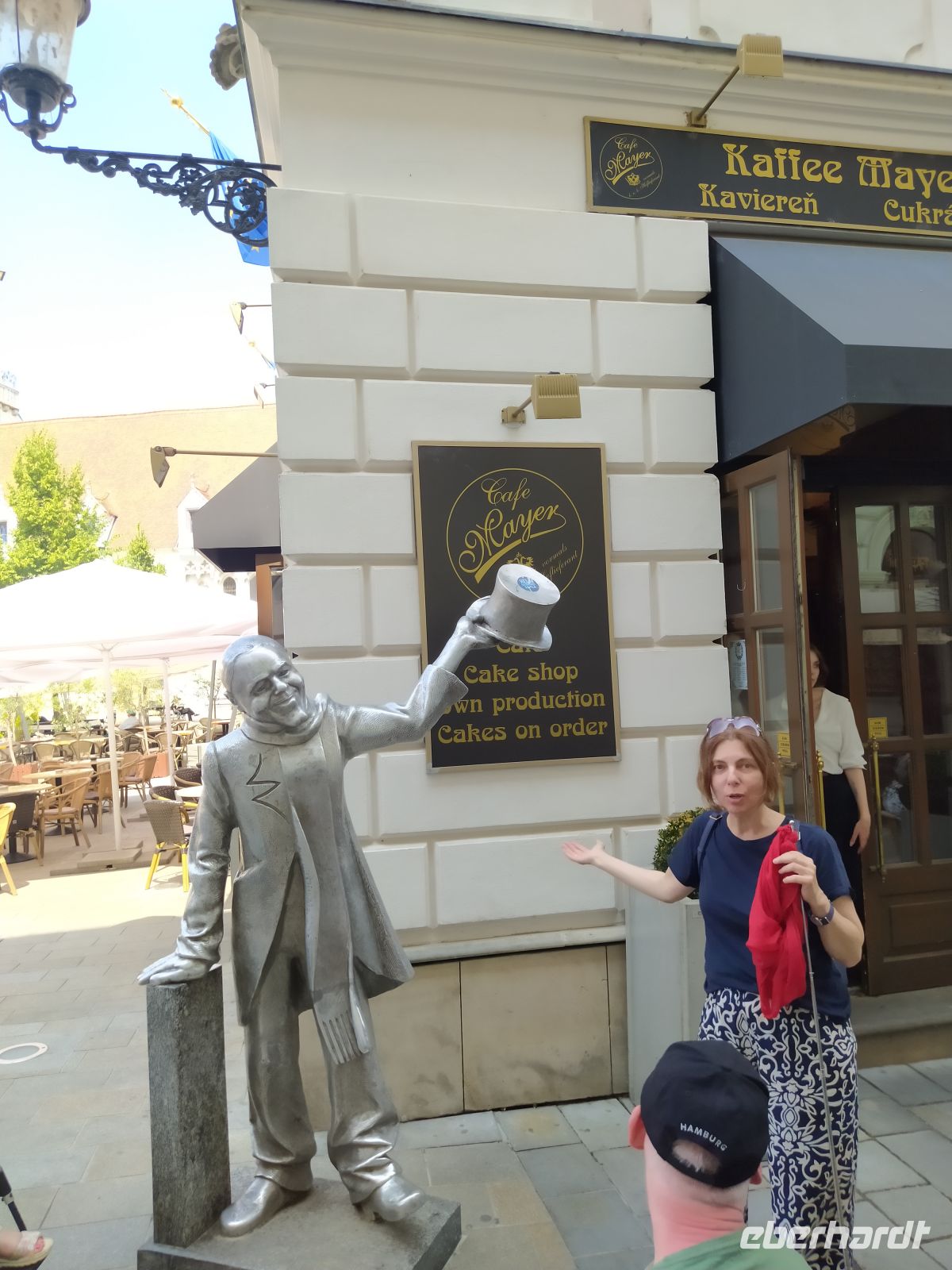 Und dann war da noch Camil – der kleine Junge aus dem Kanaldeckel! Mitten in der Altstadt entdeckten wir die berühmteste Bronzefigur Bratislavas: Camil, der verschmitzt aus dem Gullydeckel lugt. Ob er neugierig das Stadtleben beobachtet oder einfach eine Pause vom Untergrund einlegt – niemand weiß es genau. Aber eins ist sicher: er zaubert jedem ein Lächeln ins Gesicht – und sorgt für das wohl beliebteste Fotomotiv der Stadt!