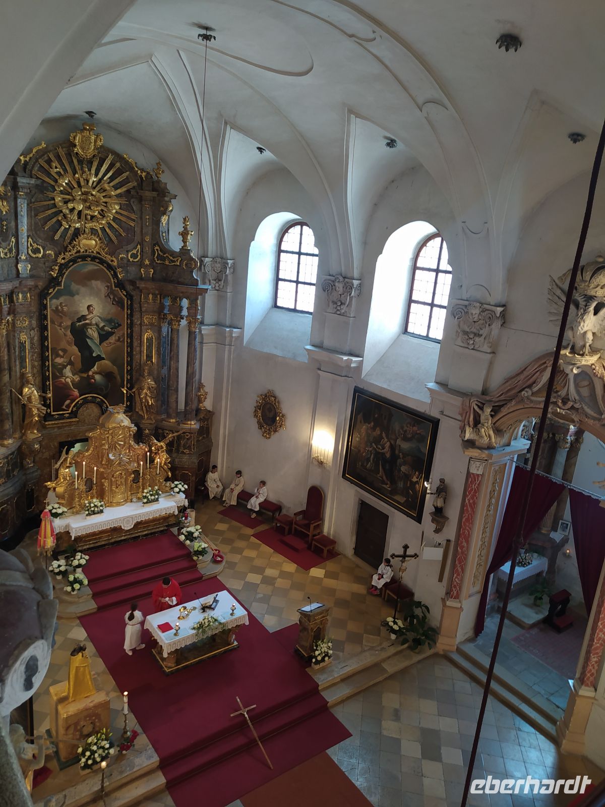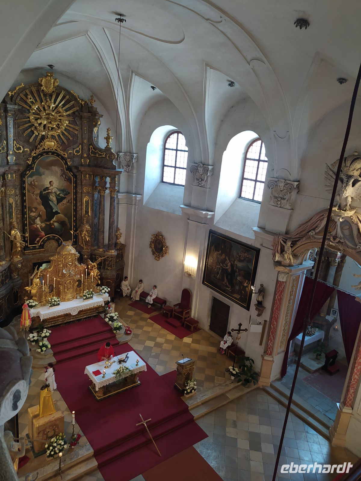 In Loretto angekommen, empfing uns der ehrwürdige Wallfahrtsort mit seiner imposanten Basilika. Die Stimmung war besonders feierlich – denn zunächst lauschten wir von draußen den letzten Klängen des Gottesdienstes, bevor sich die Türen für uns öffneten. Drinnen erwartete uns ein barocker Schatz: prachtvolle Altäre, goldene Verzierungen und eine Atmosphäre, die still und zugleich tief bewegend war.