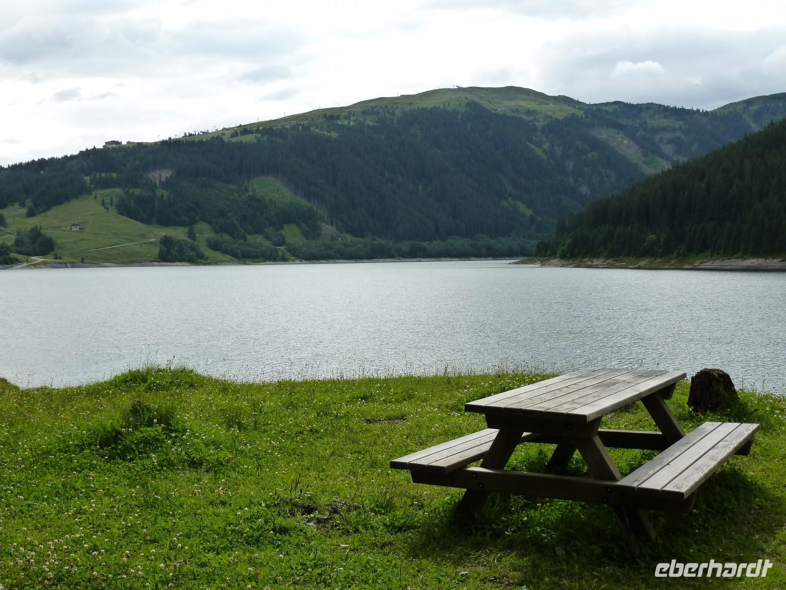 Heute Vormittag starten wir mit der Umrundung des Speicher Durlaßboden. Dabei handelt es sich um ein Speicherkraftwerk, dessen Wasser aus dem Quellgebiet der Salzach stammt.