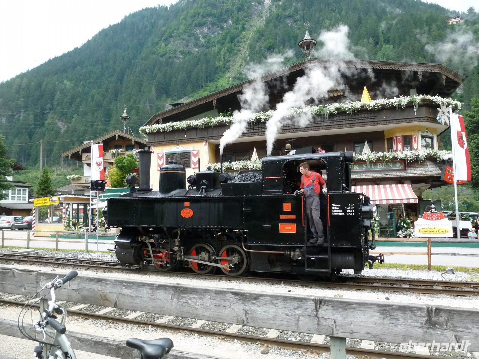 Die Zillertal Bahn fährt von Jenbach bis Mayrhofen und ist ein beliebtes Fotomotiv im Zillertal.