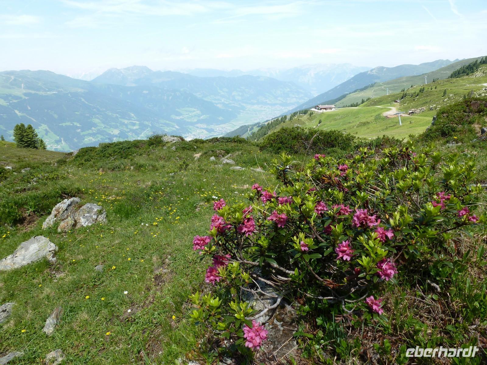 Sanfte Höhenrücken, sprudelnde Quellwege mit duftenden Alpenkräutern und unzählige Alpenrosen säumen unsere Wanderwege. In Muße den Blick über die Gipfel schweifen lassen: der stolze Rastkogel (2.762m