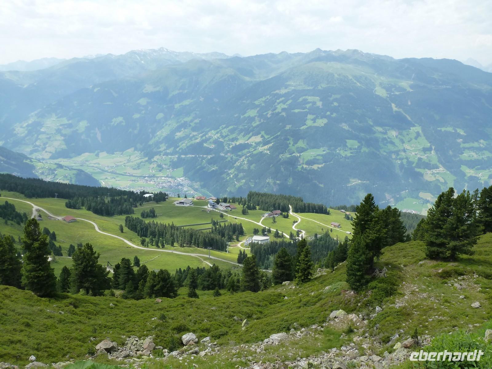 Diese windet sich in steilen Serpentinen von Hippach (600 m) auf den dicht besiedelten Schwendberg.