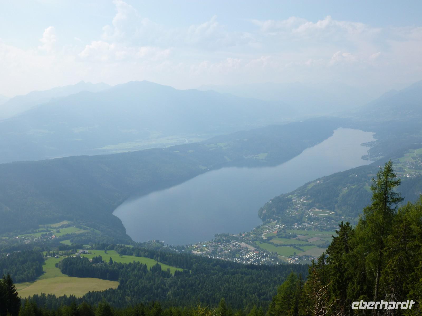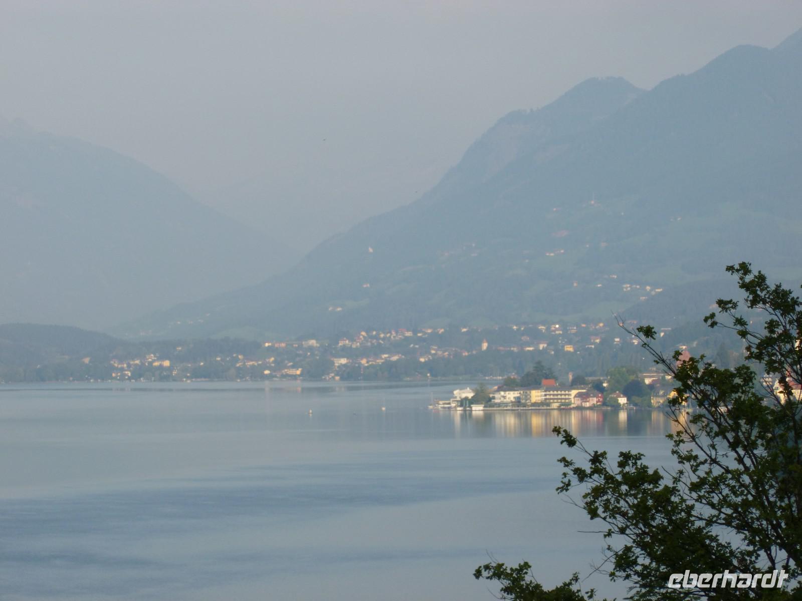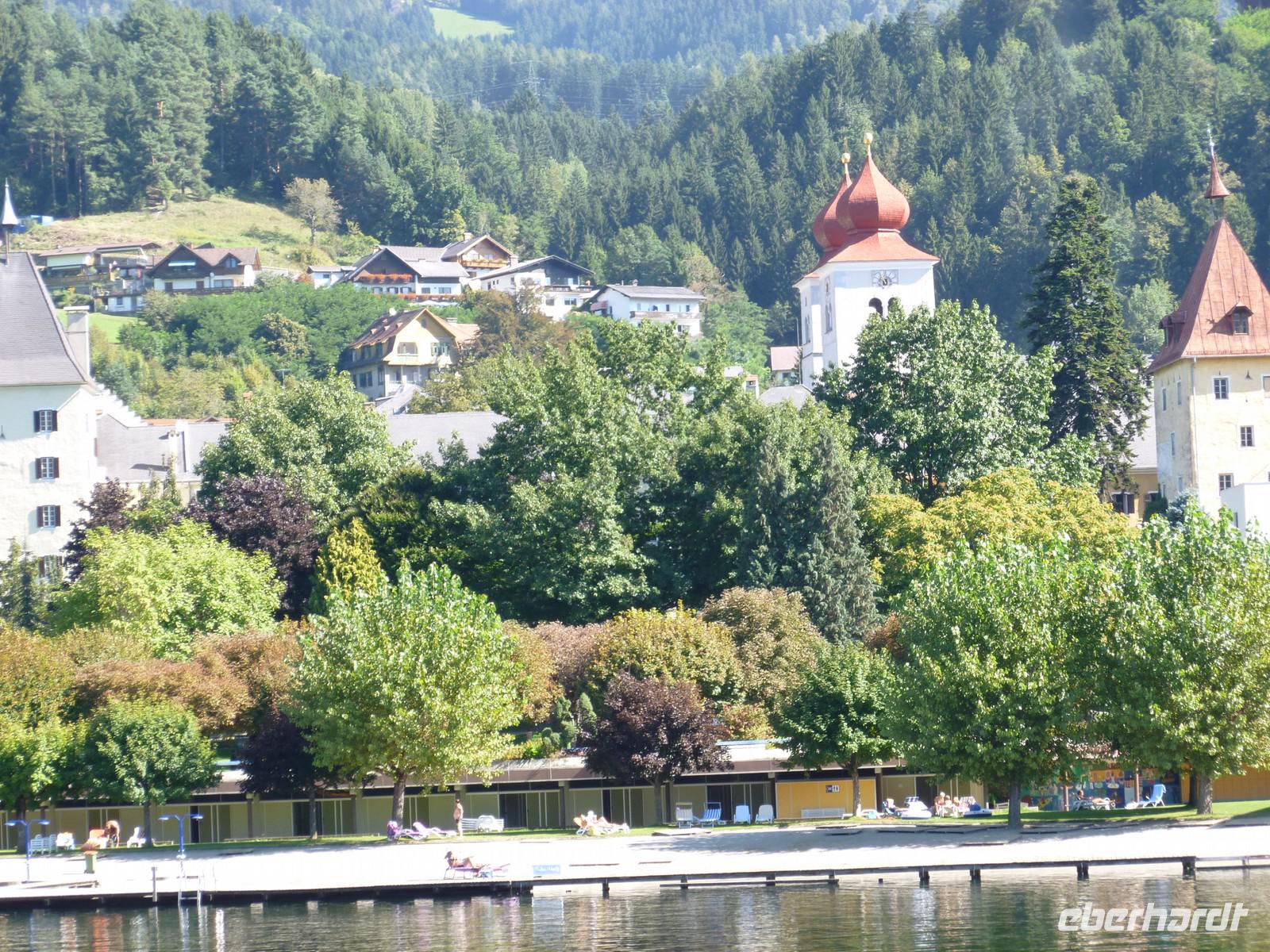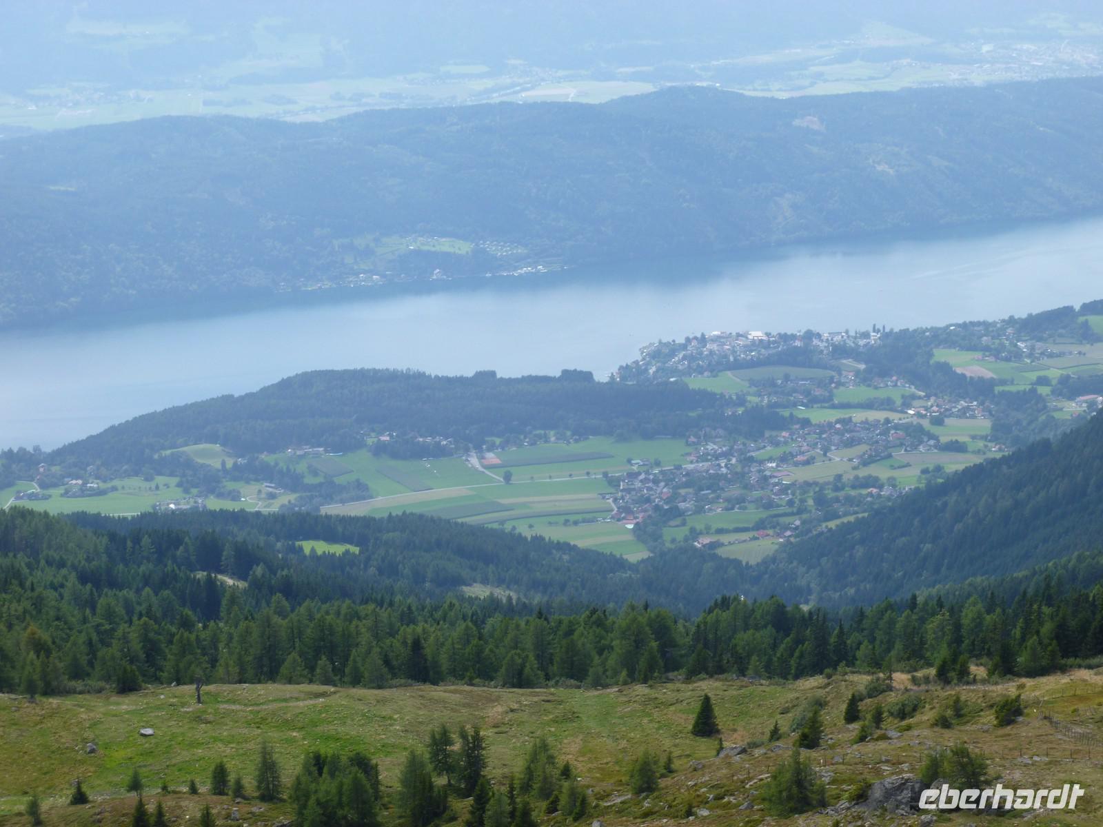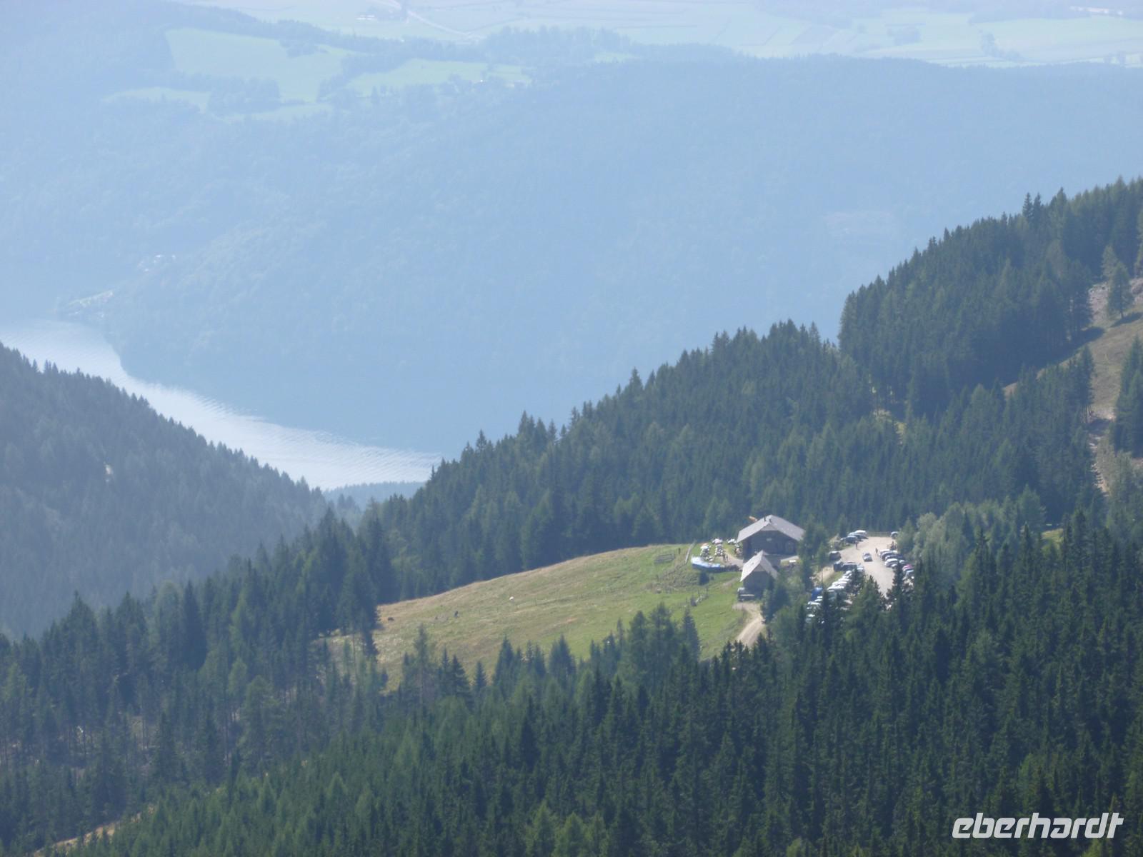 Wir spazierten zum Millstätter See zur Schiffsanlegestelle. Hier hieß es Leinen los. Wir fuhren mit dem Schiff bis zur Laggerbucht. Wir genießen die Seeberührung, am Nordufer und die Kulisse von Millstatt mit dem geschichtsträchtigem Stift. Am Südufer spüren wir schon den Einklang der Natur - der fließende Übergang vom Berg zum See. Jetzt wandern wir los immer entlang des Millstääter-See-Rücken, eine rund 2 km breite und 13 km lange durch die letzte Eiszeit zu sanften Hügeln geschliffene Barriere zwischen dem Millstätter See (588 m Seehöhe) im Norden und dem Drautal (ca. 530 m Seehöhe) im Süden ist größtenteils ein Landschaftsschutzgebiet, das sich auf den Gemeindegebiet von Seeboden, Spitall an der Drau und Ferndorf befindet. Das Südufer des Millstätter Sees ist im Gegensatz zum Nordufer in weiten Teilen naturbelassen und nahezu unbesiedelt. Durch die Ortschaften Großegg und Winkl und über die Kreuztratte erreichen wir den Egelsee. Der Moorsee mit einer Fläche von 9,35 ha ist vollständig von am Wasser schaukelnden Schwingrasen umsäumt. Aufgrund seiner Lage inmitten eines ausgedehnten Moores ist seine Wasserfarbe tiefbraun. Die Moorsäuren führen zu einem niedrigen pH-Wert. Botanische Besonderheiten sind das Papillentorfmoos, der fleischfressende rundblättrige und langblättrige Sonnentau und der Wasserschlsuch, die rostblättrige Almrose, das schneidige Wollgras, die Rosmarinheide (Andromeda polifolia) oder die Moorbeere. Alle Stufen der Moorbildung lassen sich am Egelsee beobachten. Eine zoologische Besonderheit ist das Auftreten eines Plankton-Hüpferlings. Ursprünglich gab es keine Fische in diesem See. Im Frühjahr bis zum Frühsommer sind eine Unzahl von Larven des Grasfroschs und des kleinen Teichfroschs anzutreffen. Langsam bekamen wir Hunger.