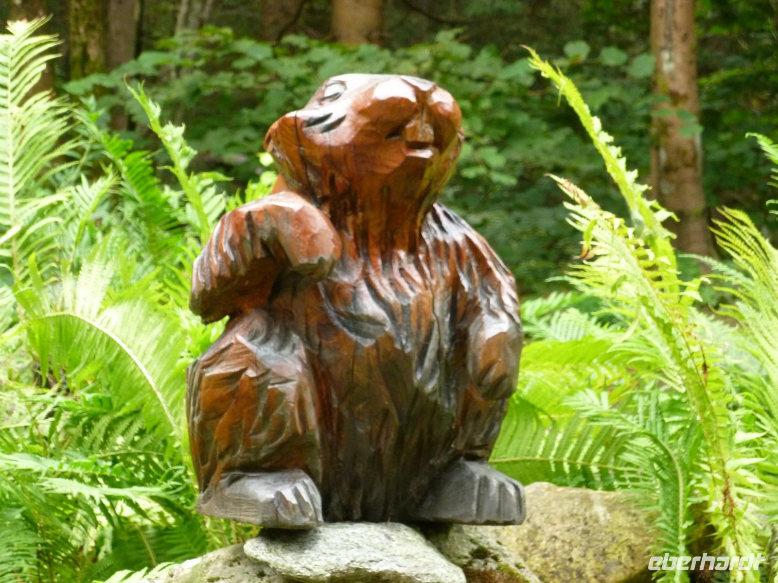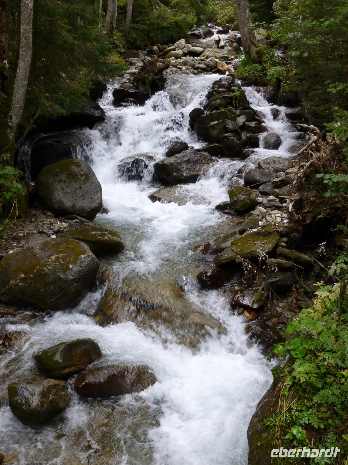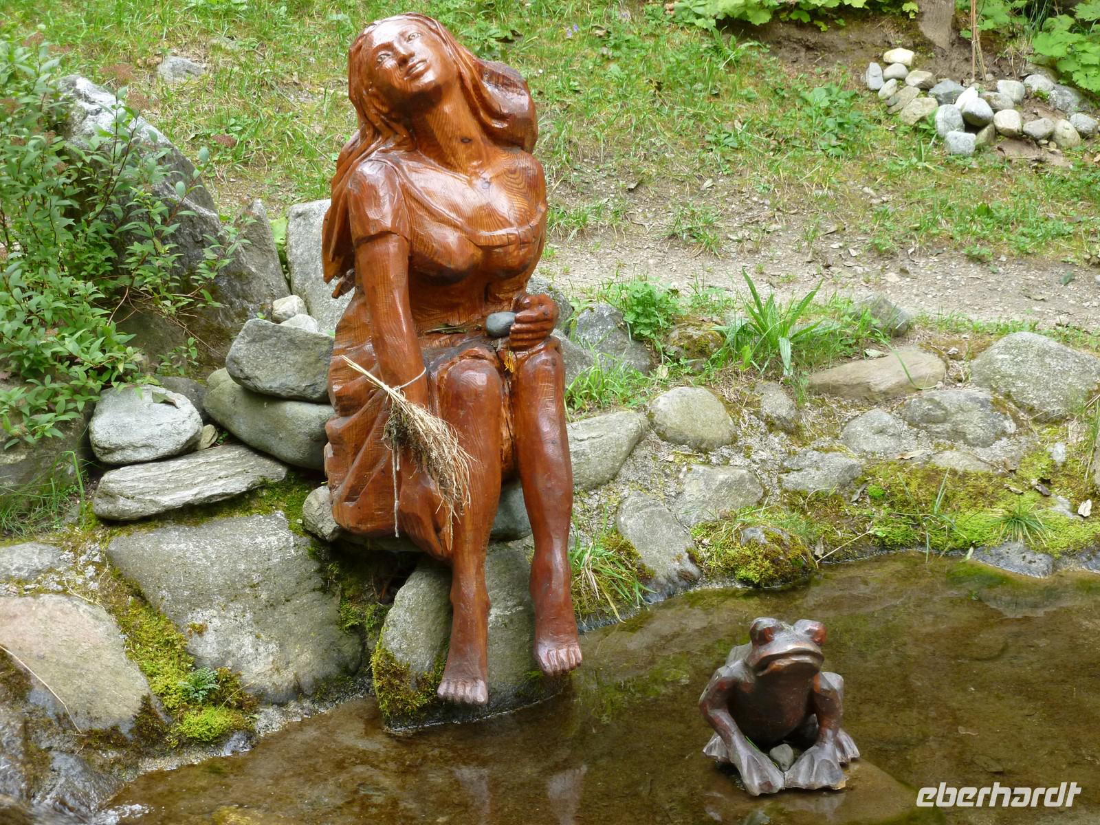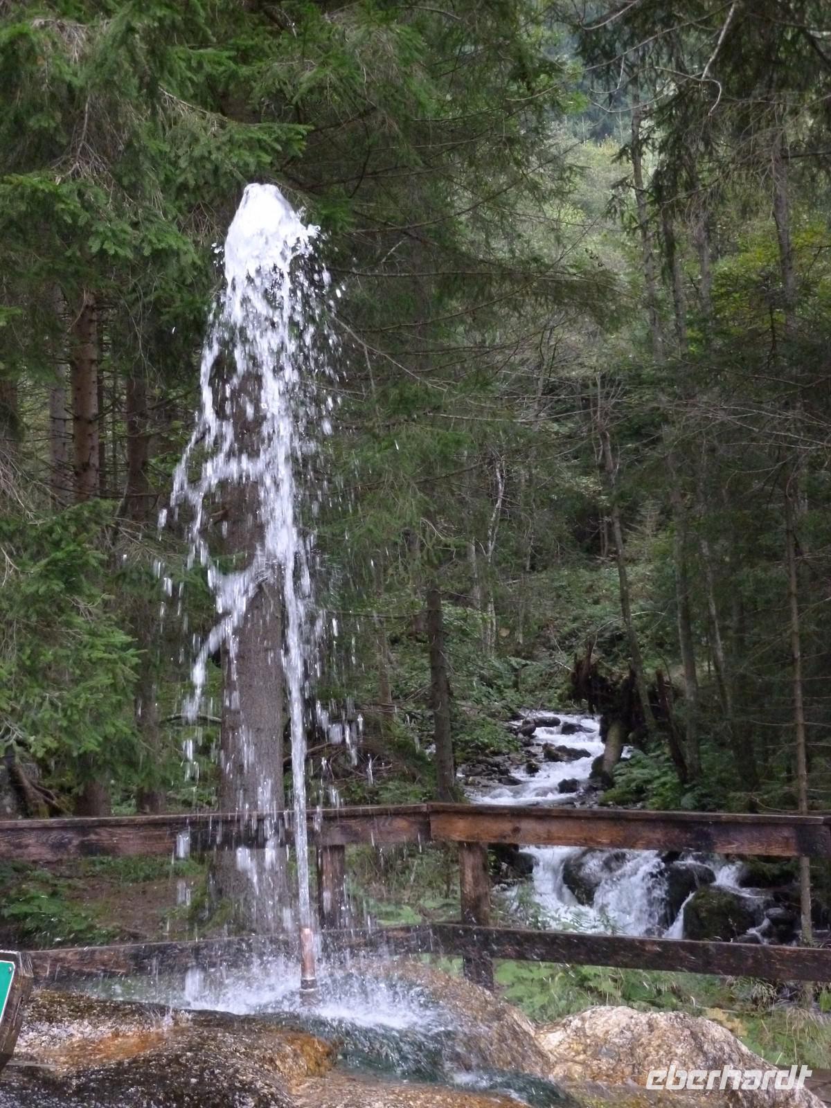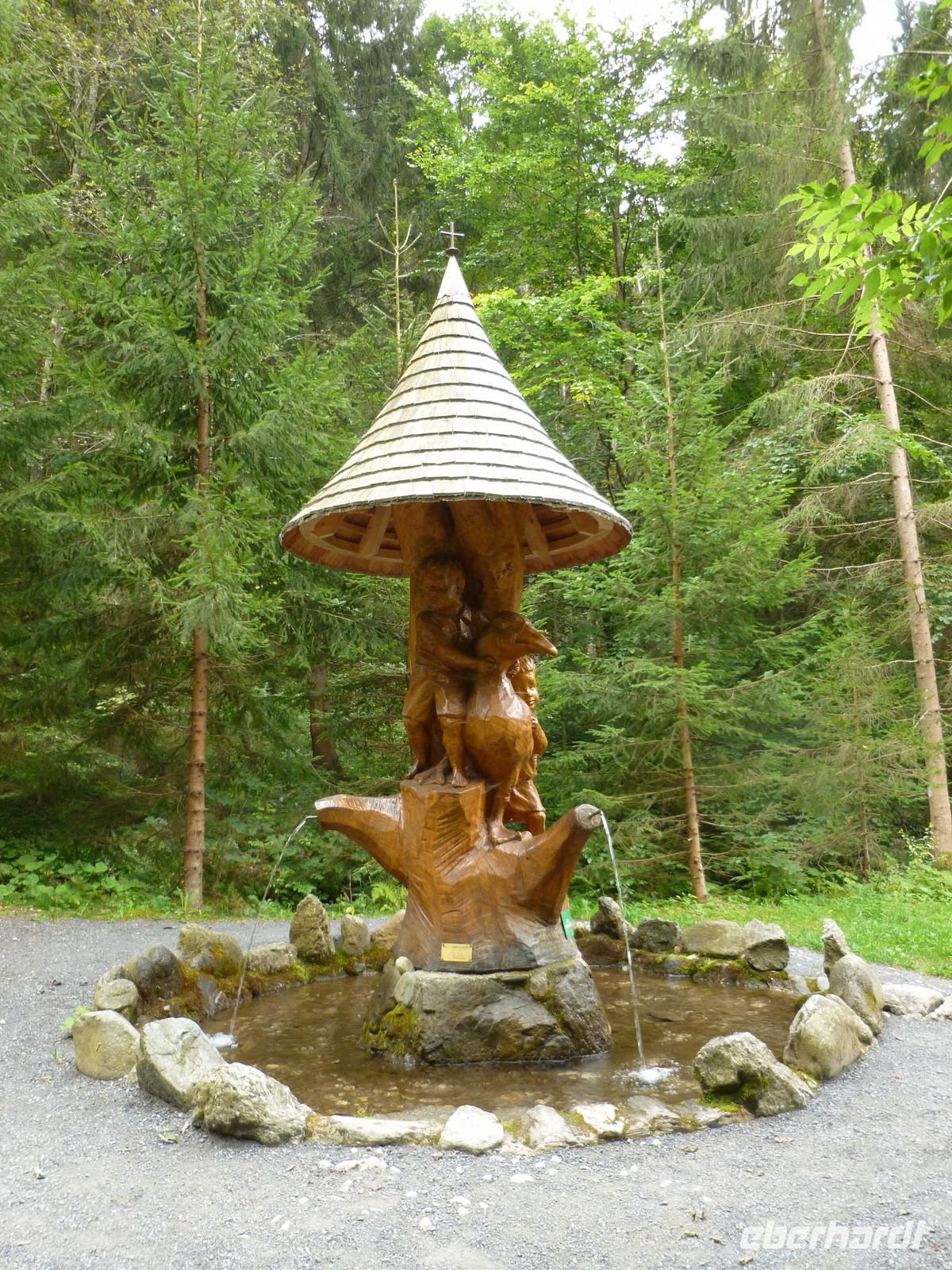 Auch heute bringt uns der Shuttlebus nach Kaning zum „Türkhaus". Das Türkhaus stand bis vor wenigen Jahren eigentlich am Laufenberg - etwas oberhalb vom Dörfchen Kaning - uns sollte abgerissen werden um einem modernen Wohnhaus Platz zu machen. Die Naturfreunde Radenthein retteten das alte Kärntner Bauernhaus - trugen es ab und bauten es zu Beginn des Mühlen- und Kneippweges wieder originalgetreu auf. Heute findet man im Türkhaus ein Infocenter für den Nationalpark Nockberge,eine Galerie des bekannten, in Kaning geborenen Künstlers Günther Frey sowie einen kleinen Kräutergarten. Wie kam das Haus zu seinem Namen? Gegen Ende des 15. Jhd. trieben die Türken hier ihr Unwesen. Sie zogen plündernd durchs Land und steckten Weiler und Höfe in Brand. Döbriach und Radenthein brannten lichterloh. Die Bauern am Laufenberg sahen die Brände und verliesen Ihre Höfe um sich im Wald zu verstecken. Einzig eine Magd weigerte sich den Hof zu verlassen - türmte vor dem Hof Strohballen auf und zündete diese an. Als die Türken jenes Feuer sahen, kehrten Sie im Glauben schon alle Höfe angezündet zu haben , um. Von nun an hieß der Hof nur mehr „beim Türk". Nun begann unsere Wanderung entlang des Kneipp- und Mühlenweges zur Lederhosenwirtin. Auf einer Länge von ca. 4 km kann man noch sechs von früher insgesamt 22 Mühlen im sogenannten „Roßbachgraben" bewundern.