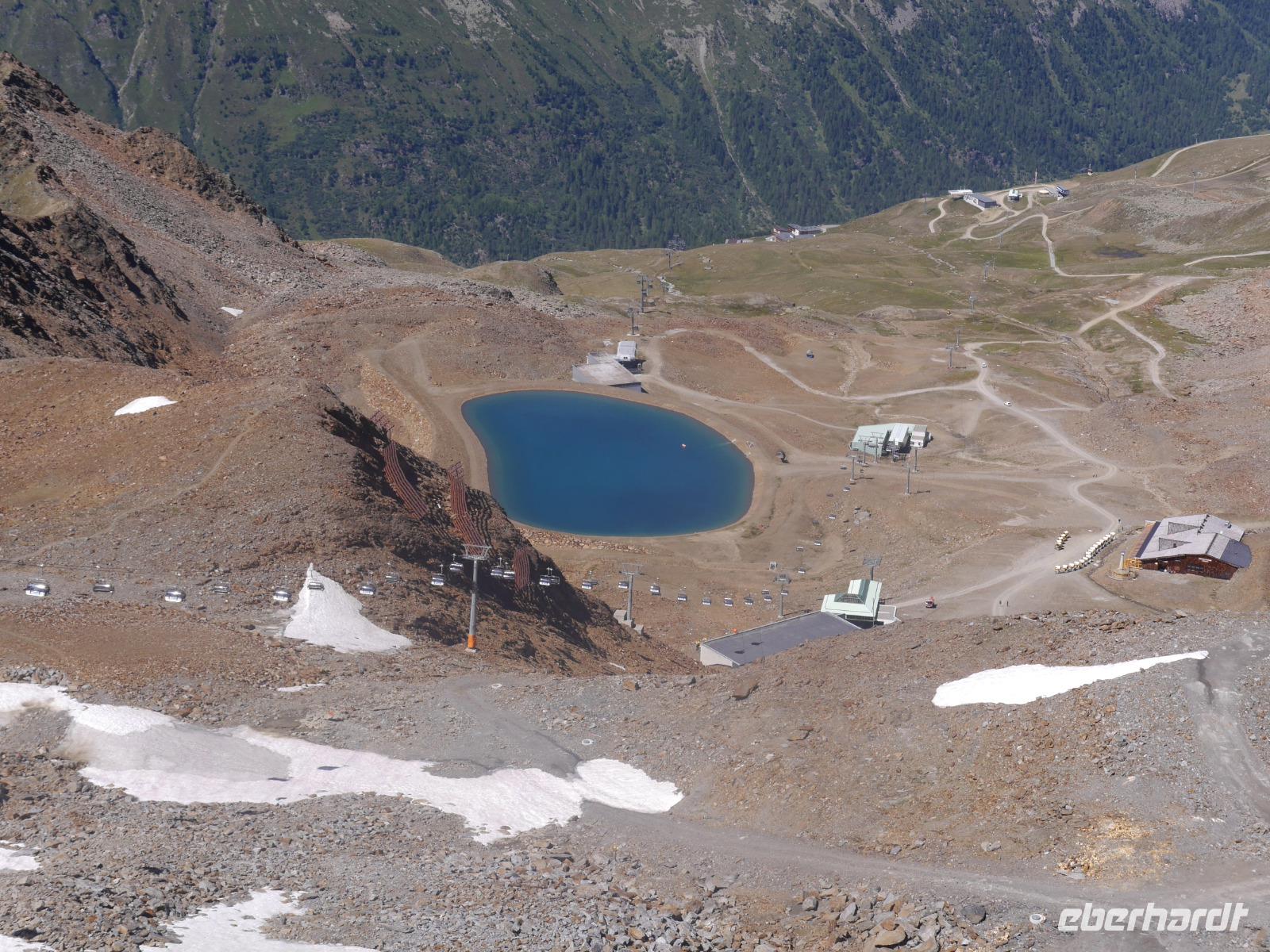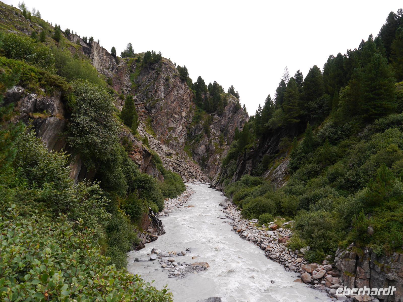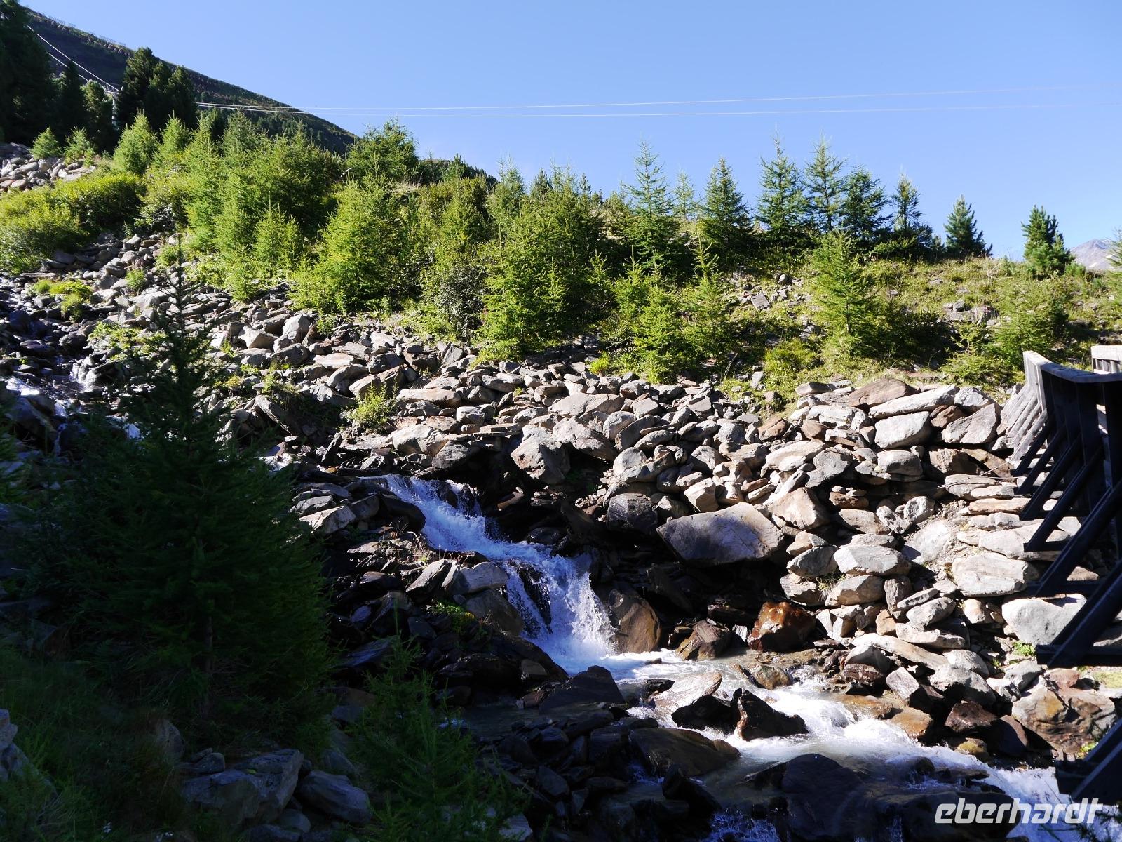 Vom Dorfzentrum ging es zunächst über die Gurgler Ache in Richtung Seeplatte. Es waren fast 500 m stetiger Anstieg bis zum Soomsee, der leider nur noch zu erahnen war.