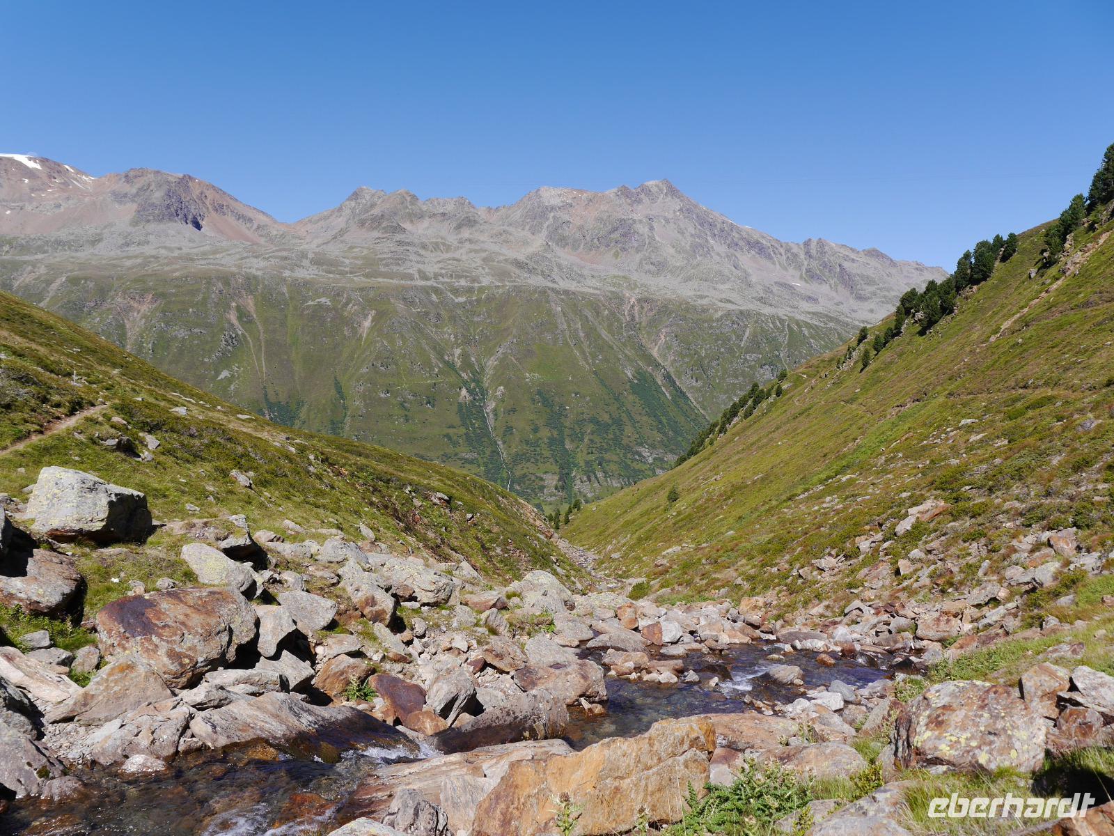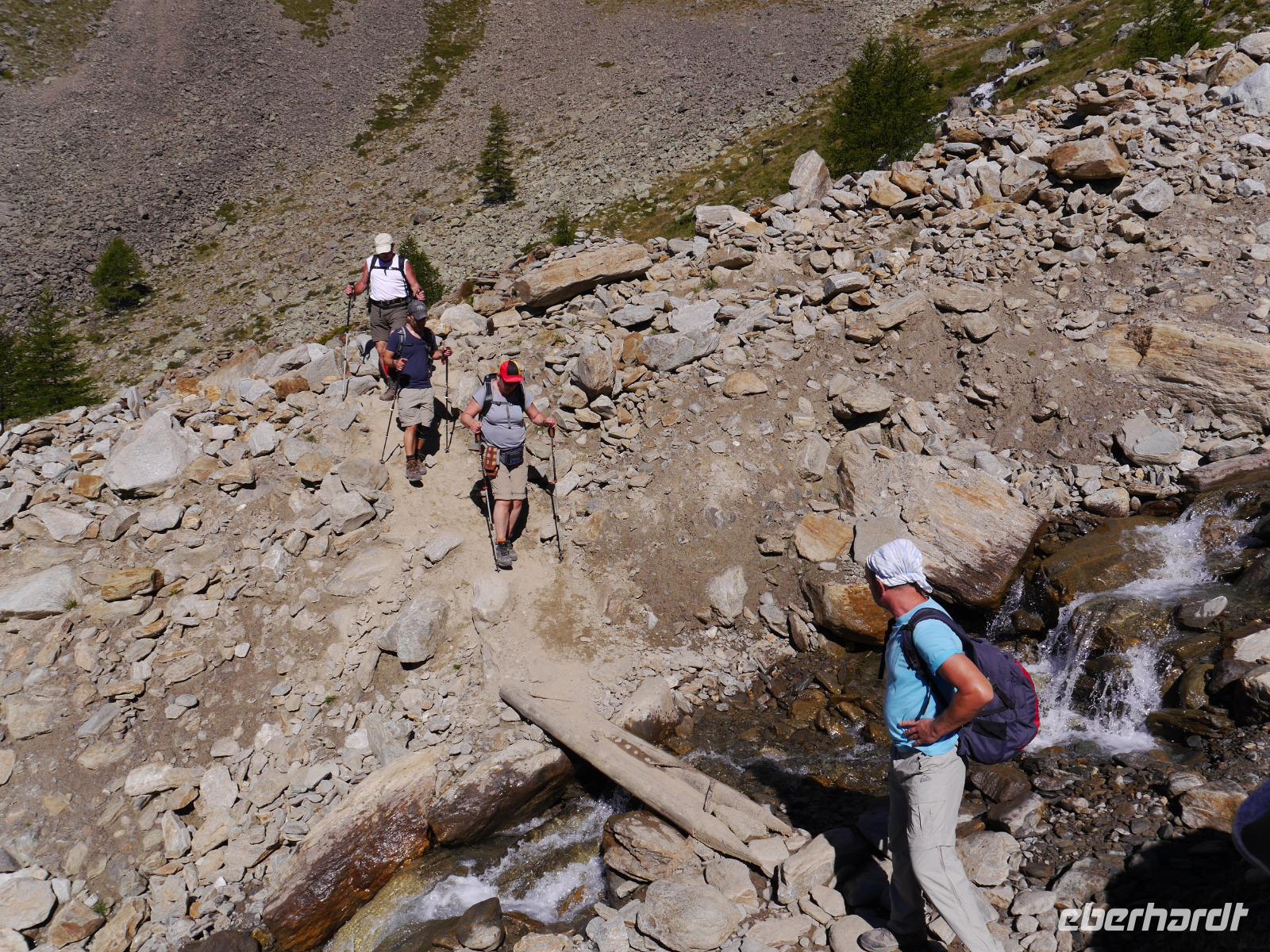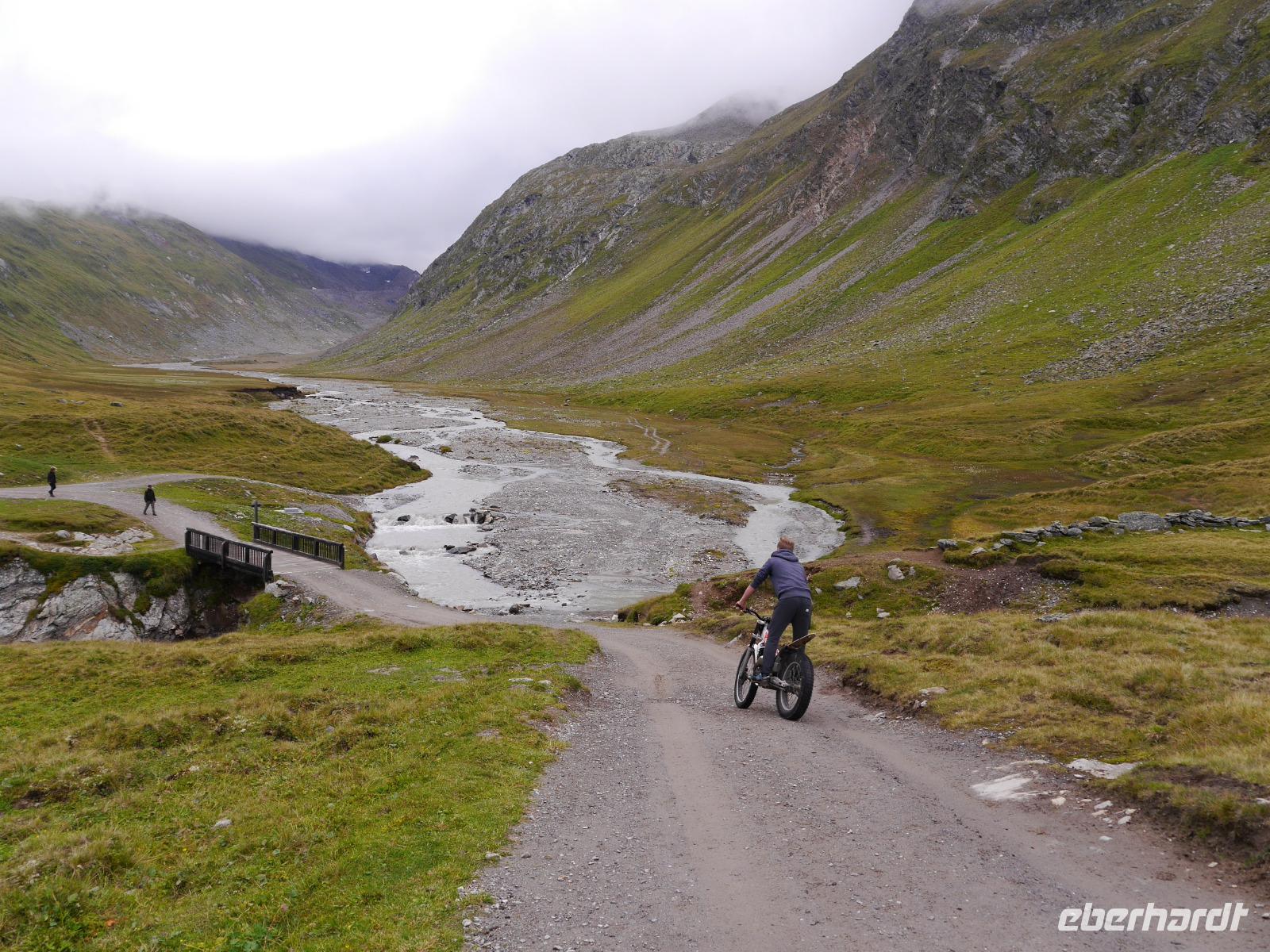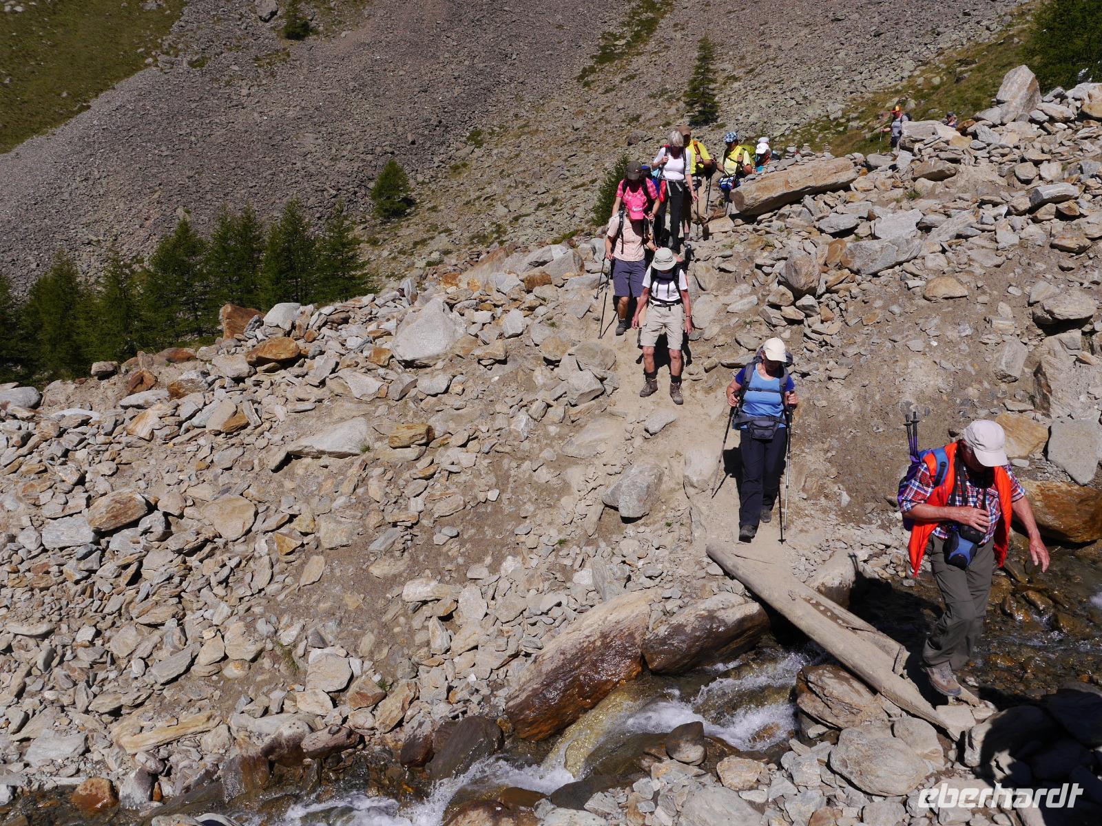 Vom Dorfzentrum ging es zunächst über die Gurgler Ache in Richtung Seeplatte. Es waren fast 500 m stetiger Anstieg bis zum Soomsee, der leider nur noch zu erahnen war.