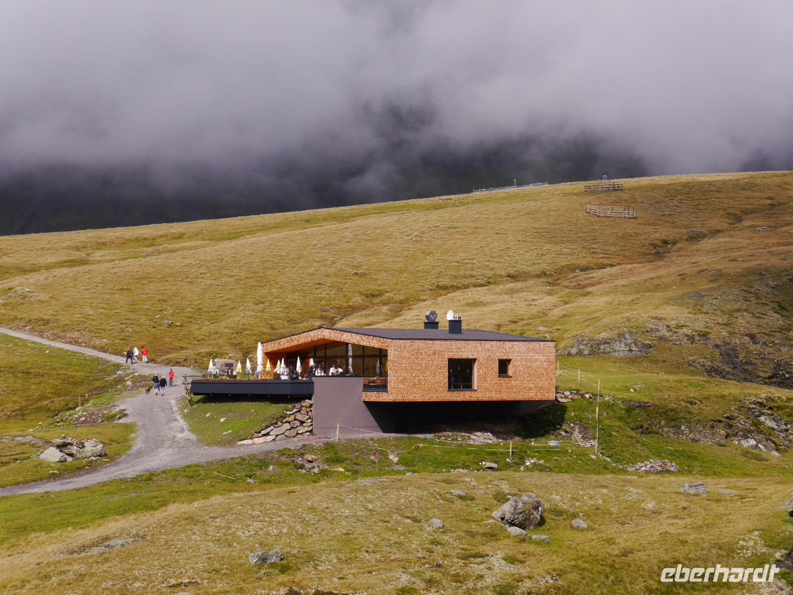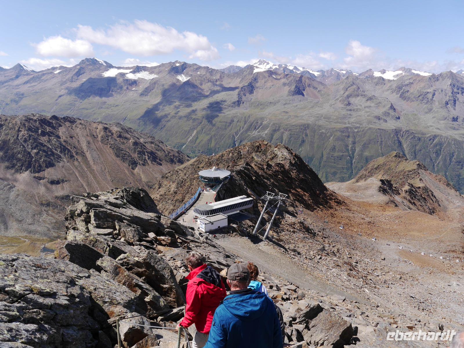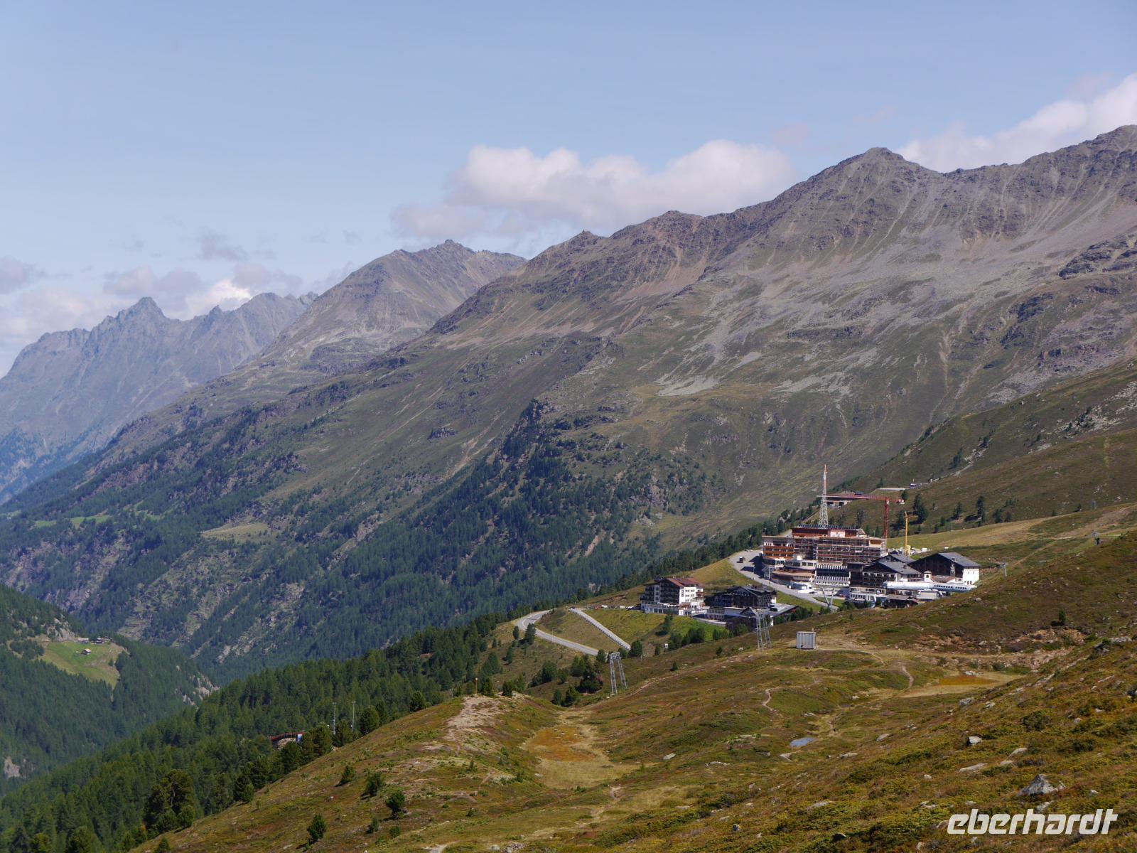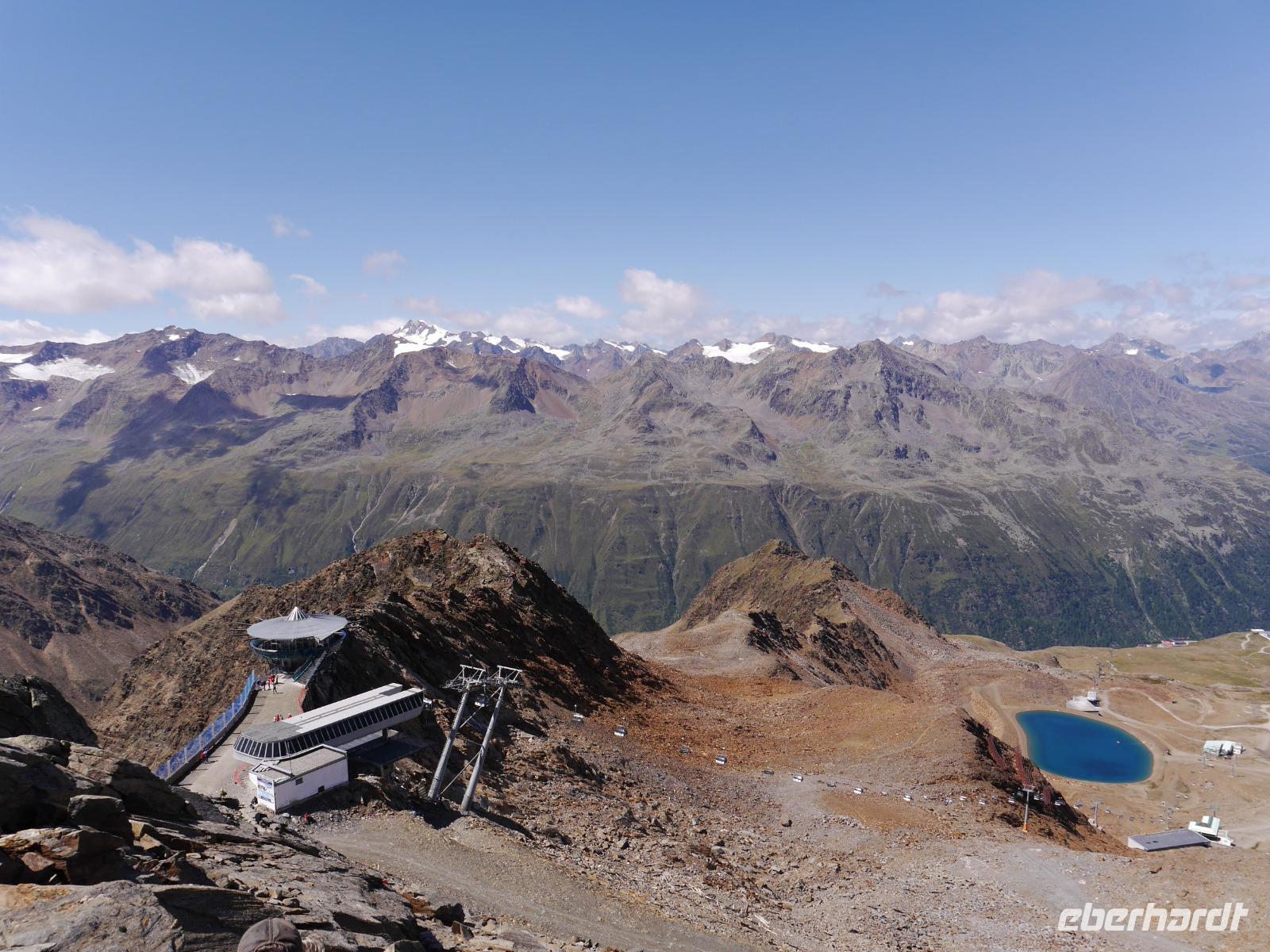 Die neuerbaute Top Mountain Star Hütte aus Stahl und Glas, läutete eine neue Ära der Hüttenkultur ein. Vom Dach bis zum Boden alles aus Glas und Stahl, ermöglicht so einen uneingeschränkten Rundblick in die Ötztaler Alpen. Nicht nur dass, sondern die Gipfel von Südtirol (Piz Boé), Subaital und Pitztal waren gekennzeichnet.