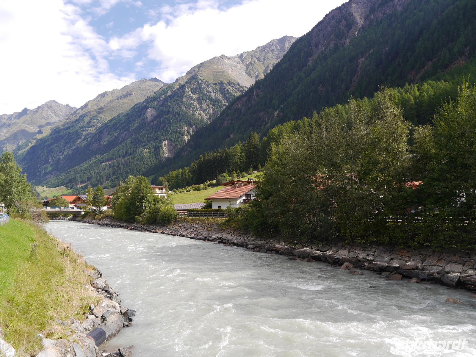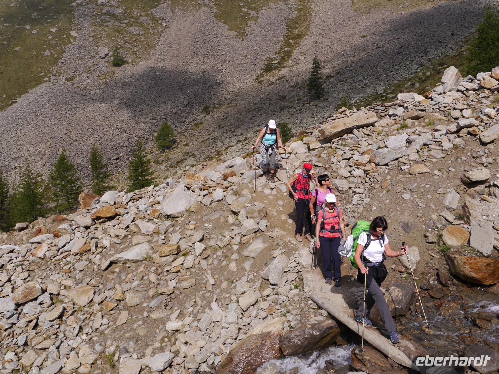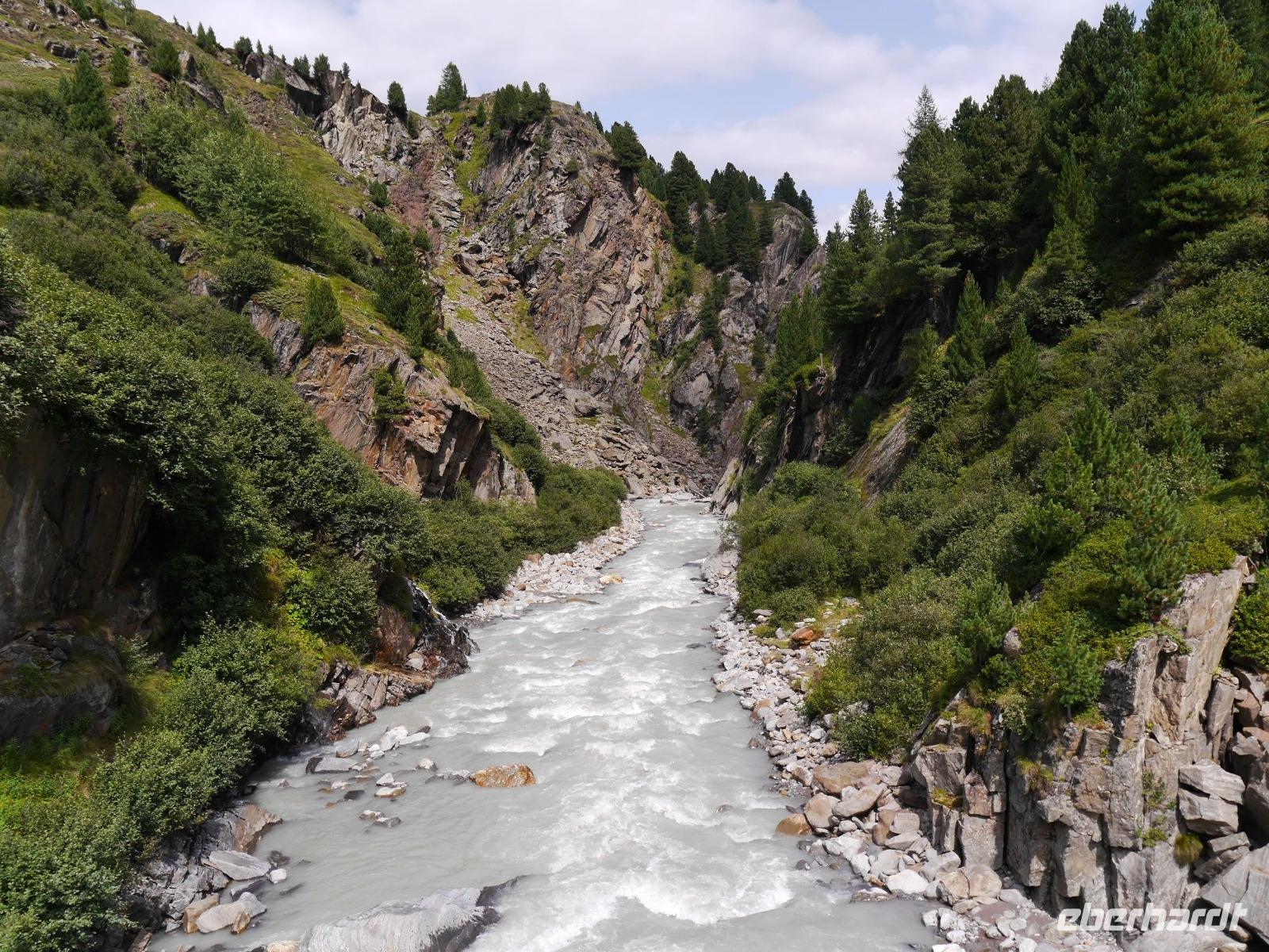 Vom Dorfzentrum ging es zunächst über die Gurgler Ache in Richtung Seeplatte. Es waren fast 500 m stetiger Anstieg bis zum Soom See, der die eine oder andere Schweißperle auf die Stirn zauberte.