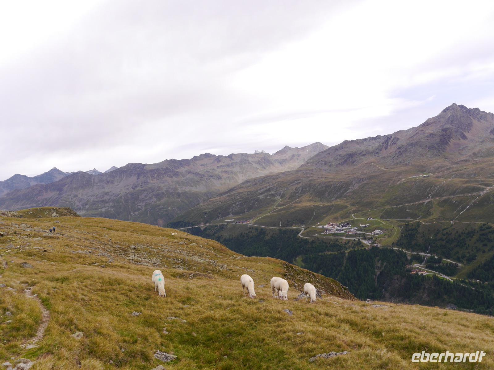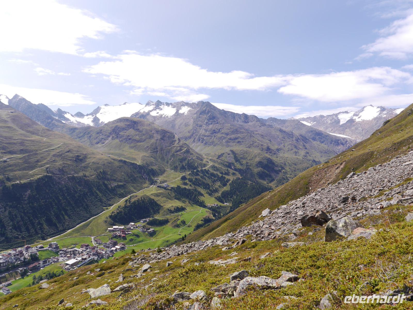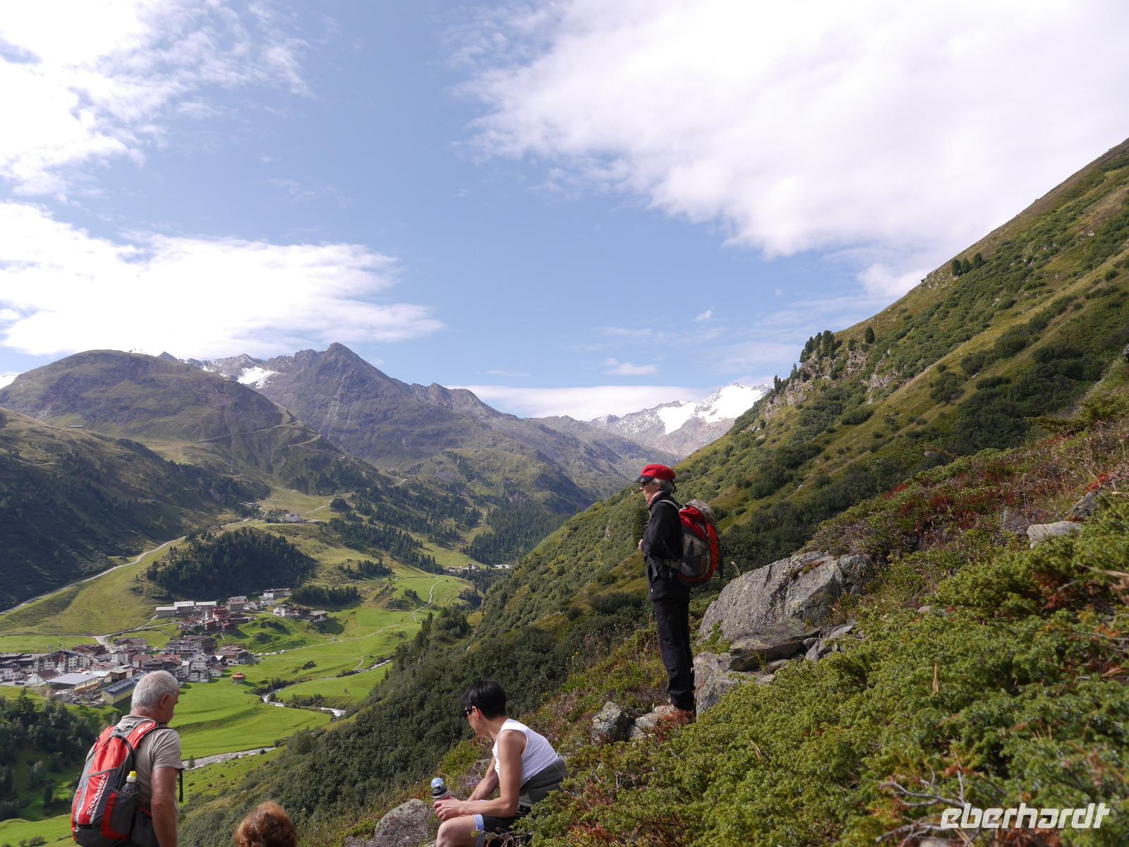 Unsere Rast in expliziter Lage ermöglichte uns den Blick auf Hochgurgl und in weiter Ferne die Lenzen Alm.