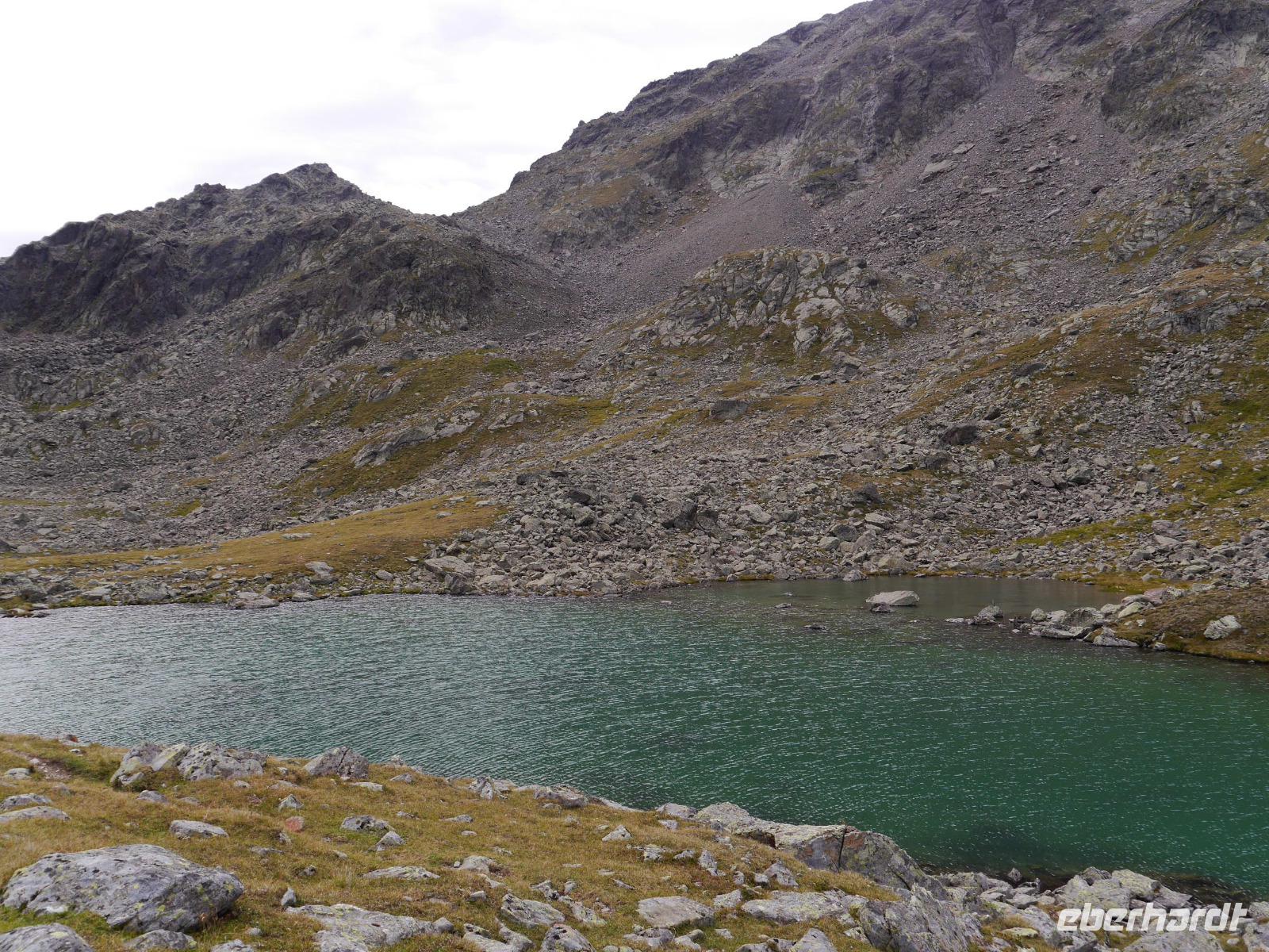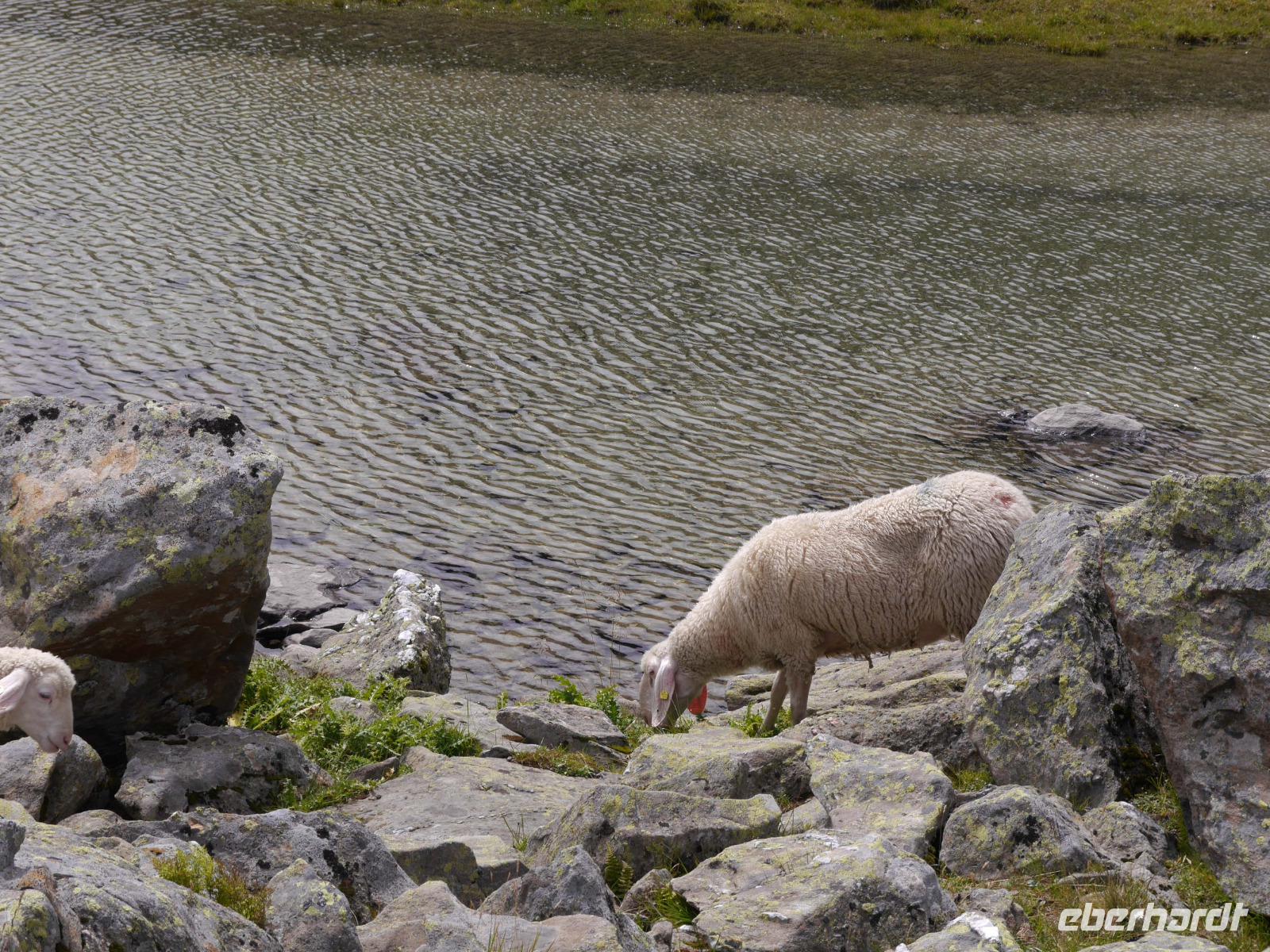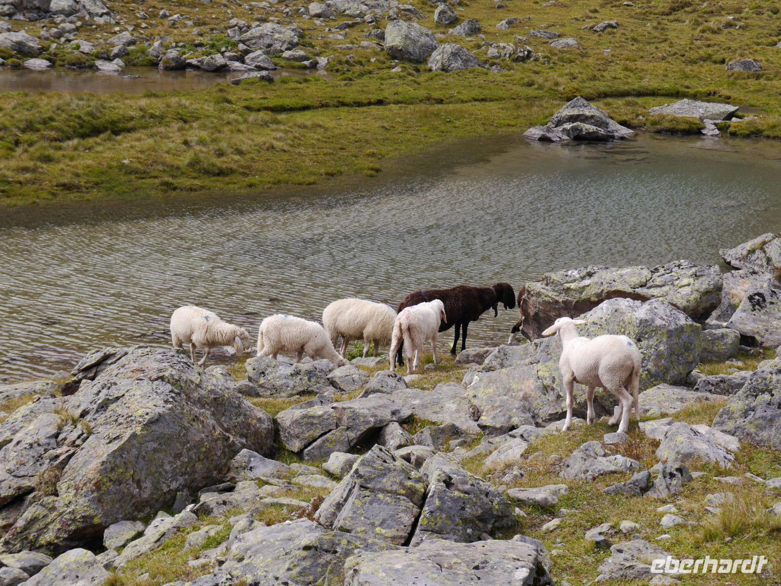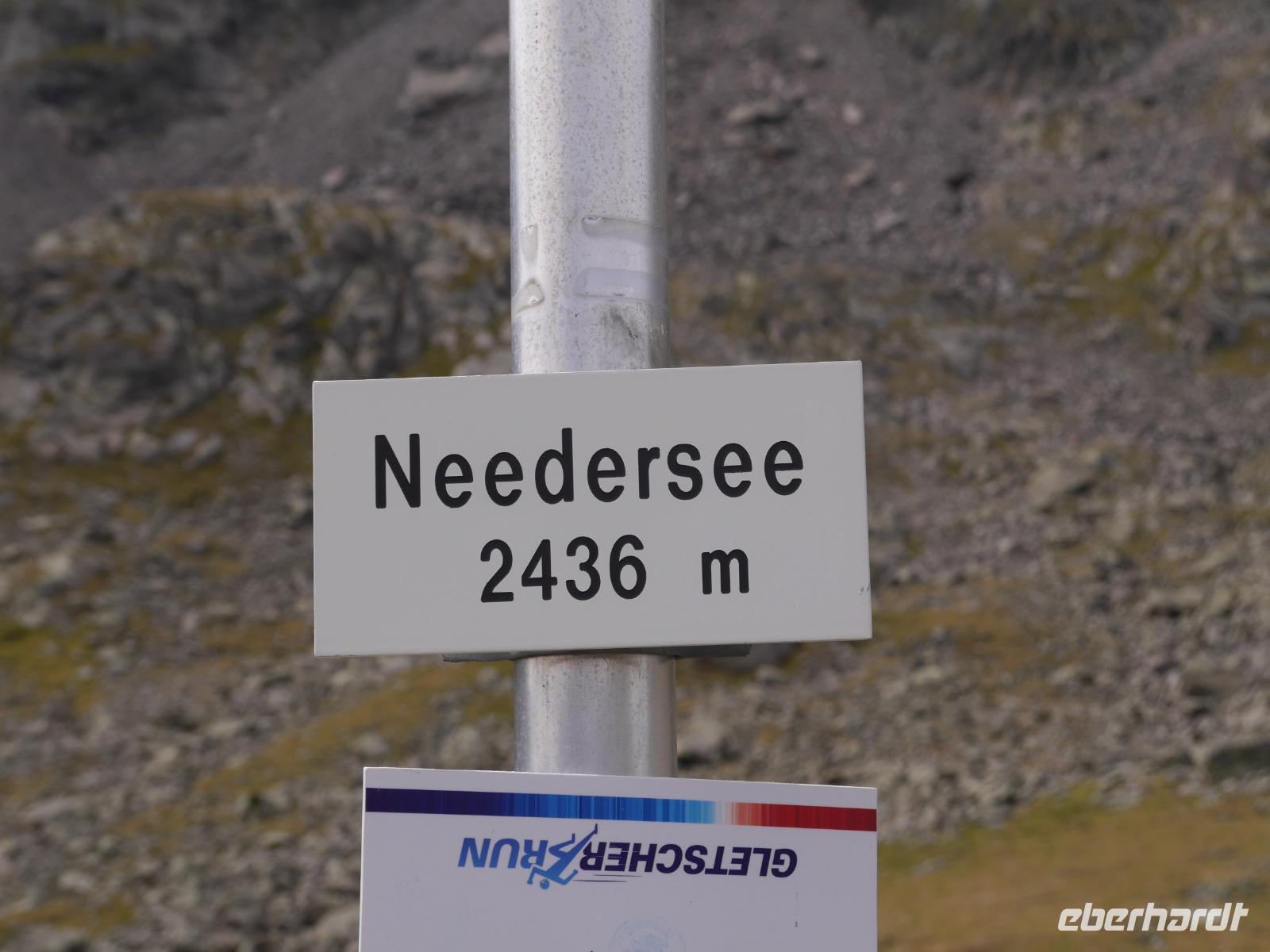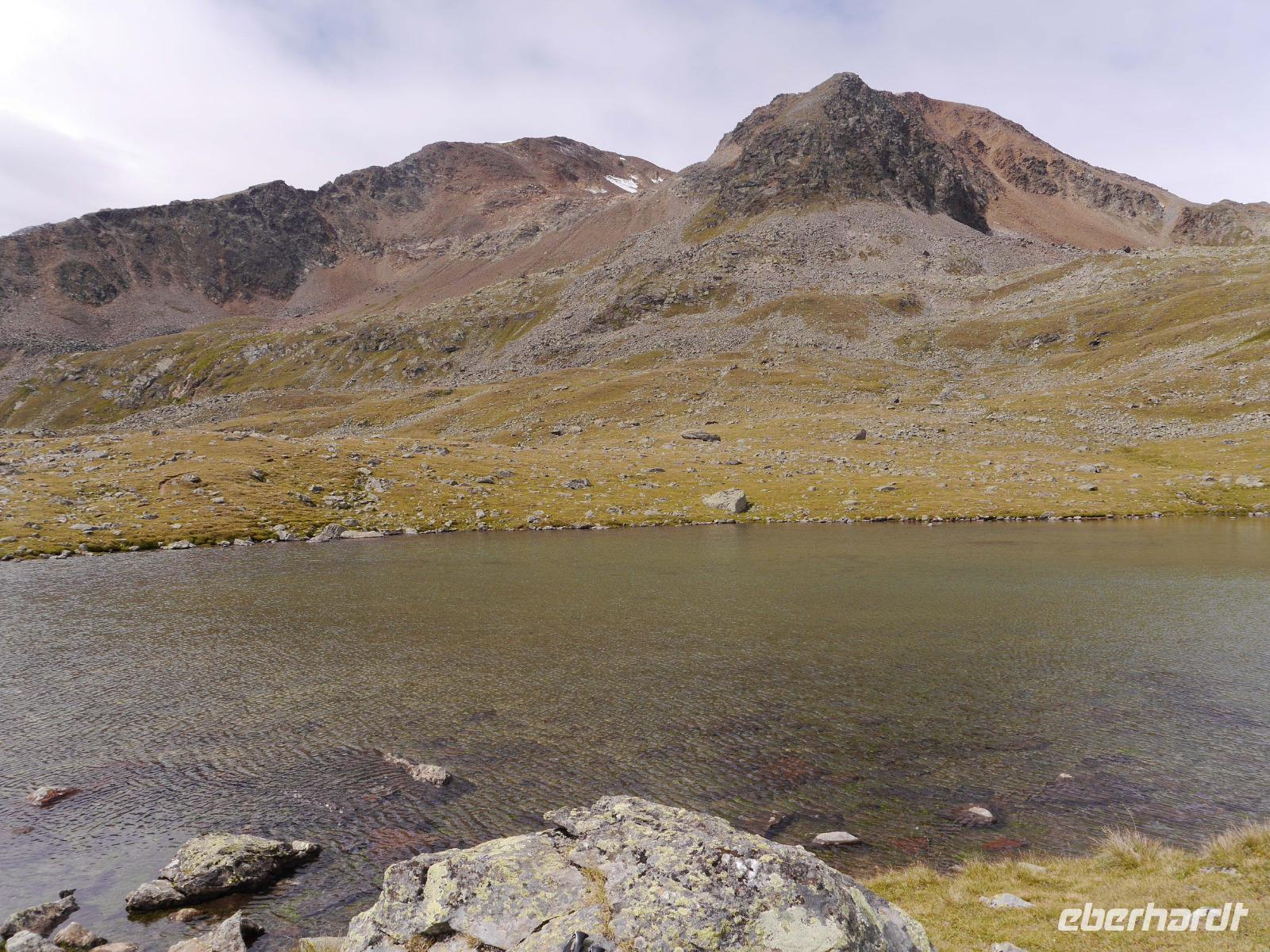 Auf fast gleichem Höhenniveau über sanftgrüne Wiesen, führte unser weiterer Weg zum Nedersee. Dieser lag in voller Pracht in einer Senke und lud zur Rast ein. Hier spürten wir die Facetten der Gurgler Seenplatte und überall plätscherten munter Bäche mit eiskaltem Quellwasser den Hang hinunter.