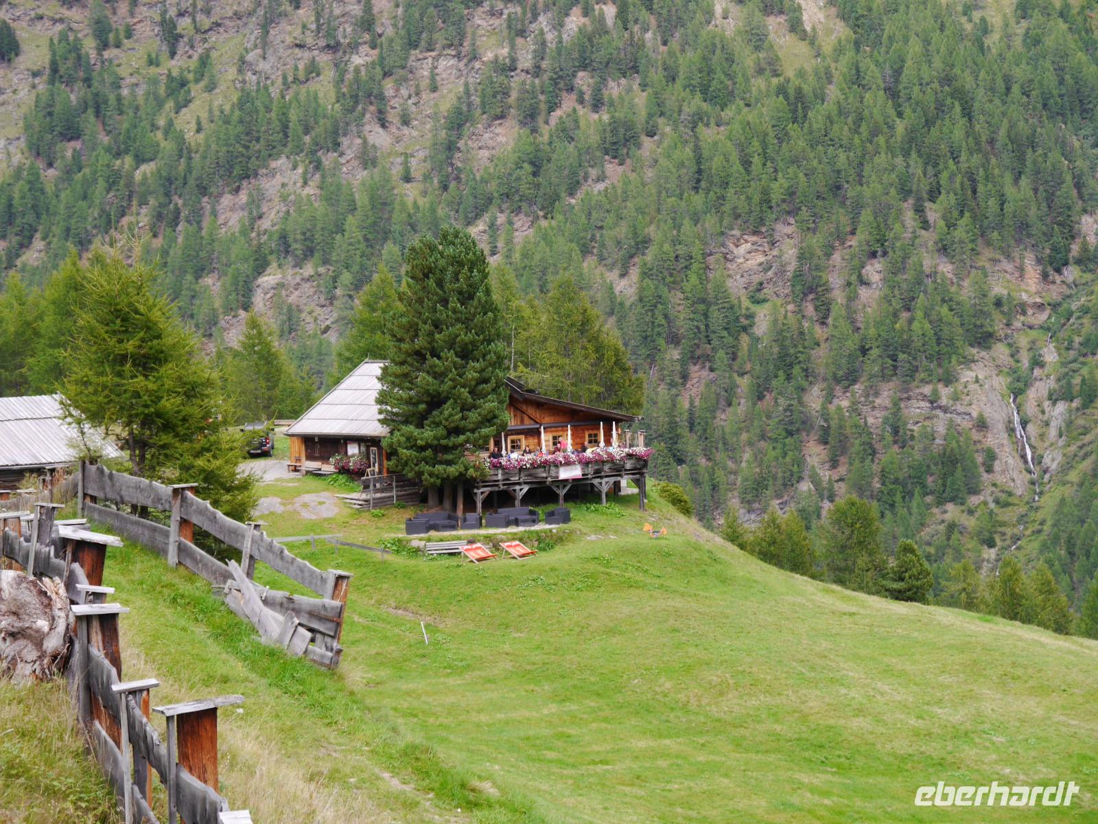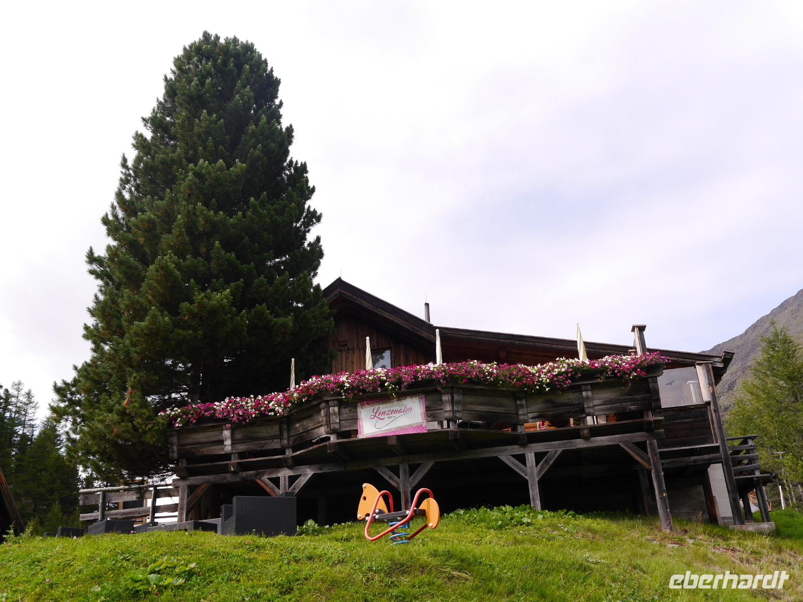 Weiter ging es durch einen verträumten Lärchen- und Fichtenwald bis zur Lenzenalm. Dort verbrachten wir unsere Mittagsrast. Ein reizvoller Platz zum Verweilen mit Blick auf die Timmelsjoch Hochalpenstrasse, nach Hochgurgl und auf den Wurmkogel.