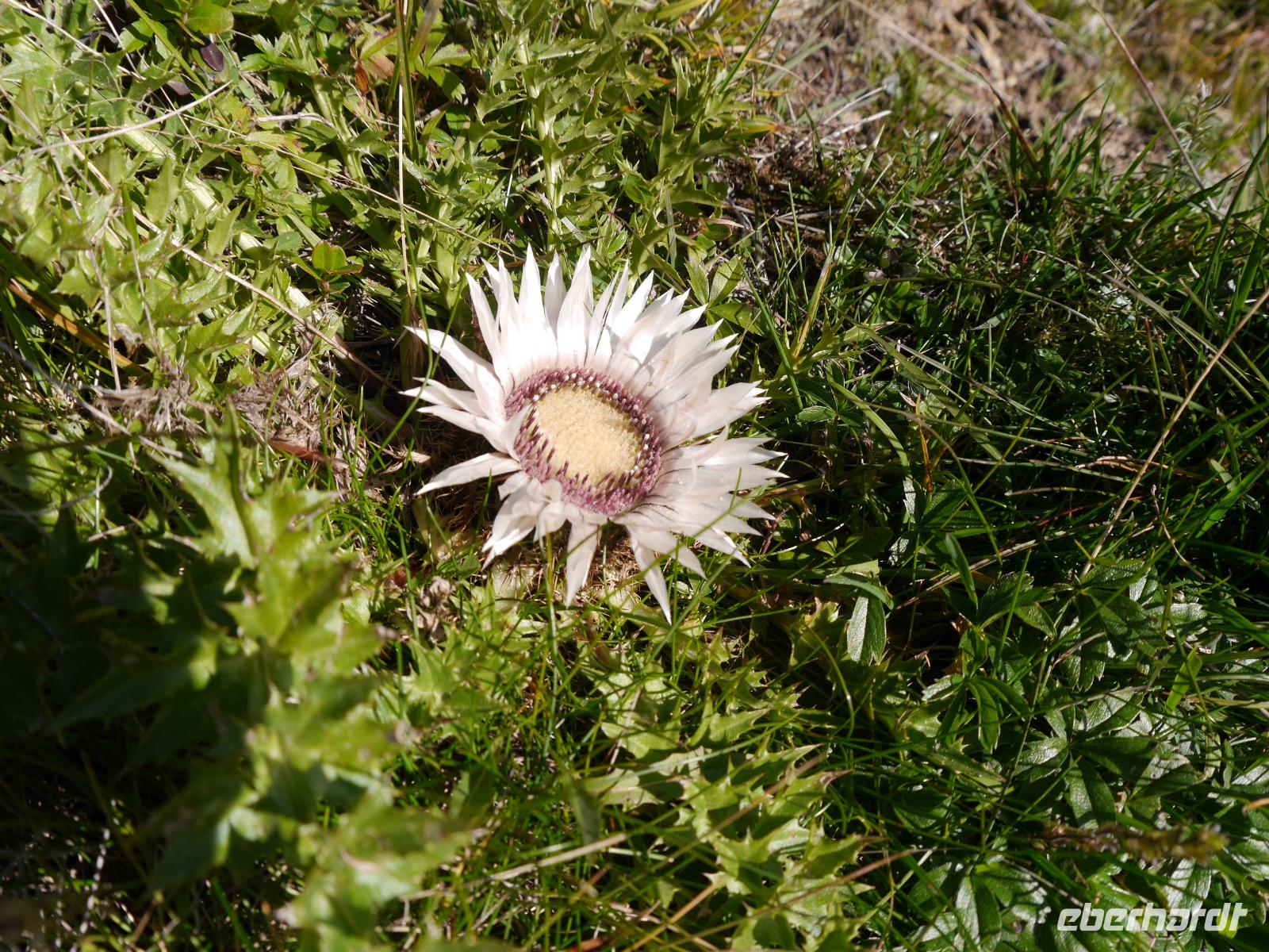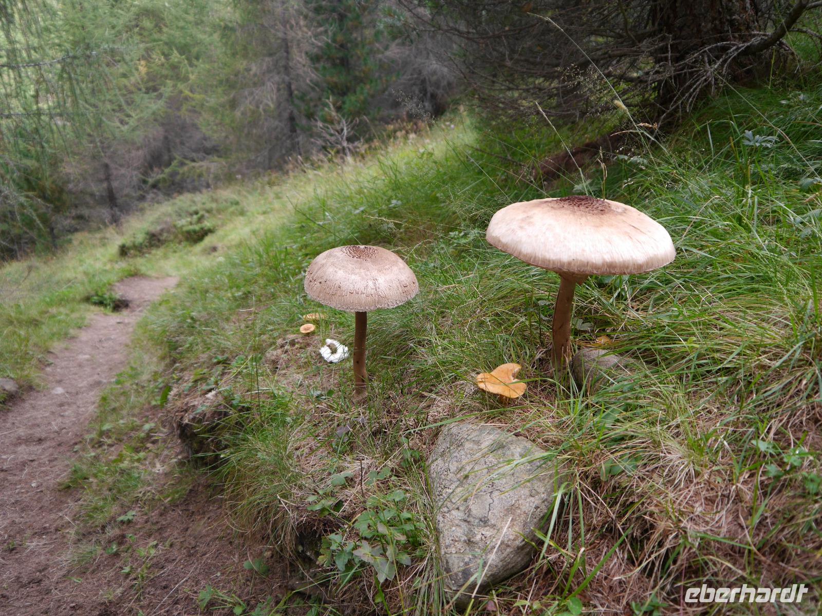 Interessiert schauten wir auf eine Hängebrücke, die den Einstieg zum Klettersteig symbolisierte. Das war uns doch eine Nummer zu anstrengend und wir hatten kein Seil dabei. Deshalb entschieden wir uns für die Knie schonende Variante den Rundweg 37 nach Obergurgl. Ein Murmeltier hörten wir in der Ferne, jedoch war seine Tarnung so perfekt, dass wir es nicht entdecken konnten. Die Sonne blinzelte immer stärker durch die Wolken und einige der Dreitausender Berge des Ötztals zeigten sich von ihrer schönsten Seite mit glitzernden Gletschern.