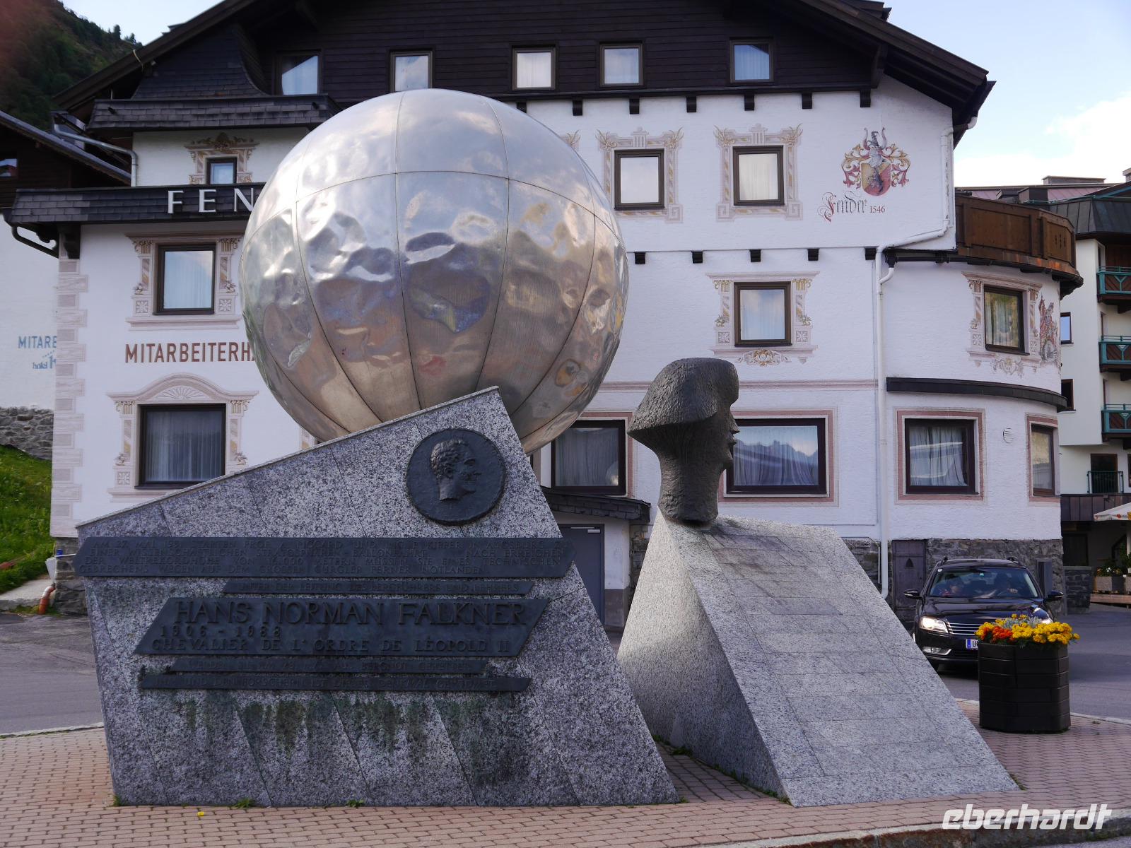 „Zirbenwald" bildhaft erklärt. Ein Lautsprecher, der an einer Bank installiert war, erläuterte bildhaft die Notlandung von August Piccard am 27. Mai 1931.