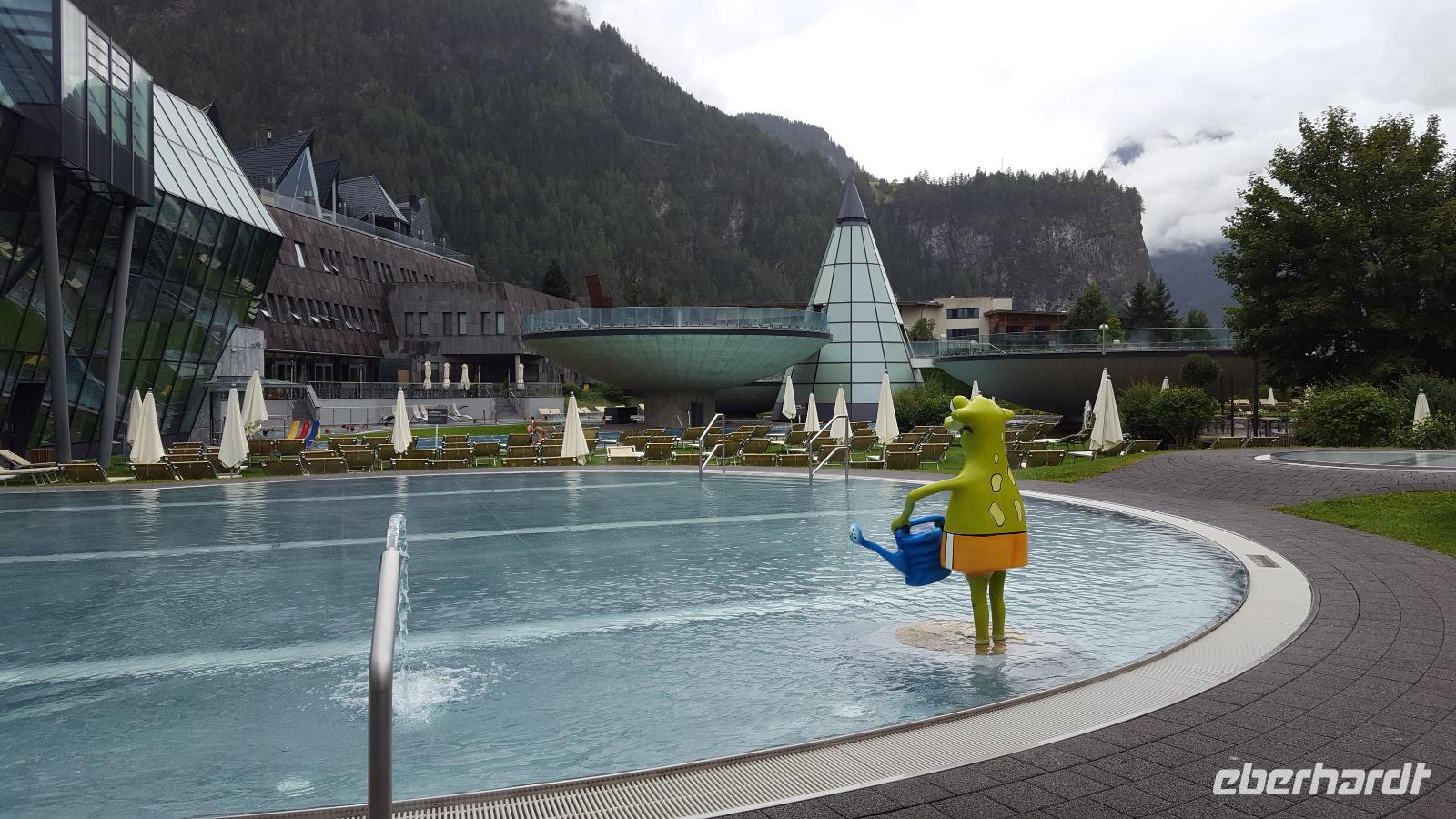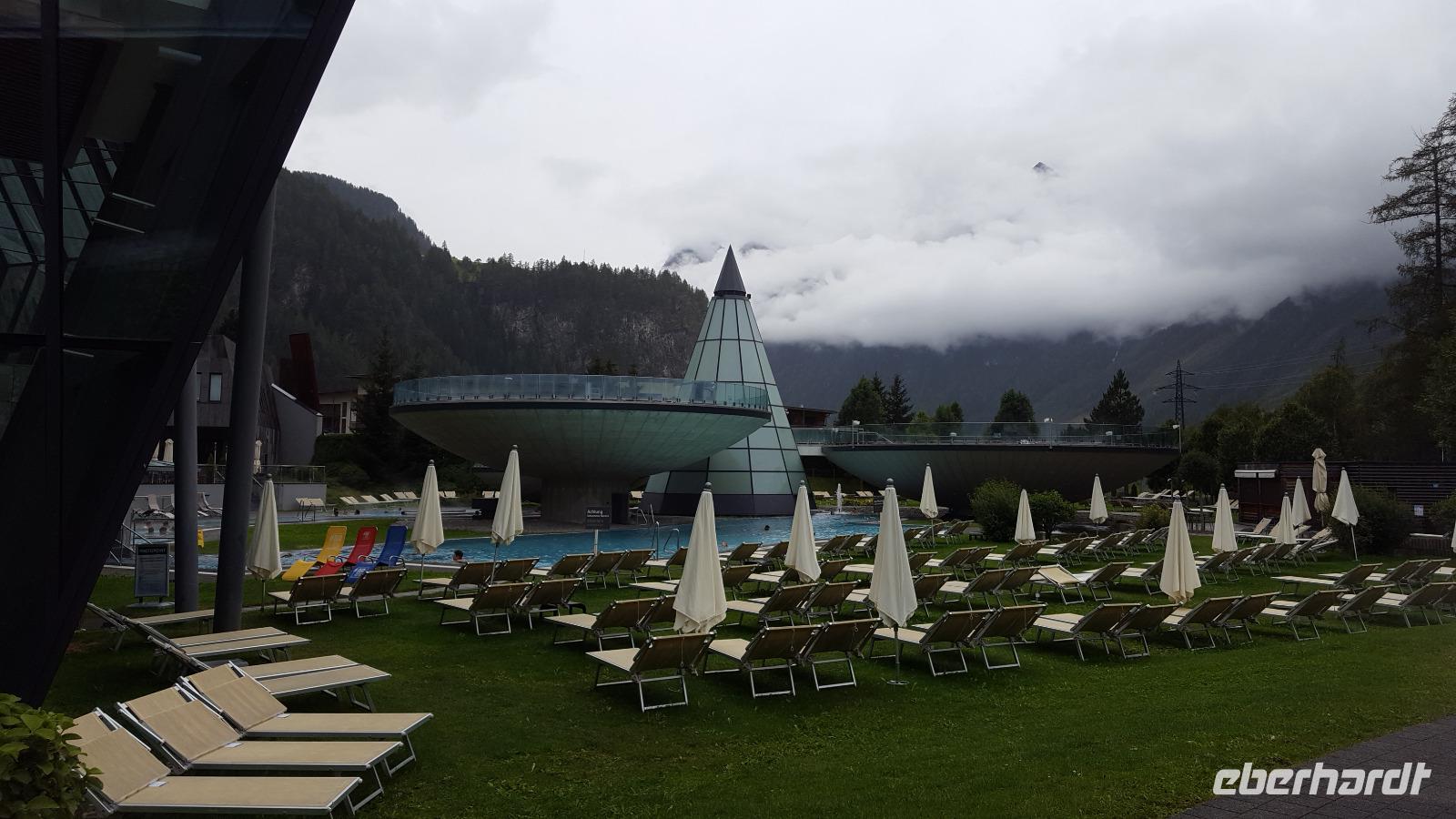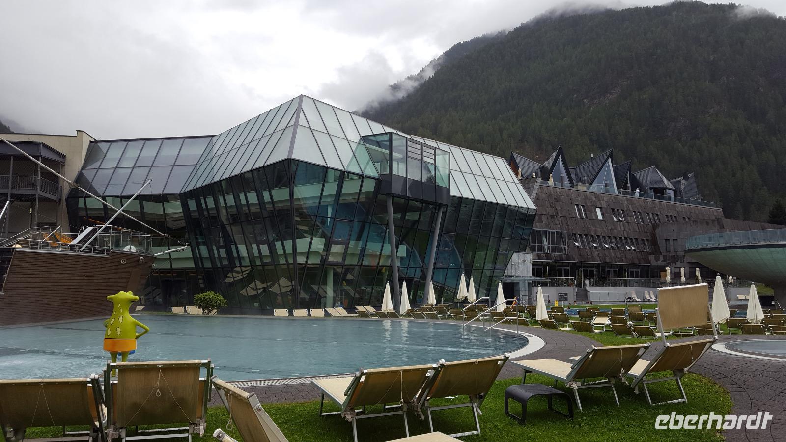 Wanderer für die Therme AQUA DOME in Längefeld. Das wohltemperierte Thermalwasser mit Blick auf die umliegende Bergkulisse hatte auch seinen besonderen Reiz.