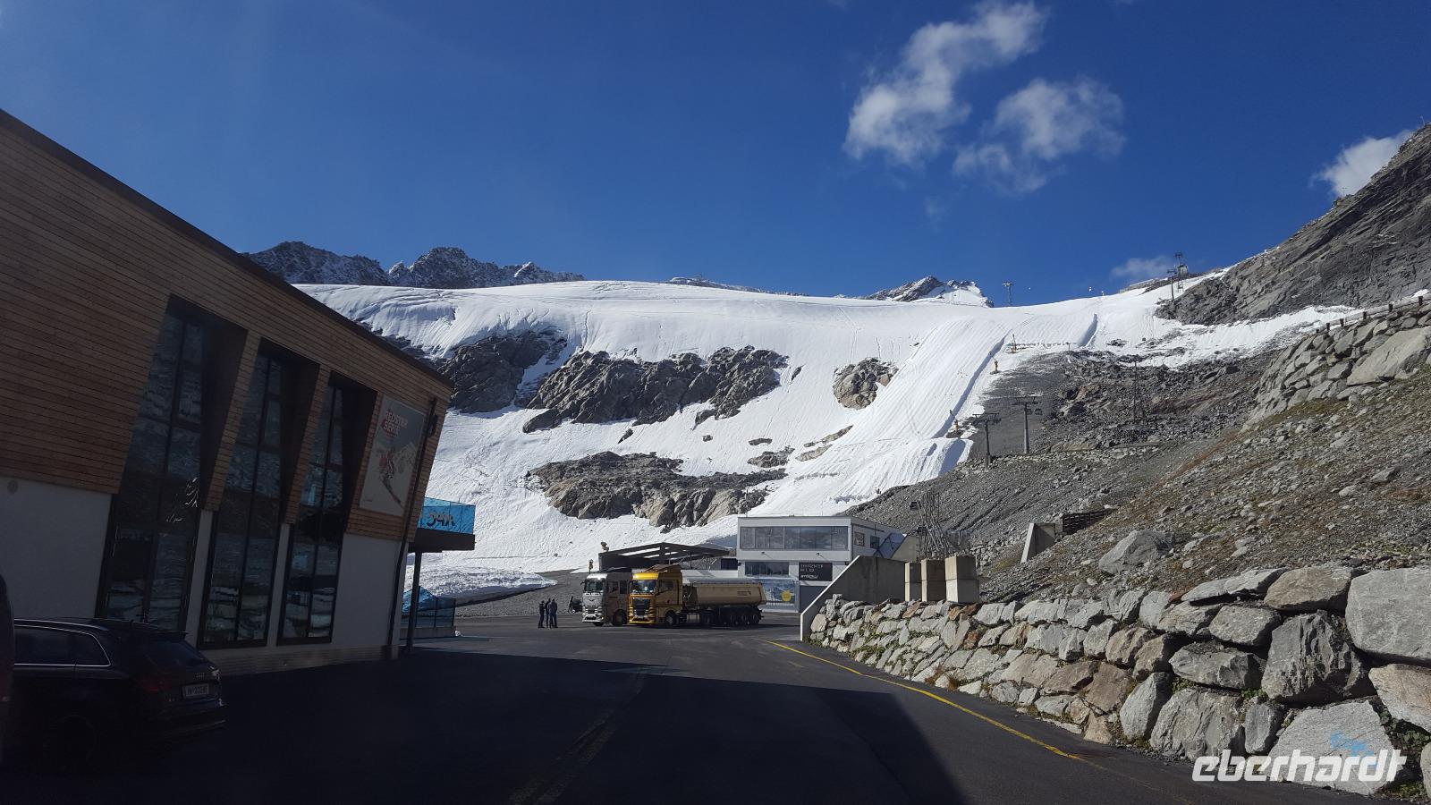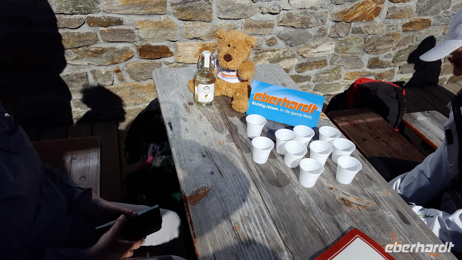Weitere 3 Std. über teilweise schmelzende Gletscher ging es zur Similaun Hütte auf 3.019 m. Das war schon anstrengend! Jedoch zur Belohnung gab es einen Gipfel Schnaps und der Blick auf den 3.599 m vergletscherten Similaun war beeindruckend.