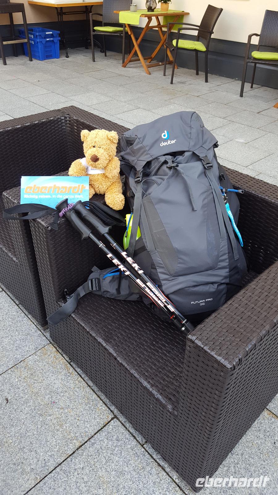 Mit dem Bus ging es von Vernagt nach Naturns zum Bahnhof und von dort war es nur ½ Stunde mit dem Zug nach Meran. Im Hotel Kolping standen unsere Koffer bereit und somit war unser Gepäck wieder komplett. Einige Gäste nutzten auch den schönen Pool im Hotel zum Relaxen.