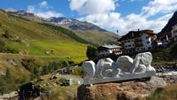 Unsere erste Tour startete mit der Giggijochbahn und wir schwebten auf 2.283 Höhenmeter. Leider versperrte uns Nebel und leichter Regen die Sicht auf den Rotkogel und Schwarzkogel. Je höher wir gelangten, umso freundlicher wurde das Wetter und stellenweise erhaschten wir etwas Sonne. Ein kleiner Gletschersee fügte sich harmonisch ins Landschaftsbild ein und ermöglichte die Sicht auf den Rettenbachferner. Dort konnten wir deutlich Gletscherabschnitte erkennen. Nach einem weiteren Anstieg erreichten wir den Seekogel und die Rotkogelhütte auf 2.666 Höhenmeter. Nach einer kurzen Rast brachte uns die Langeggbahn hinunter zur Stabele Bahn. Diese ist jedoch nur während der Ski Saison in Betrieb. Ein kurzer Wanderweg führte uns zur Alm „Gampe Thaya". Ein uriges Anwesen mit leckeren, lokalen Köstlichkeiten, denen wir nicht widerstehen konnten. So schafften wir den letzten Anstieg, der uns nach Hochsölden brachte. Leider setzte wieder der Nieselregen ein und der Abstieg erfolgte ab dem Restaurant „Sonnblick" bis nach Sölden zu unserem Hotel „Grüner".