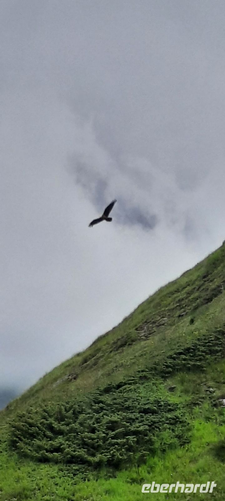 Unsere erste Rast in der Schönwieshütte kam uns sehr gelegen und die Sonne blinzelte ab und zu durch die Wolken. Sogar ein Steinadler zog direkt über uns seine Runden auf der Suche nach Beute. In der Schönwieshütte kehrten wir ein zur ersten Rast.