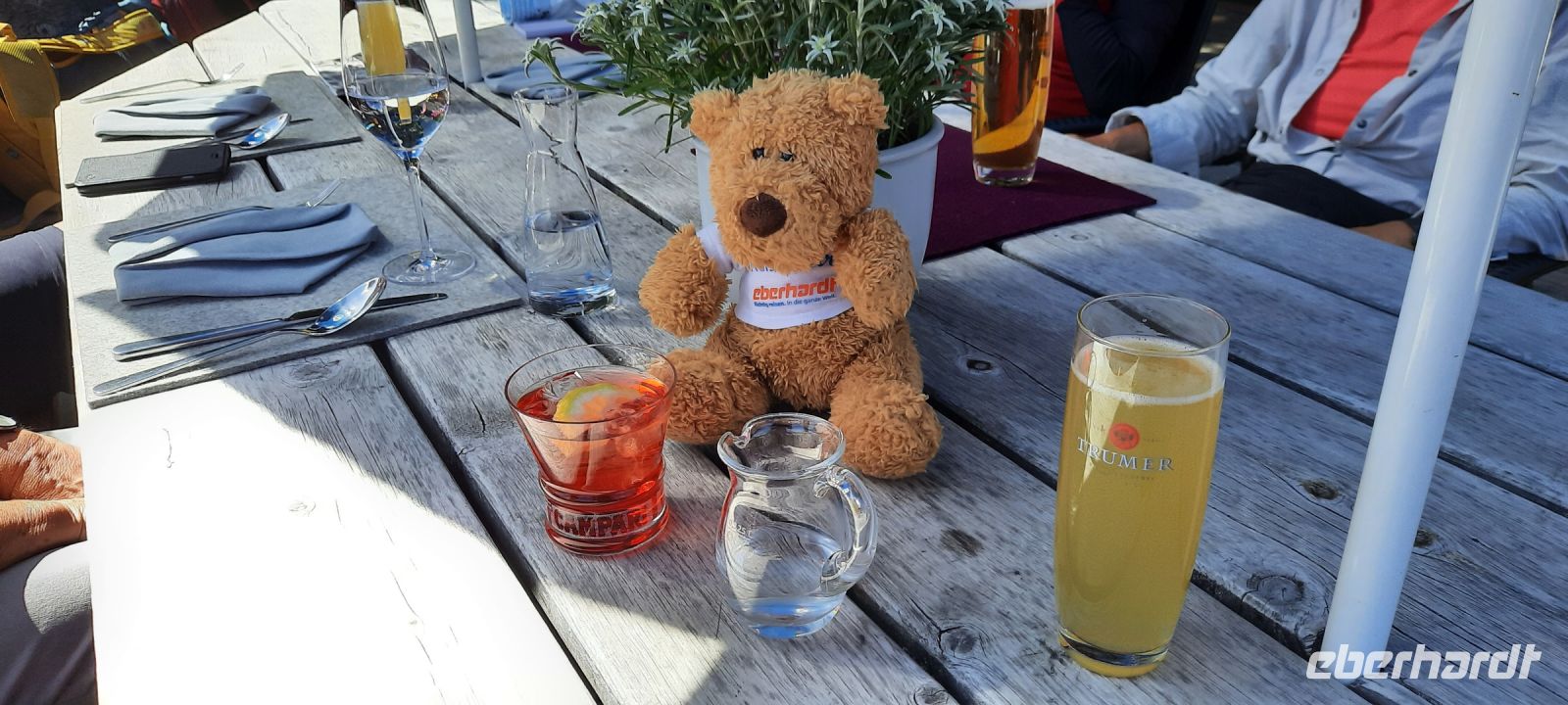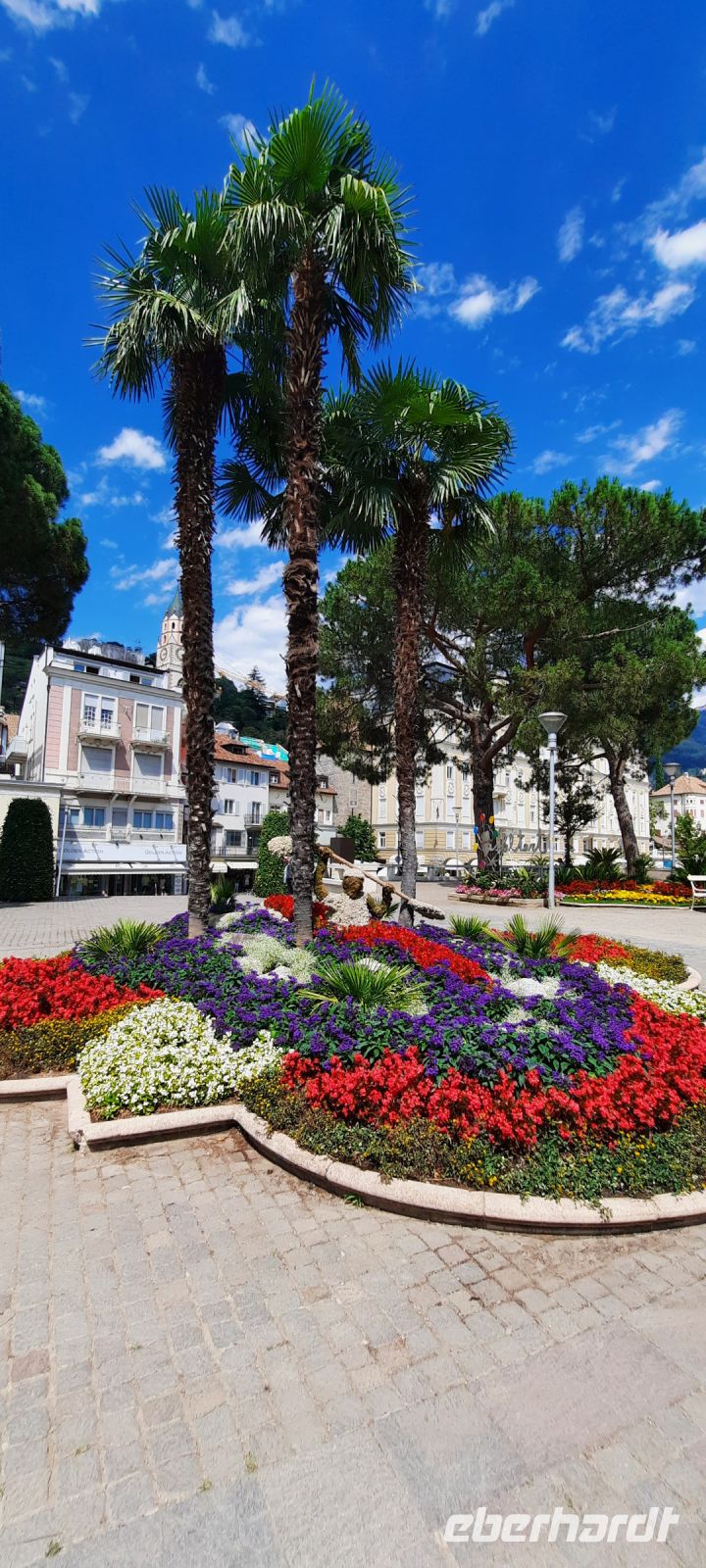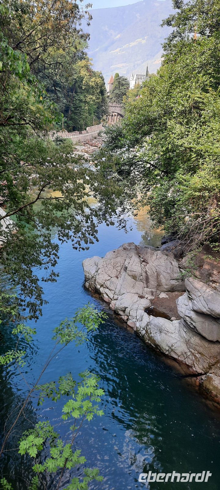 Mit dem Bus ging es von Vernagt nach Naturns zum Bahnhof und von dort war es nur ½ Stunde mit dem Zug nach Meran. Im Hotel Europa Splendid standen unsere Koffer bereit und somit war unser Gepäck wieder vollständig. Am Nachmittag war Zeit für einen entspannten Spaziergang durch die charmante Altstadt von Meran. Nach unserem vorzüglichen Abendessen im Hotel folgte ein Gläschen Wein, aber an einem speziellen Platz in Meran. Es war die begehbare Uferpromenade der Passer, die erfrischend durch die Kurstadt plätschert. Mit beeindruckendem Bergpanorama rings herum schmeckte uns genüsslich der Wein und ein erlebnisreicher Tag ging dem Ende entgegen.
