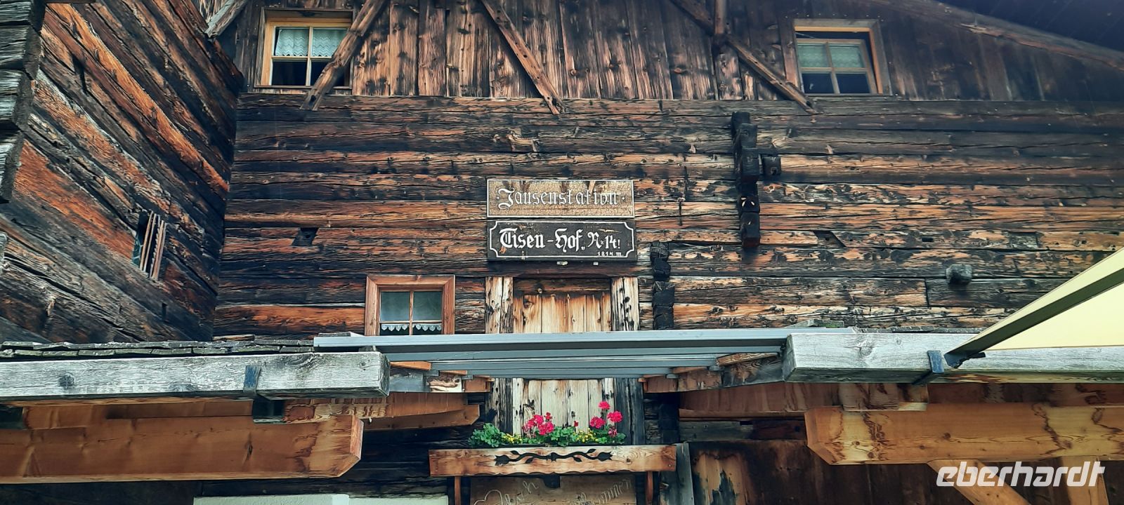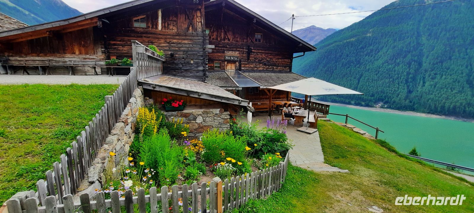 Da die Wolkenschicht locker bewölkt war, erblickten wir zum letzten Mal den majestätischen Similaun. Eine Gletscherzunge ist noch deutlich erkennbar. Zum Glück war es nicht so warm, wie am Vortag. Auf alten Passwegen kamen wir ins Südtiroler Schnalstal bis zum Tisenhof auf 1.814 Höhenmeter. Dieser Bergbauernhof Tisenhof (1306) besteht aus 3 Gebäuden, diente auch als Jausenstation und wurde 1981 unter Denkmalschutz gestellt.