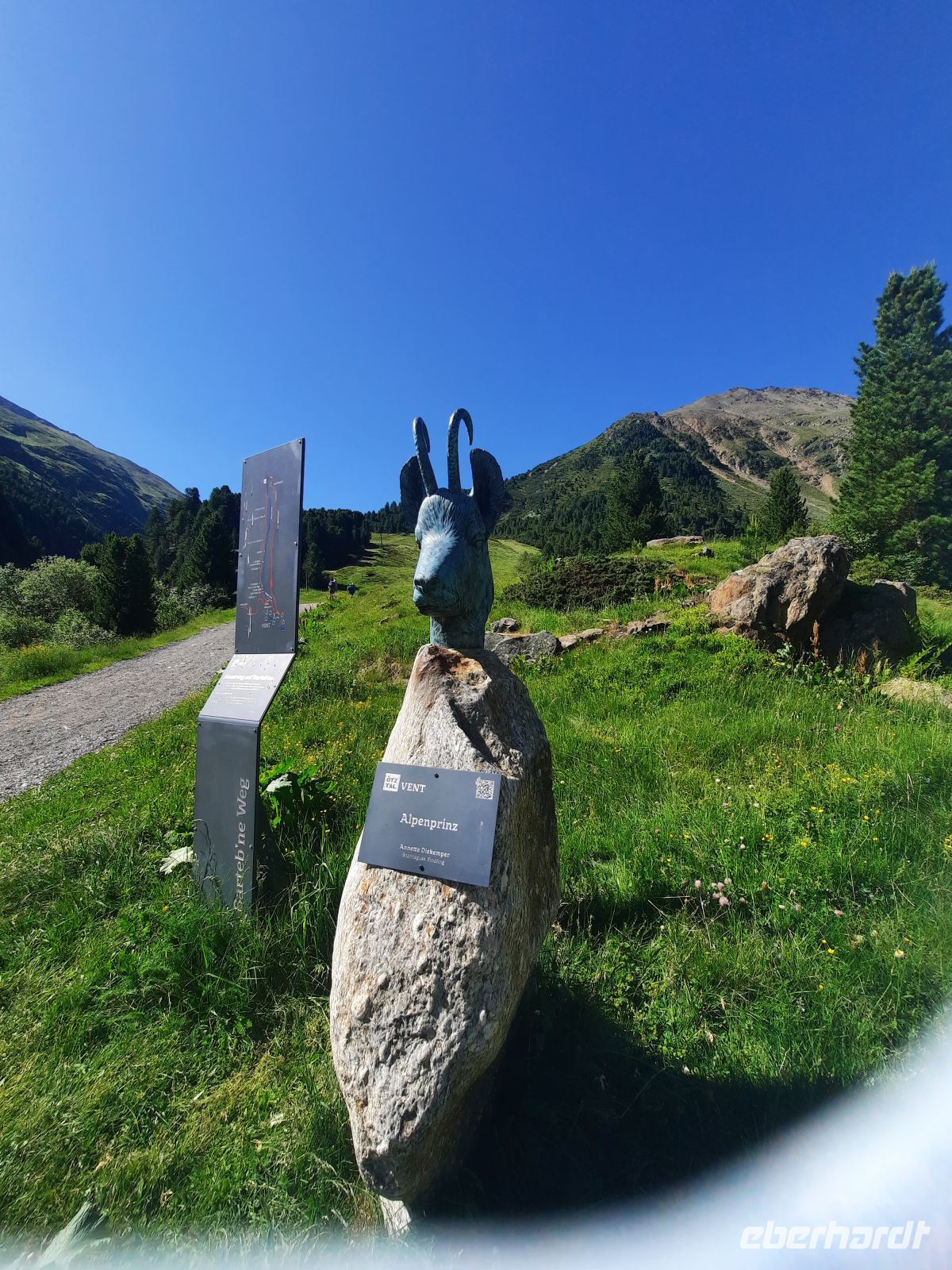Vom Dorfzentrum ging es zunächst über die Grugler Ache in Richtung Seenplatte. Es waren fast 500 Meter stetiger Anstieg bis zum Wegweisen Soomsee / Nedersee, der die eine oder andere Schweißperle auf die Stirn zauberte. Die Belohnung war der fantastische Ausblick auf die Gurgler Scharte, den Gries Kogel und das gegenüber liegende Königstal. Die Timmelsjoch Hochalpenstraße mit dem Museum war deutlich zu erkennen. Der Anblick der vergletscherten Dreitausender ließ den Alltag komplett ausschalten. Die Zeit schien still zu stehen, wenn nicht ab und zu ein paar Schafe unseren Weg kreuzen würden.