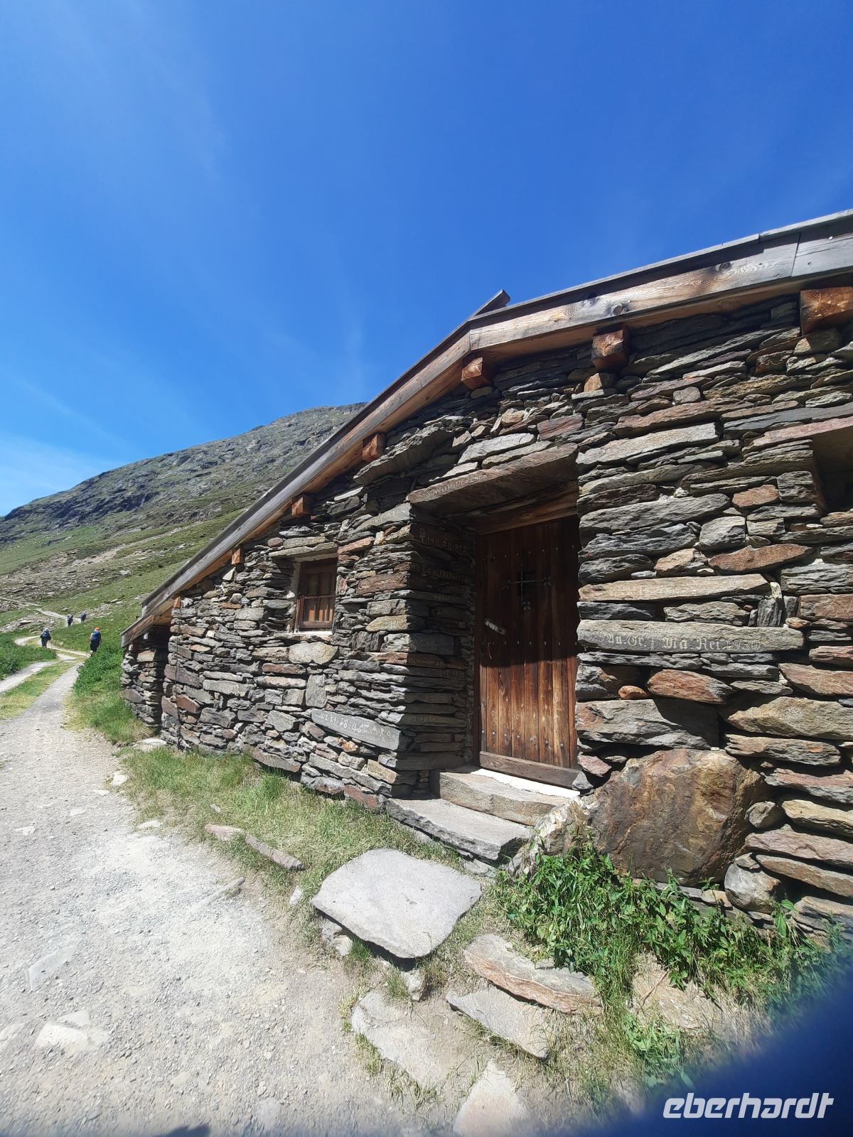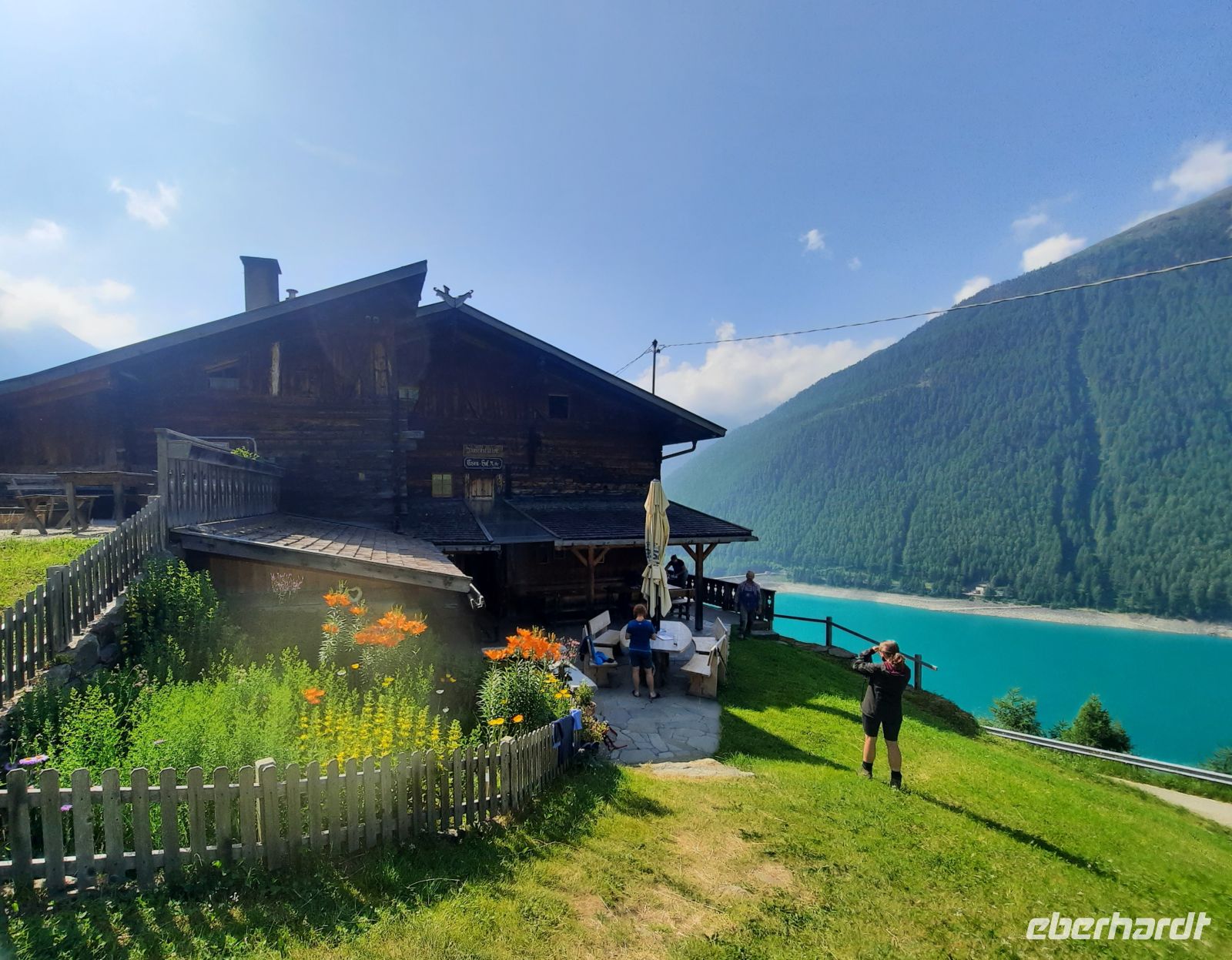 Da die Wolkenschicht locker bewölkt war, erblickten wir zum letzten Mal den majestätischen Similaun. Eine Gletscherzunge ist noch deutlich erkennbar. Zum Glück war es nicht so warm, wie am Vortag. Auf alten Passwegen kamen wir ins Südtiroler Schnalstal bis zum Tisenhof auf 1.814 Höhenmeter. Dieser Bergbauernhof Tisenhof (1306) besteht aus 3 Gebäuden, diente auch als Jausenstation und wurde 1981 unter Denkmalschutz gestellt.