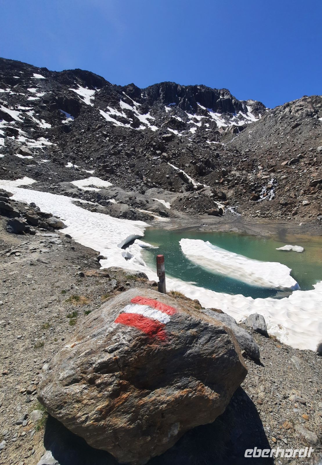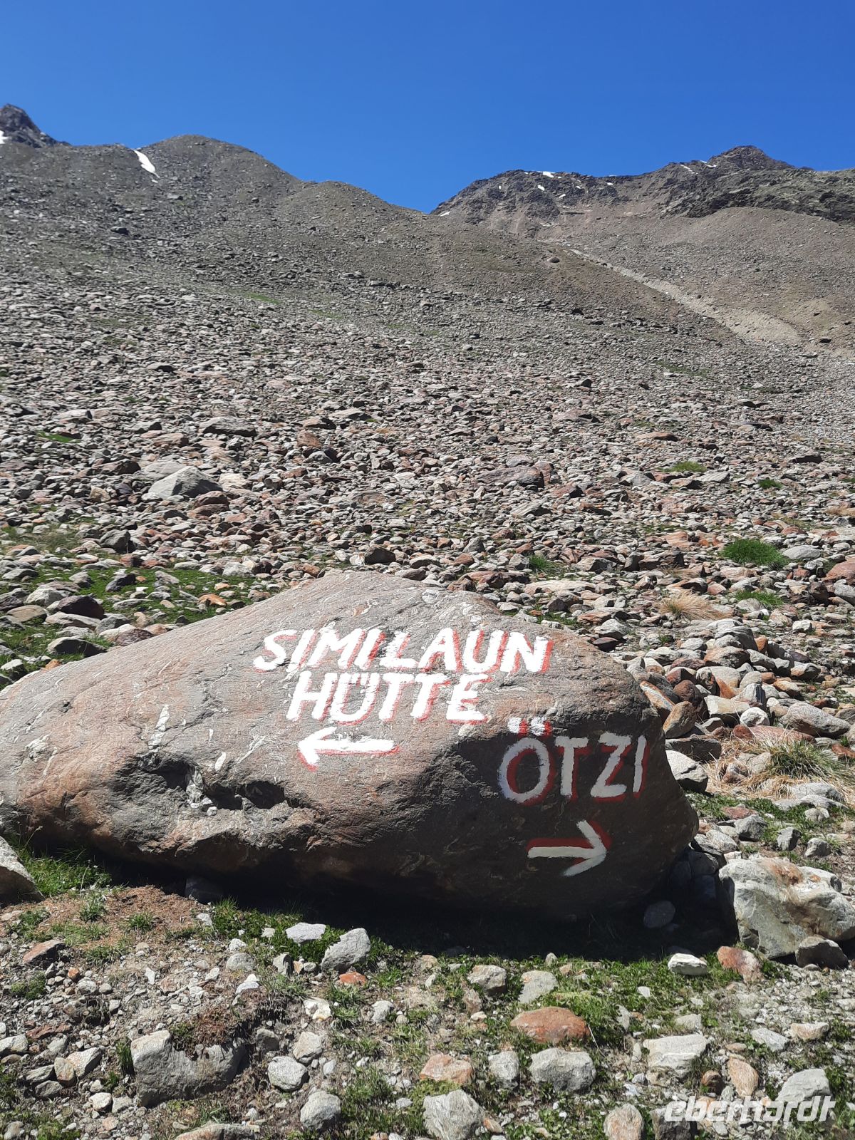Es ist der höchste Punkt der Alpenüberquerung am Schnalskamm in den Ötztaler Alpen und grenzt an der Texel Gruppe im Schnalstal in Südtirol.