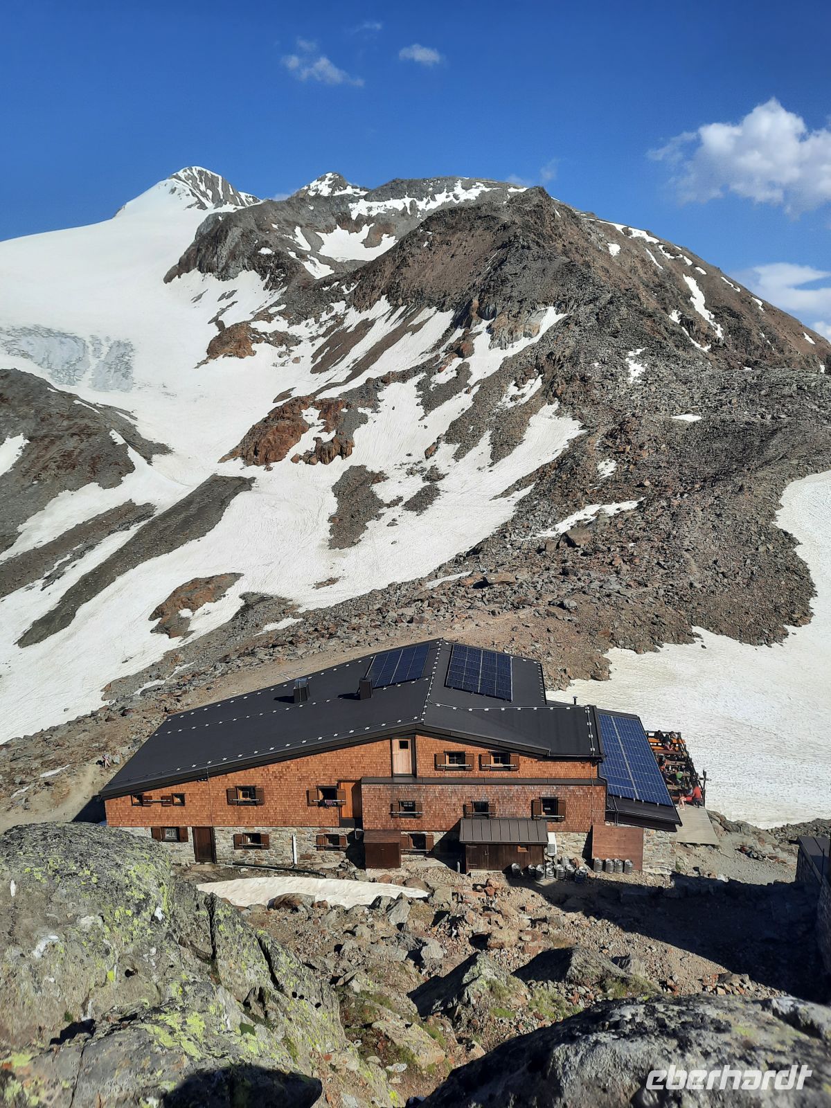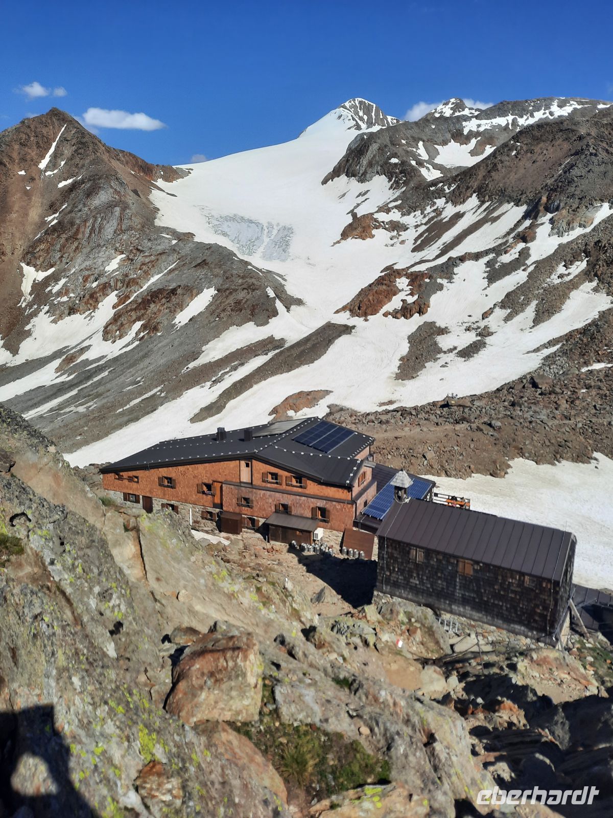 Es war ein besonderer Moment, als wir die Similaun Hütte auf 3.019 Höhenmetern erreichten. Das Bergpanorama auf den Gipfel des Similaun, die Texelgruppe und die Dolomiten war gigantisch.