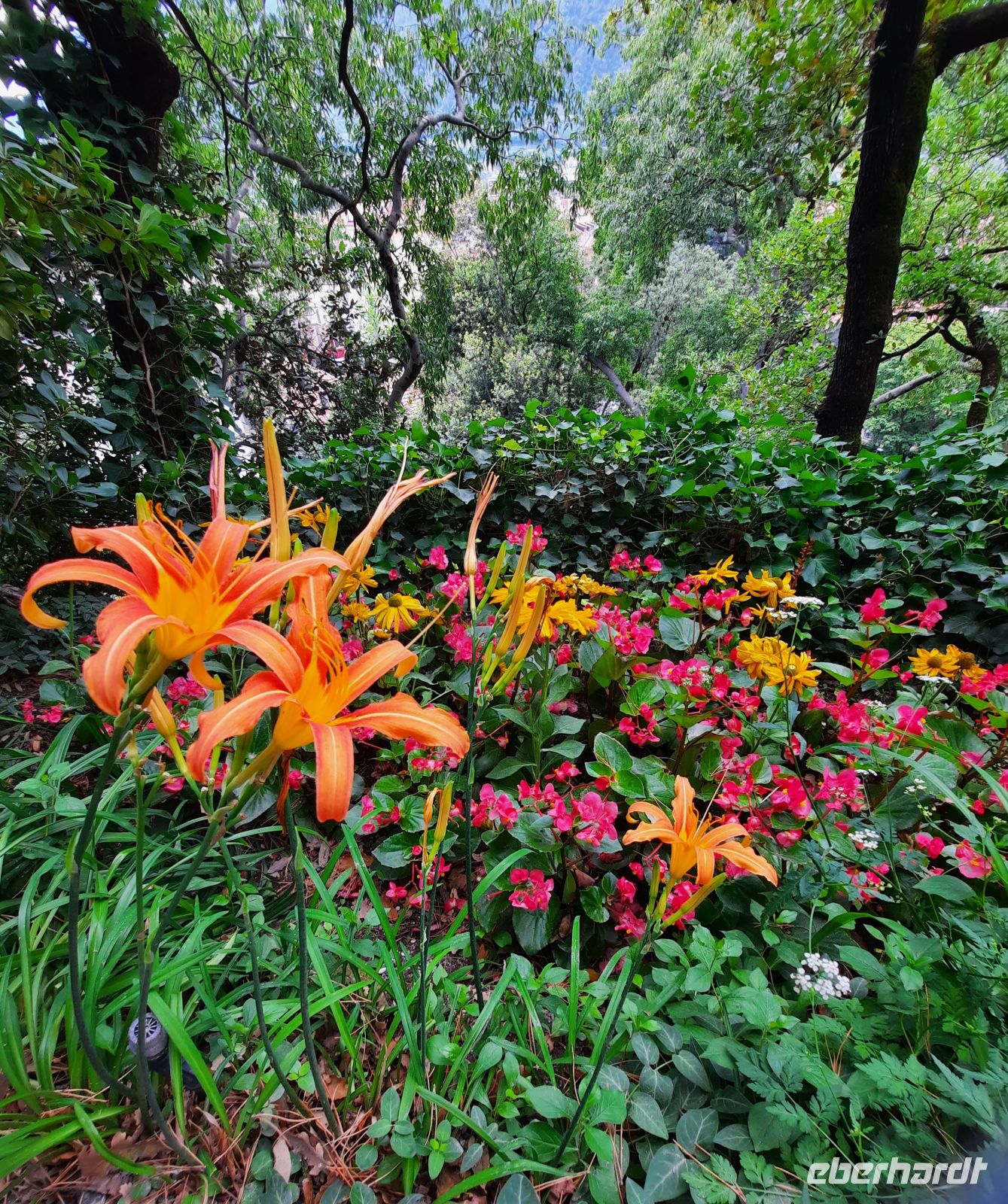 Der Vormittag stand unter dem Zeichen der 1 km langen Gilfpromenade, die aus der Gilfschlucht heraus stetig bergauf zum Pulverturm führte. Dieser markierte den Beginn des Tappeinerweg. Die subtropische Vegetation kann sich hier am sonnenverwöhnten felsigen Hang besonders gut entwickeln. Der Botaniker und Arzt Dr. Franz Tappeiner gab die Idee für die 6 km (hin und zurück) lange Höhenpromenade, die 1893 offiziell eröffnet wurde. Heute befindet sich am Fuße der Texelgruppe ein Mix aus alpinen und mediterranen Pflanzen. Entlang des Weges wachsen Kroaten Tanne, Pinien, Buntnessel, Oleander, Schmucklilie (Agapanthus), Magnolien, Agaven und Aloen, um nur einige zu nennen.