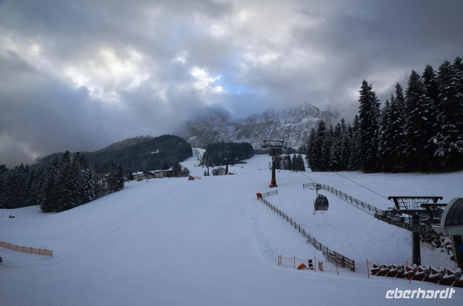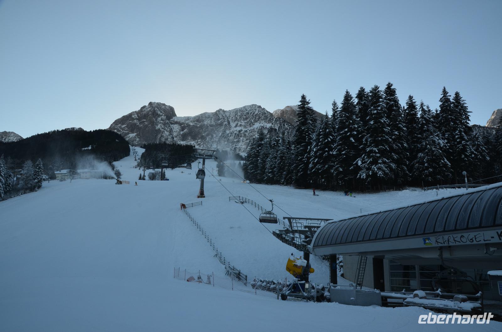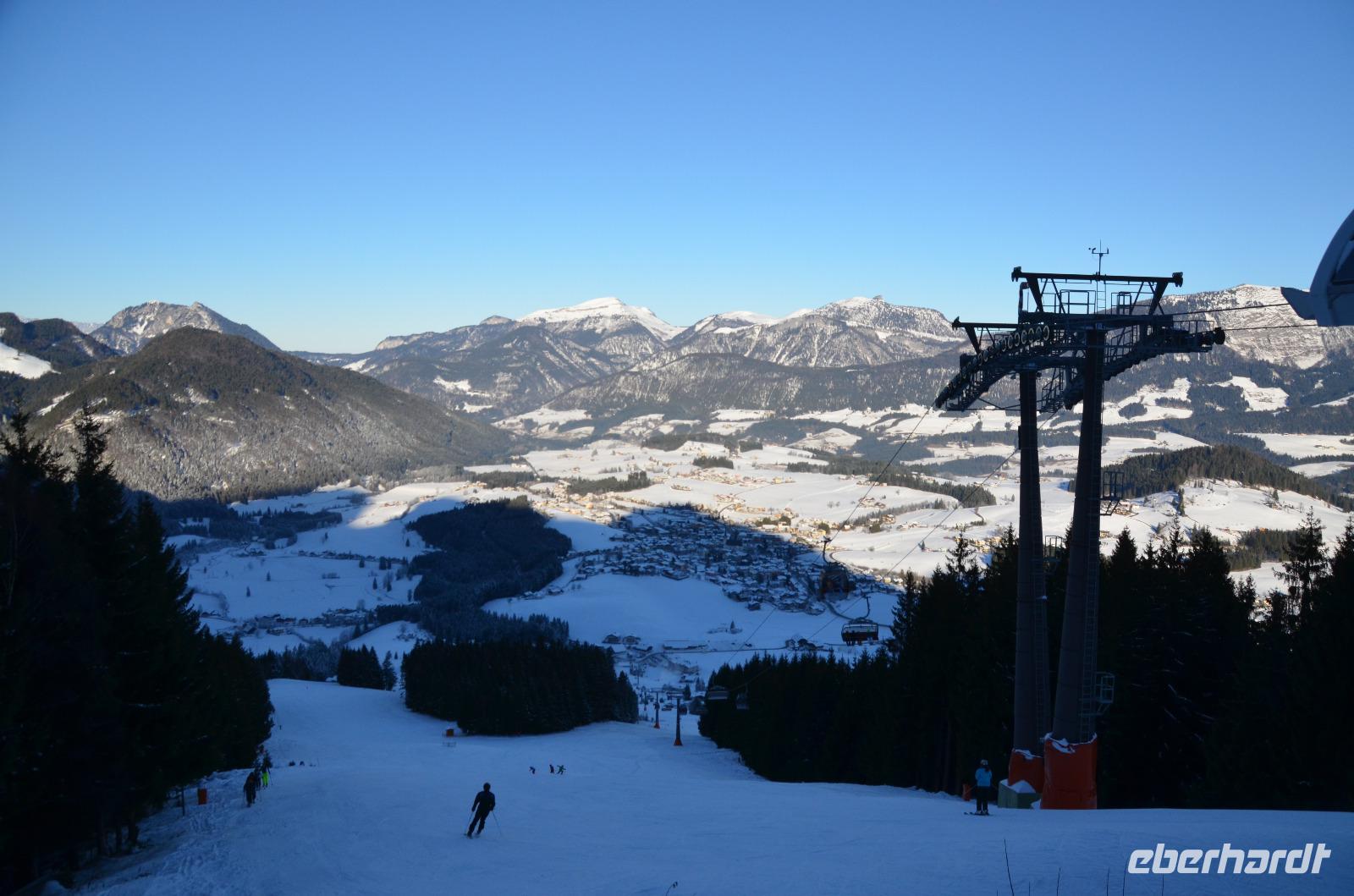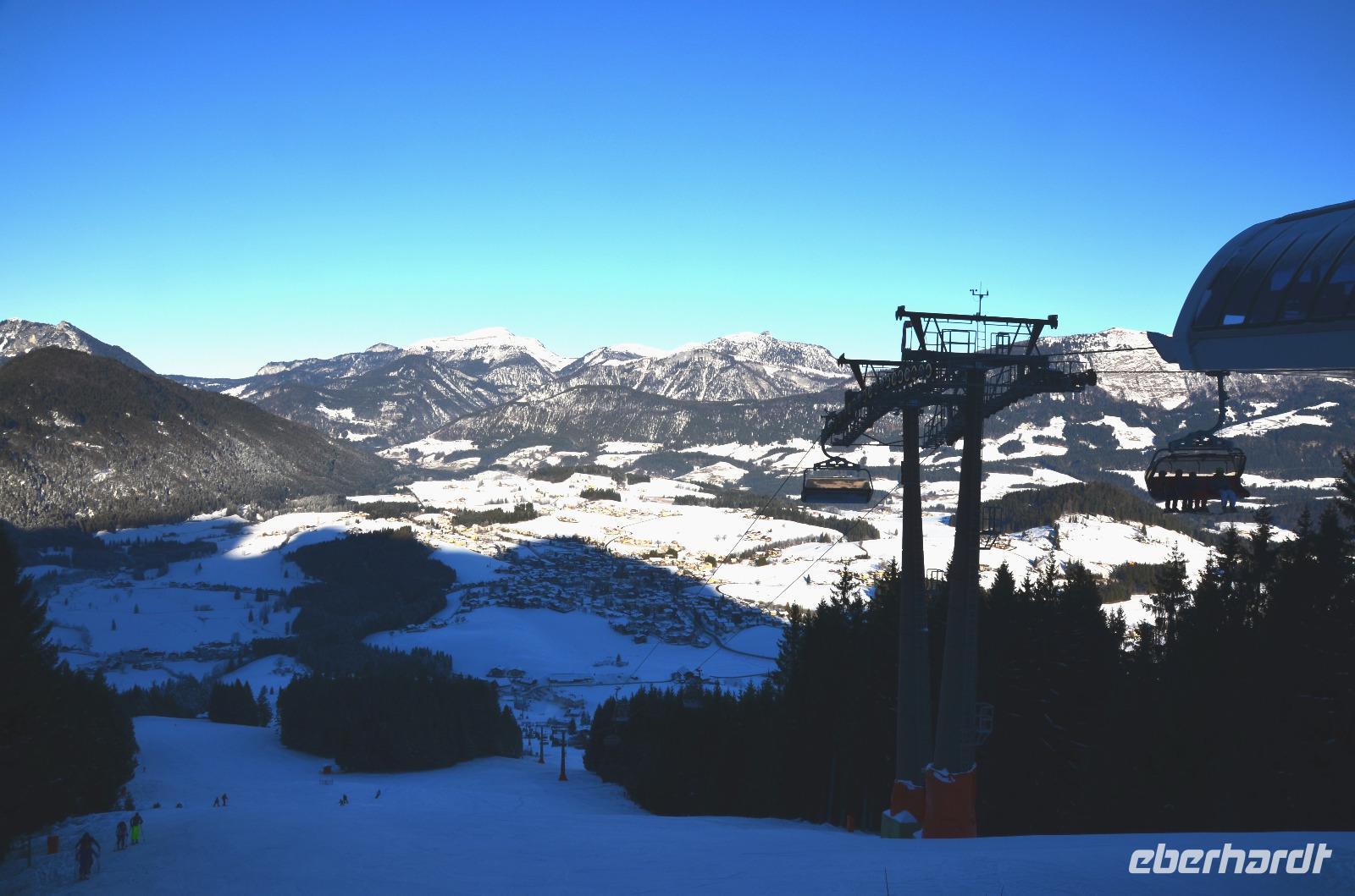 Durch das Hotel können wir mit Freitickets die nahe Karkogelbahn benutzen und das tun wir zuerst an diesem Vormittag. So genießen wir die schöne Aussicht auf Abtenau und die Postalm.