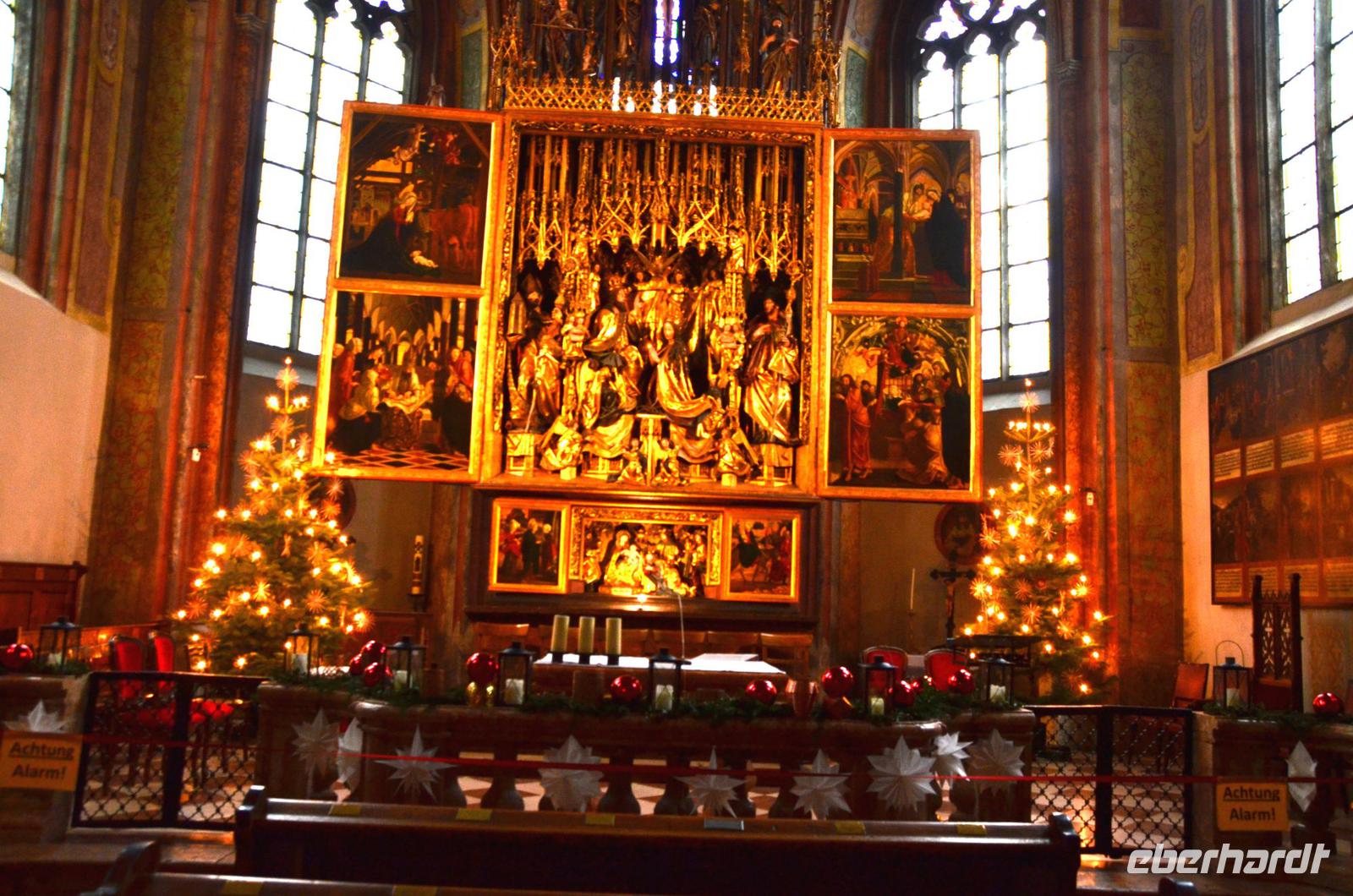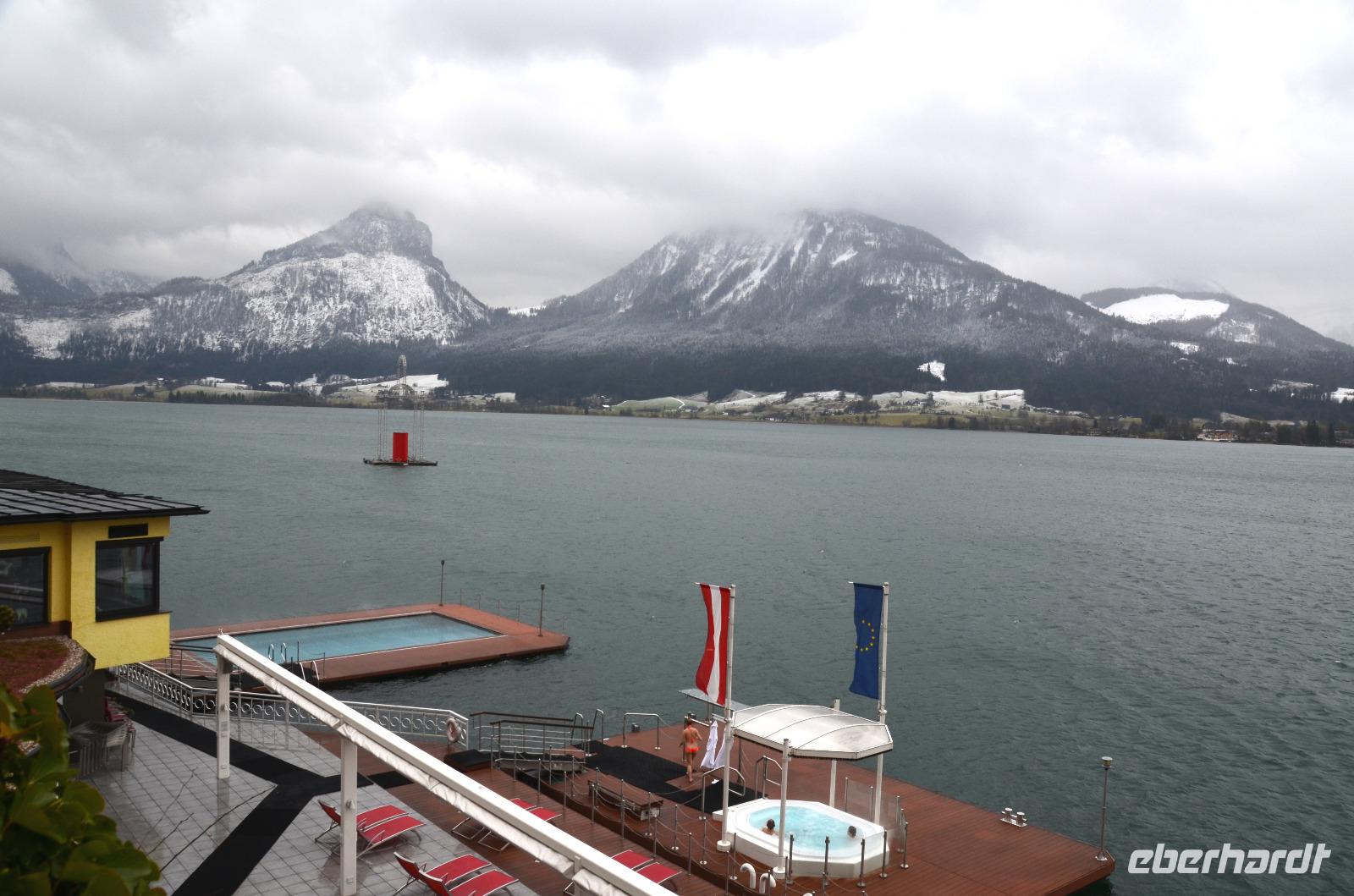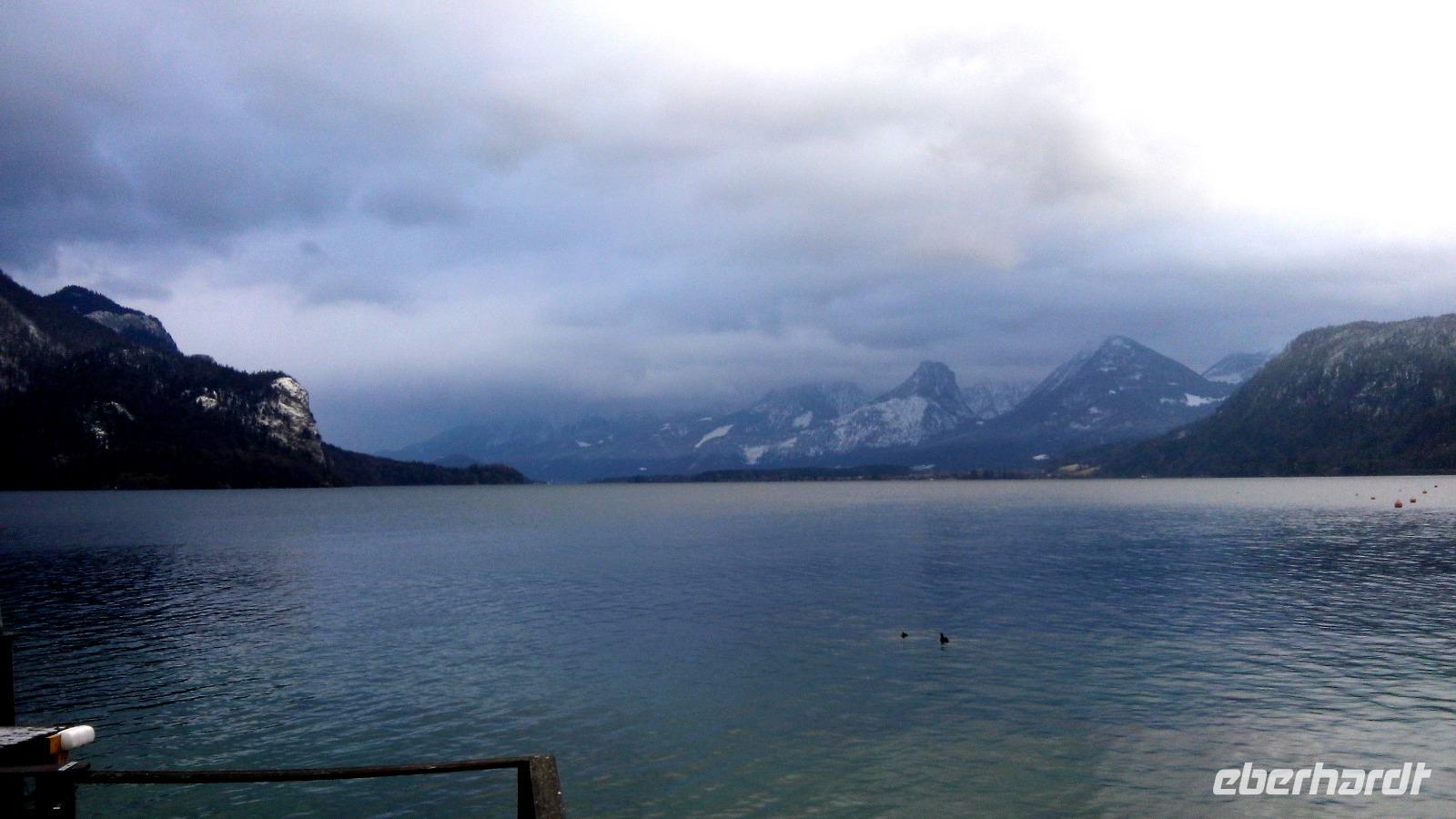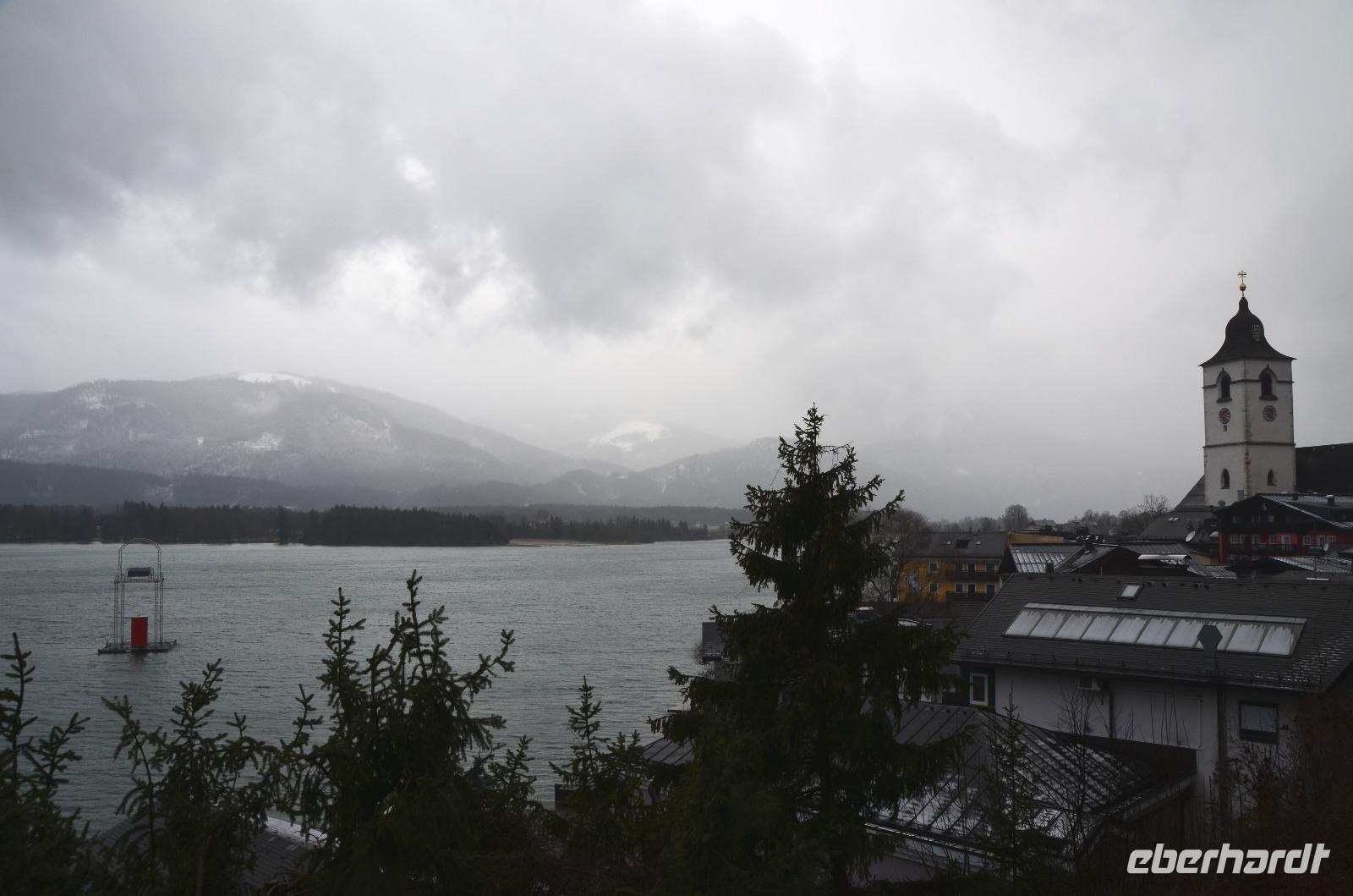 Am Mittag erreichten wir schließlich den Wolfgangsee, um dem hübschen Ort St. Wolfgang einen Besuch abzustatten. Wunderschön und noch im weihnachtlichen Schmuck liegt der Ort am Nordufer des Wolfgangsees. Der in den letzten Jahren zu einer guten Tradition gewordene Silvestermarkt ist leider stark reduziert worden. Das Wahrzeichen, die Laterne auf dem Wolfgangsee und die mit lebensgroßen Figuren ausgestattete Weihnachtskrippe am Marktplatz sind aber auf alle Fälle sehenswert.