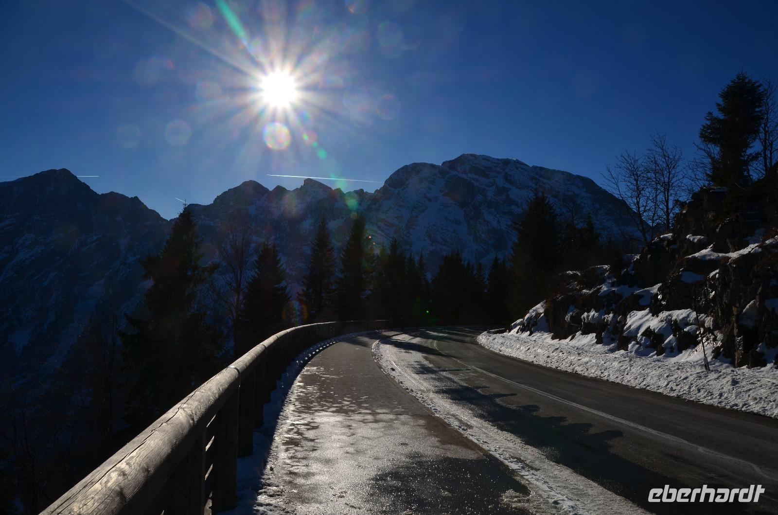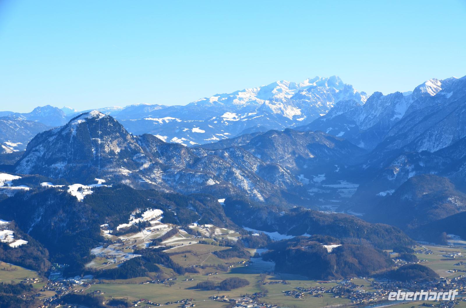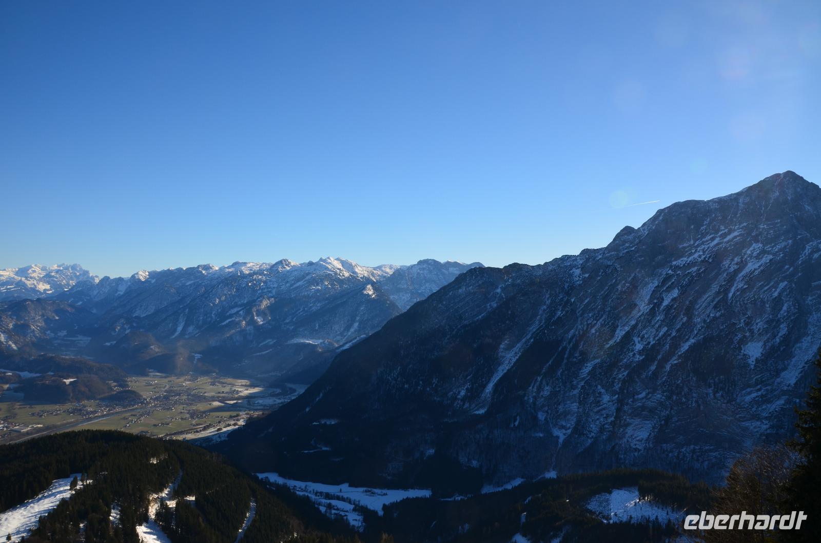 Die Roßfeldhöhenstraße ist unser nächstes Ziel an diesem schönen Neujahrstag. Wir fahren diese herrliche Bergstraße und stoppen an den wunderschönen Aussichten ins Berchtesgadner und ins Salzburger Land. Speziell der Tiefblick ins Salzachtal, nach Golling und hinüber zum Lammertal, dem Tennengebirge und dem Hohen Dachstein ist phantastisch.