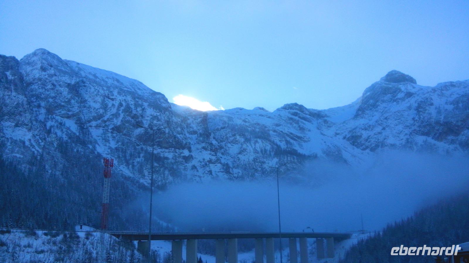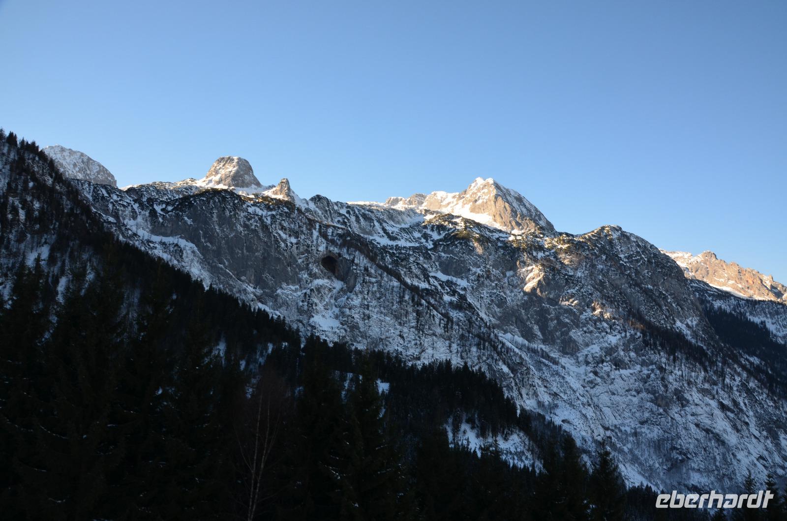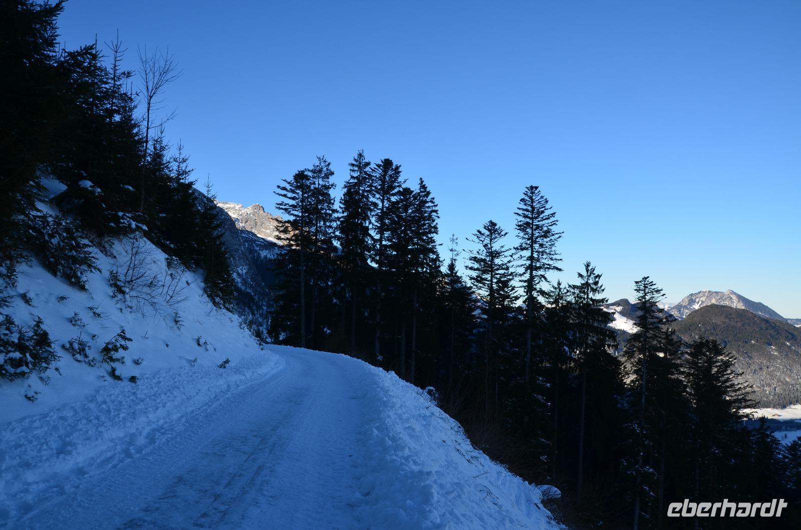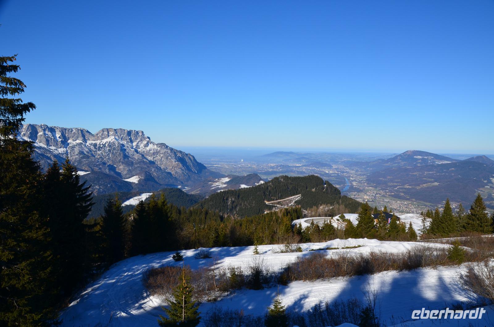 Die Roßfeldhöhenstraße ist unser nächstes Ziel an diesem schönen Neujahrstag. Wir fahren diese herrliche Bergstraße und stoppen an den wunderschönen Aussichten ins Berchtesgadner und ins Salzburger Land. Speziell der Tiefblick ins Salzachtal, nach Golling und hinüber zum Lammertal, dem Tennengebirge und dem Hohen Dachstein ist phantastisch.