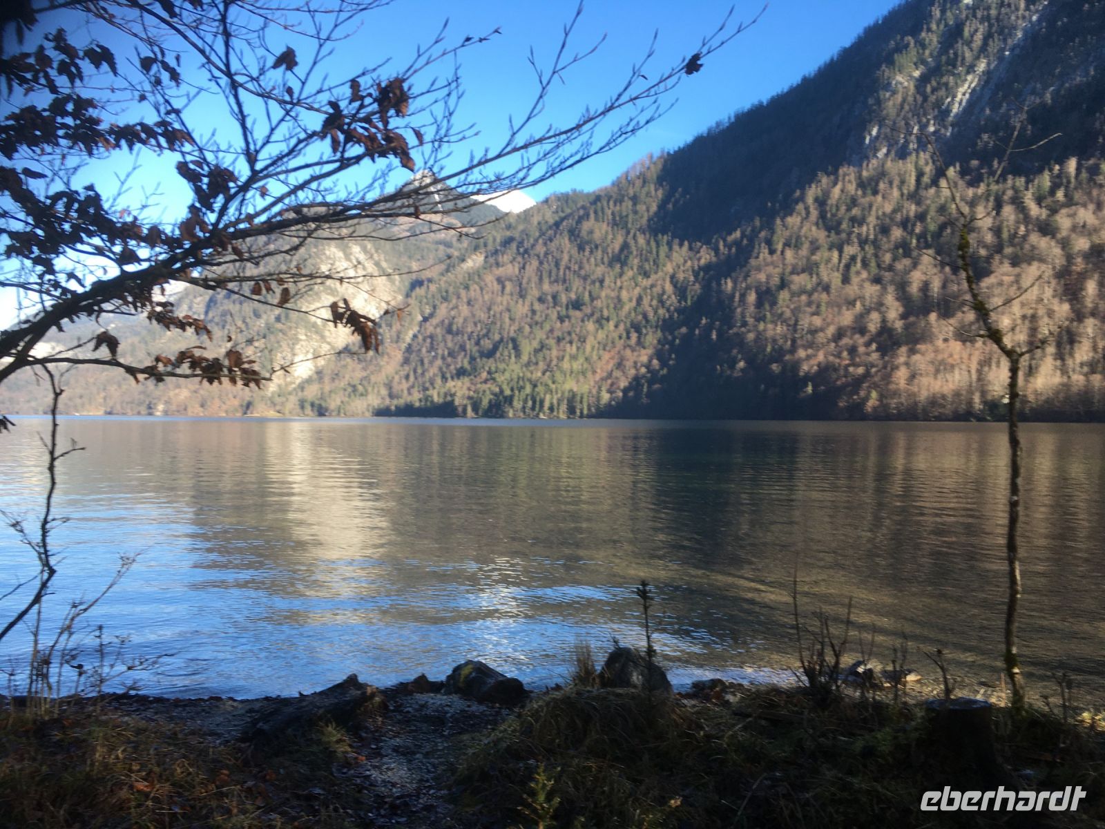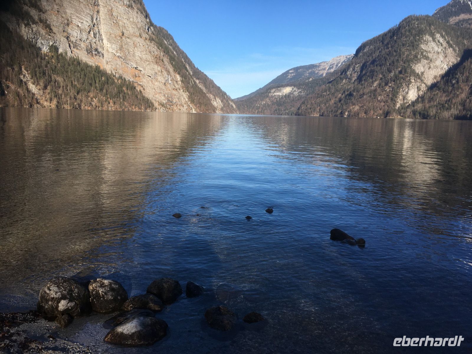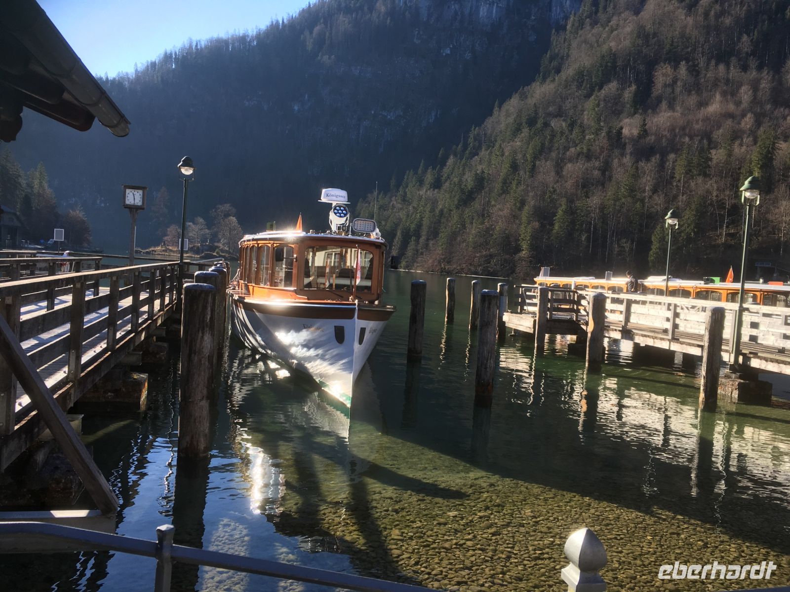 Anschließend fuhren wir zum Königsee. Dabei hatten wir gute Sicht auf König Watzmann, seine Frau und Kinder und hörten die Legende von seiner Entstehung. Die meisten Gäste fuhren mit dem Schiff nach St. Bartholomä hinüber. Auf dem Boot hörten wir eine Musikdarbietung auf der Trompete mit Echo von der Echowand. Bei bestem Sonnenwetter genossen wir den Blick auf die berühmte Watzmann- Ostwand, spazierten am Königsee entlang und speisten in der Gaststätte St. Bartholomä.