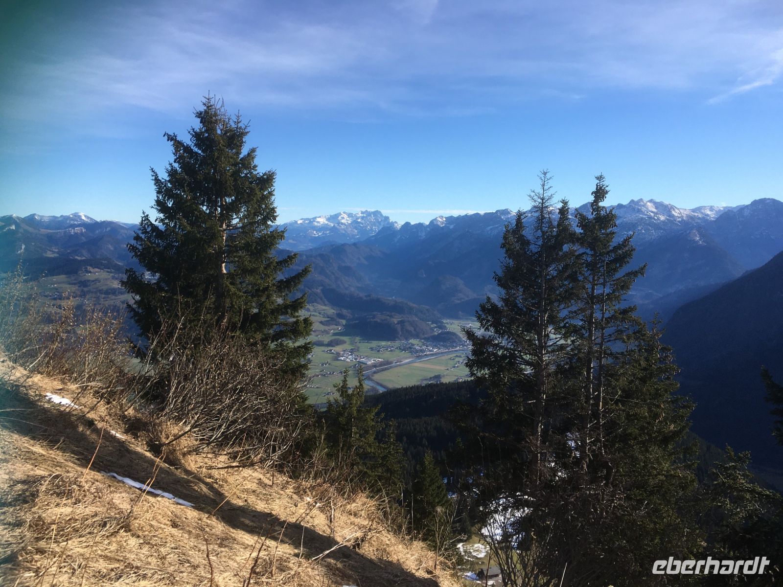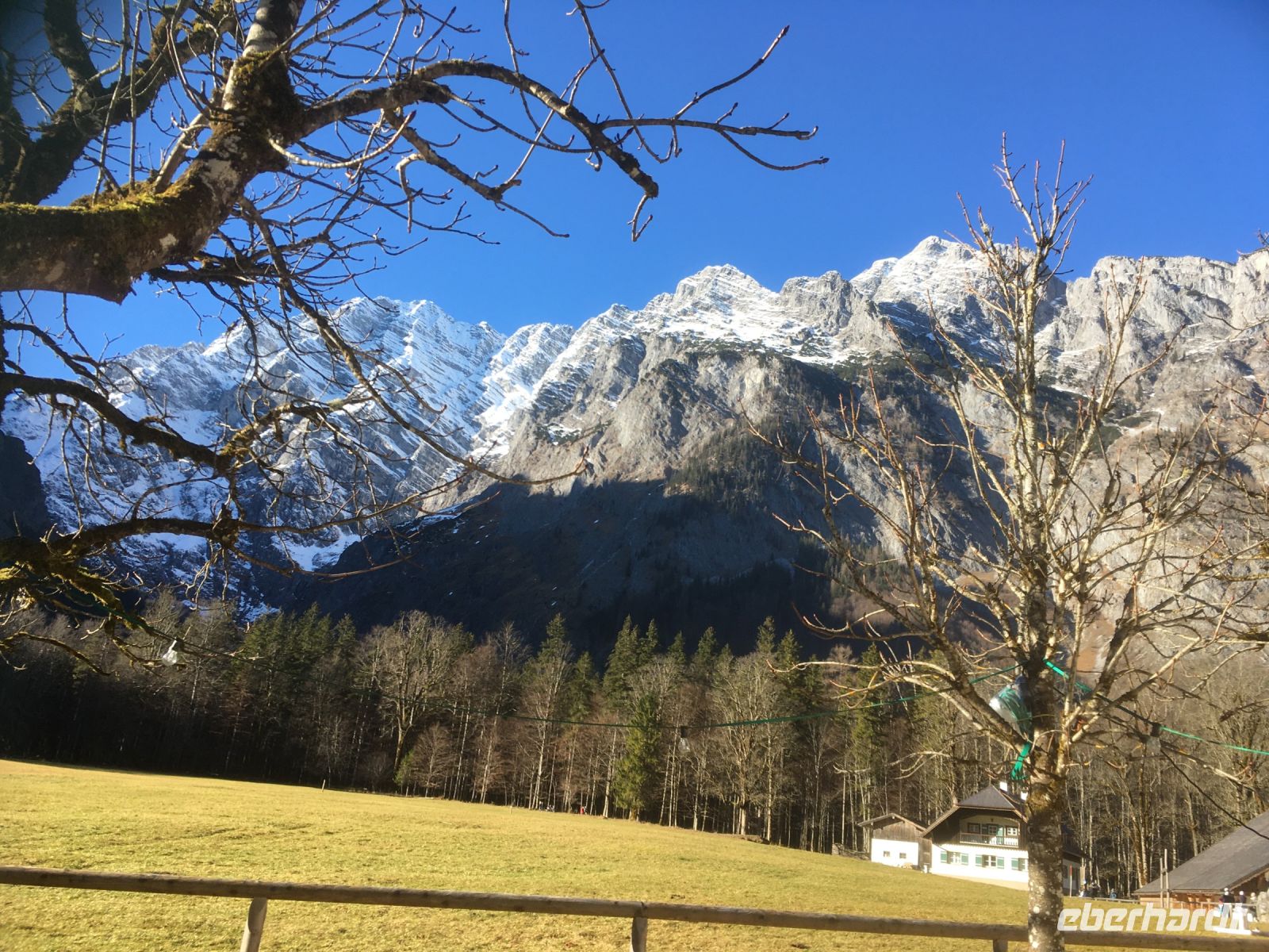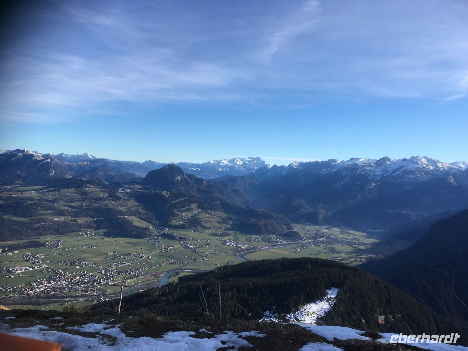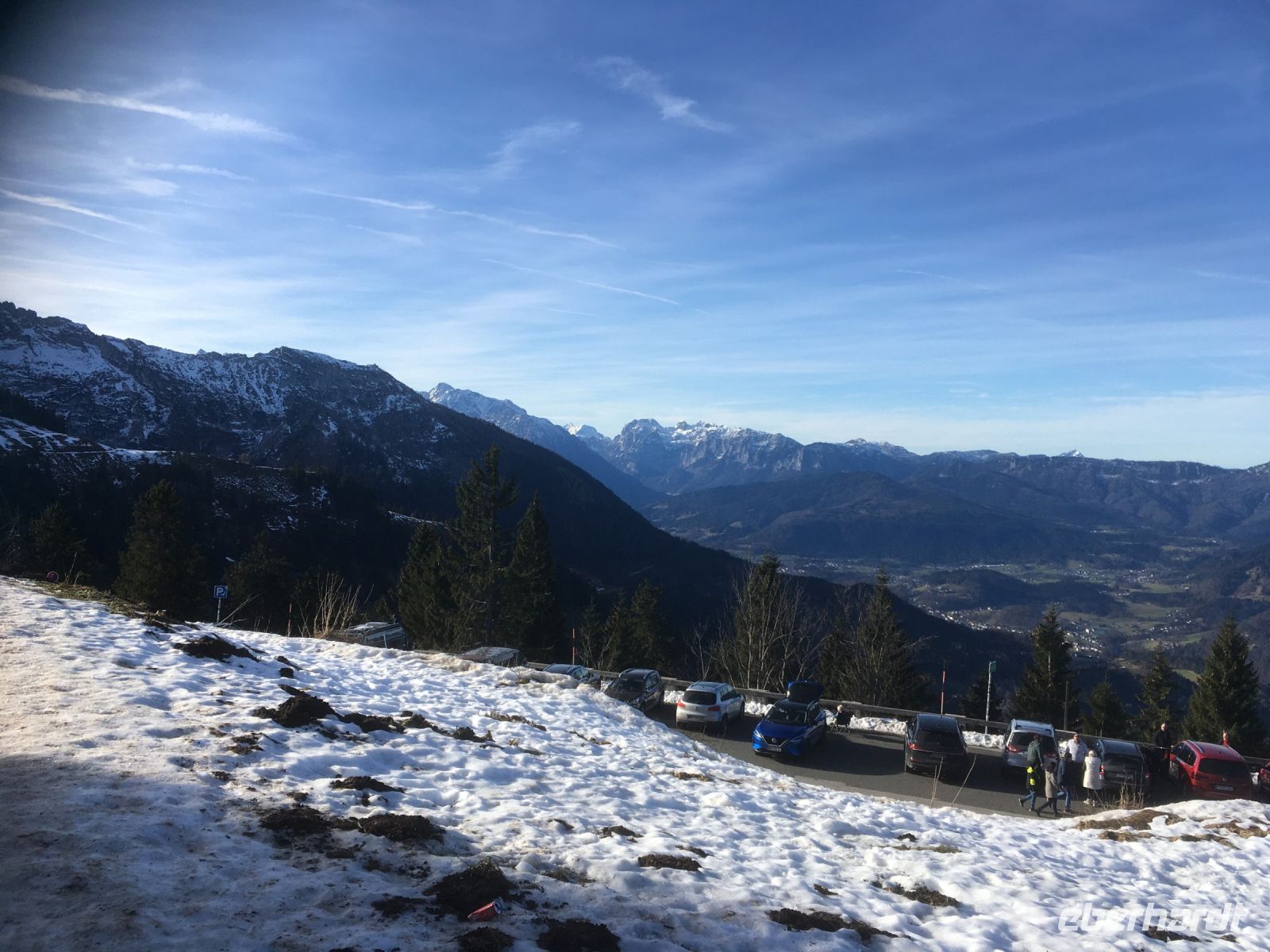 Nach dem gemütlichen Neujahrsfrühstück brachen wir auf nach Berchtesgaden und befuhren die Rossfeld Höhenstraße. Wir machten am Scheitelpunkt eine Pause, hatten Zeit, den Panoramarundweg zu begehen. Es gab tolle Aussichten auf Salzburg, den Hohen Göll und den Kehlstein. In der Ferne konnte man den Dachstein in seiner ganzen Pracht bewundern.