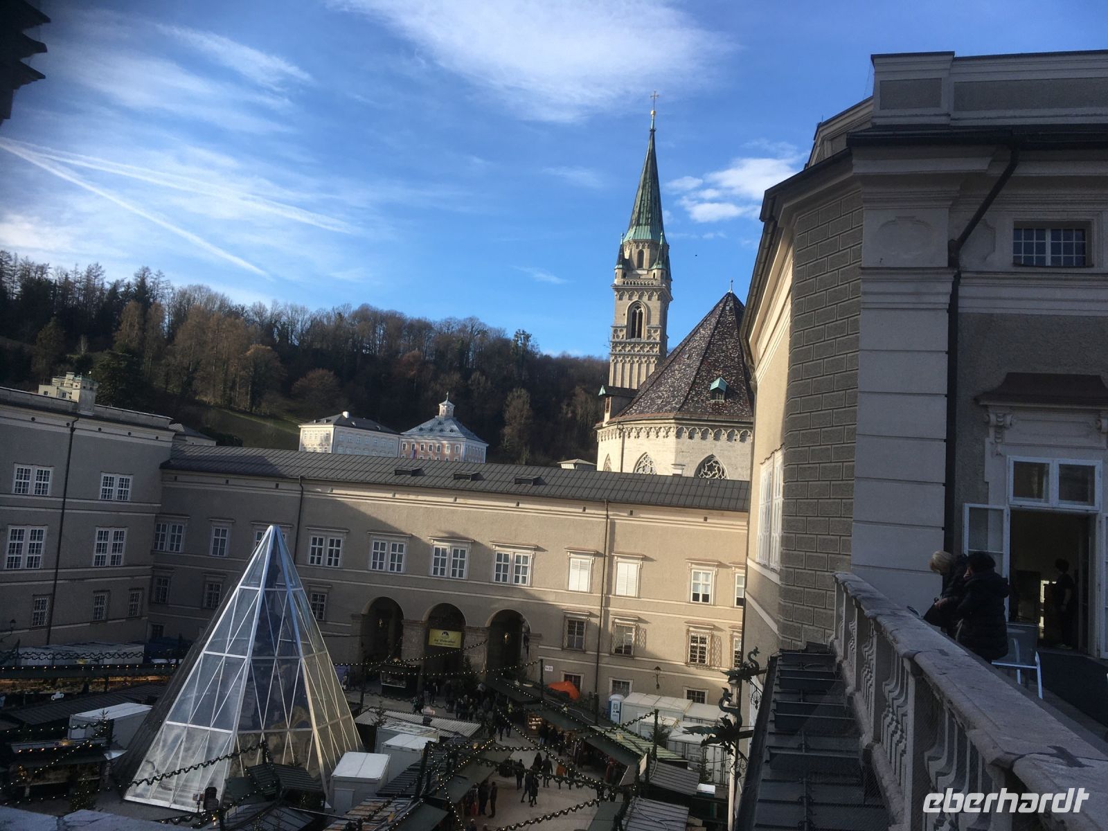 An diesem Tag stand die Hauptstadt des Salzburger Landes auf dem Programm. Vom Busterminal aus gingen wir mit der Reiseleiterin am Salzachufer entlang zum Zentrum und hatten dabei schöne Ausblicke auf die Stadt. Im Domquartier hatten wir eine Führung. Wir sahen die prunkvollen Räume der Fürsterzbischöfe und bekamen einen Eindruck von deren Reichtum. Besonders gefallen hat vielen, dass wir die Glocken läuten hören konnten und auch eine kleine Darbietung im Dom auf der Orgel hatten, als wir von der Orgelempore in den Dom schauten. Wir staunten über die Exponate in der Wunderkammer und sahen wertvolle Gemälde in der langen Galerie und in der Abtei St. Peter. Anschließend entdeckten wir Salzburg noch auf eigene Faust Viele besuchten den Christkindlmarkt oder besuchten ein landestypisches Kaffeehaus.