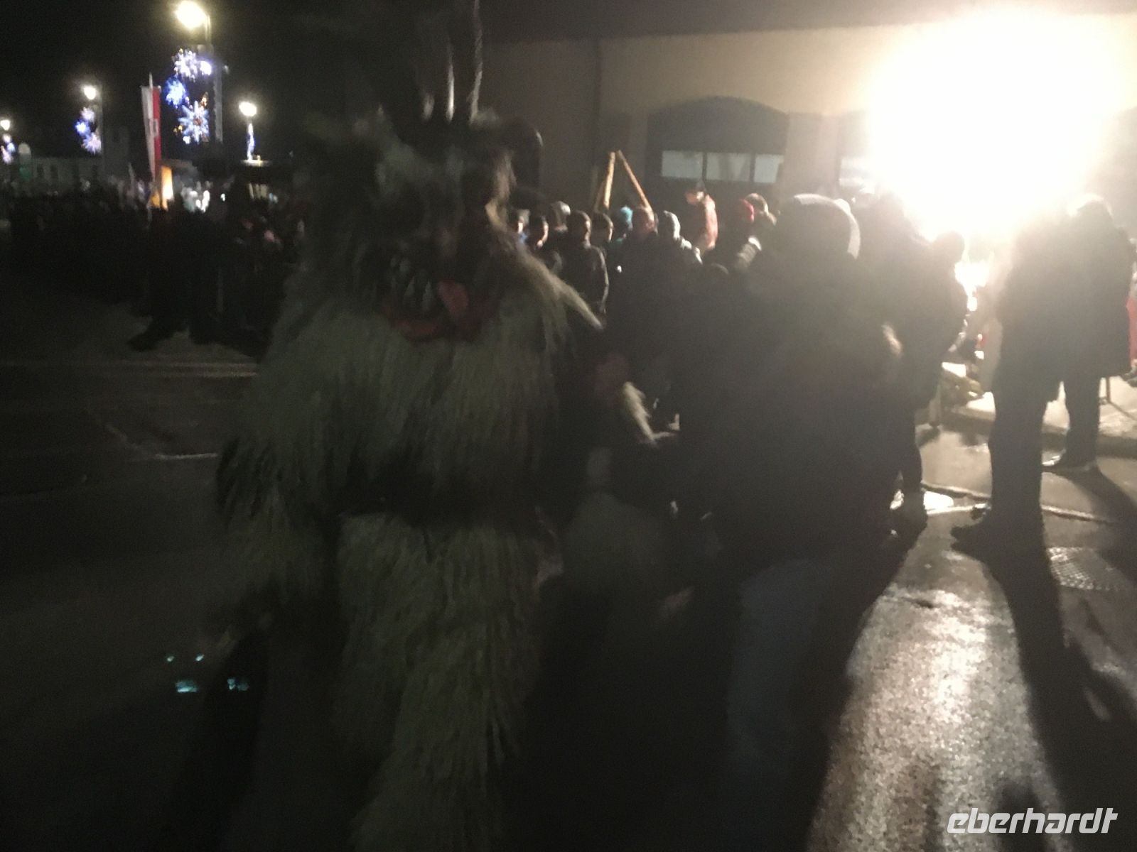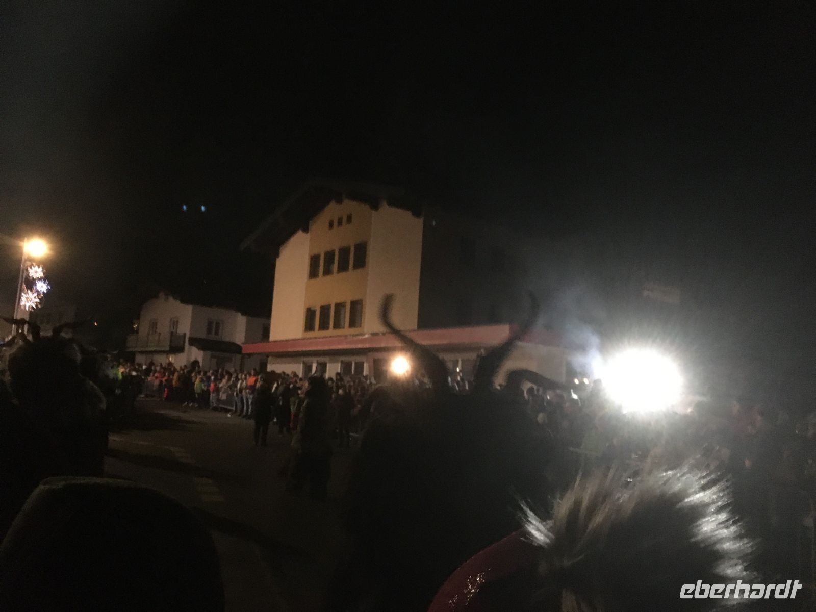 Nach einem frühen Abendessen brachte uns der Bus nach Pfarrwerfen zum Perchtenlauf. Punkt 19h begannen verschiedene Gruppen von Perchten an den Zuschauern vorbei zu laufen und ihre Masken und Verkleidungen in Szene zu setzen. Die Vorführung wurde durch Schütteln von Glocken und Peitschenknallen untermalt. Den Abschluss der Veranstaltung bildete ein Feuerwerk.