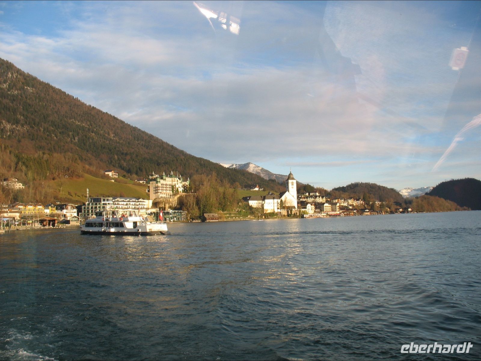 Am Nachmittag brachte der Bus uns nach St. Wolfgang und wir sahen dort das Weiße Rössl und hörten in der prächtig ausgestatteten Kirche von der Legende des Hl. Wolfgang und der Entwicklung der Wallfahrt nach St. Wolfgang. Zum Abschluss machten wir wir eine Schifffahrt nach St. Gilgen, wo der Bus und wieder abholte. Wir hatten wunderbare Ausblicke auf den See und nach St. Wolfgang zurück.
