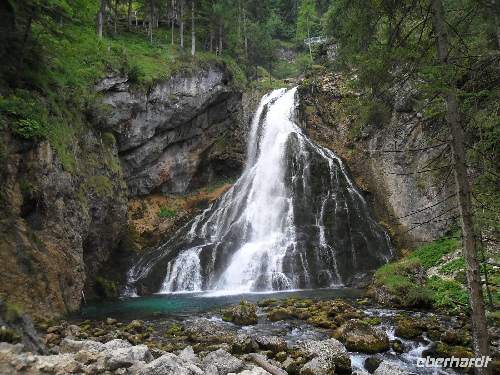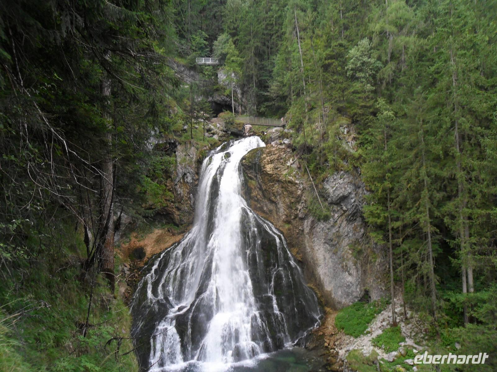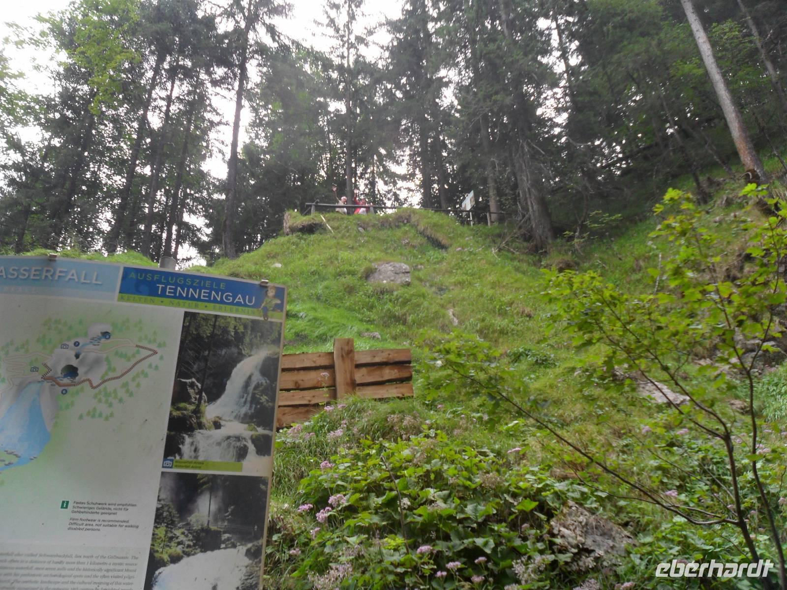 9:10 - 11:00 Uhr Wasserfall, selbst für die älteren Gäste erfolgte der Aufstieg, ganz steil, bis oben hin. Dann ging es zur „Christlalm", dort erwarteten uns schon die Musikanten bei der Brettl-Jause, Rückfahrt über die Holzgemeinde Kuchl.