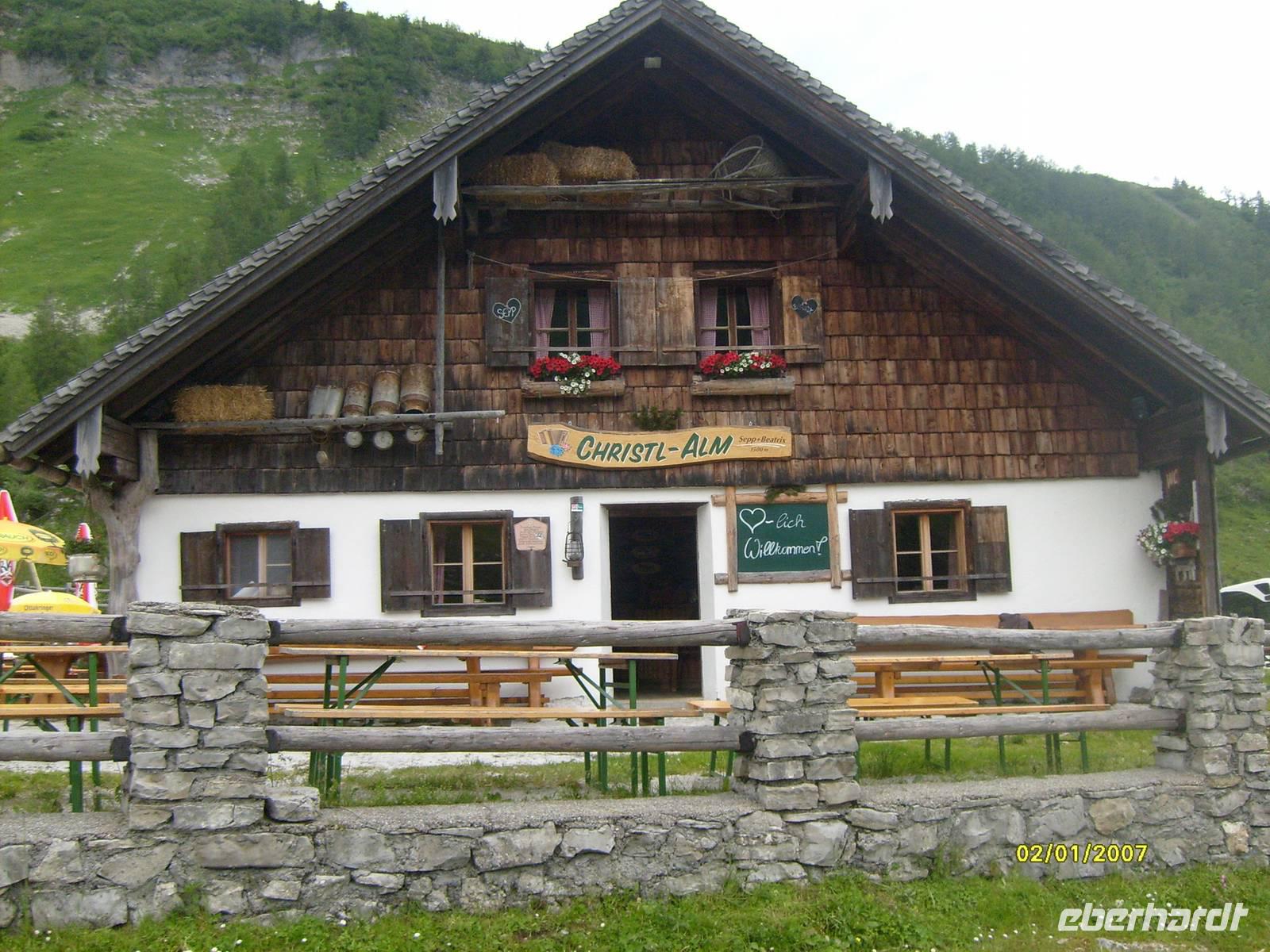 Danach fuhren wir noch ein kleines Stück bis zur Christlalm, eine der schönsten Almhütten des Salzburger Landes. Dort erwarteten uns schon die Wirtsleute zur Brettljause. Sepp, der Chef, sorgte mit seiner Steirischen und einigen Witzen für gute Laune und musikalischer Unterhaltung.