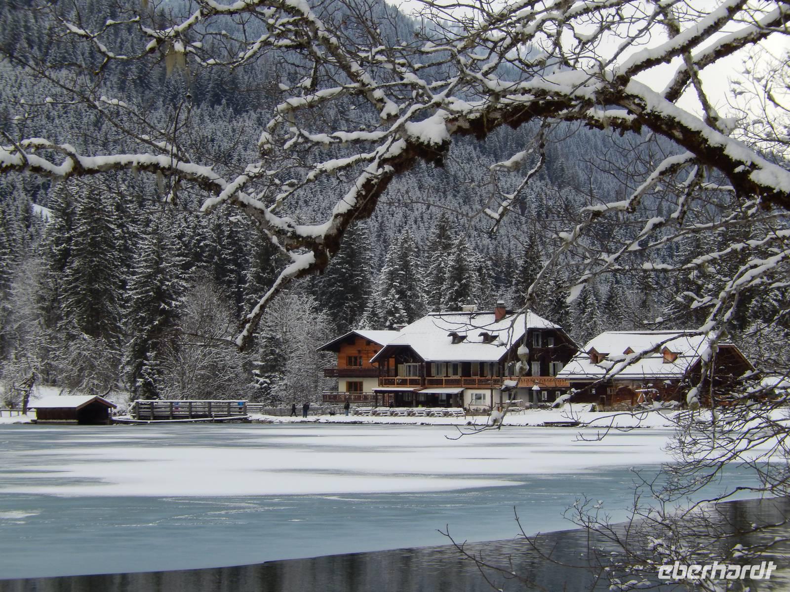 Auf einer Panoramastraße fuhren wir in das romantische hintere Seewigtal! Vom Parkplatz Bodensee spazierten wir zum steirischen Bodensee. Bei einem Spaziergang um den See genießen wir die idyllische Landschaft. Im Forellenhof, der direkt am See liegt, kehrten wir ein. Nach einer schöne Panoramafahrt erreichten wir die Ramsau unterhalb des Dachsteins. Wir besuchten die kleine Kirche und fuhren weiter nach Filzmoos. Beim Fiakerwirt steigen wir in die Pferdekutschen. Unser nächstes Ziel ist die „Oberhofalm"sie liegt am Fuße der imposanten Bischofsmütze im herrlich gelegenen Talschluß des „Hofalmgebietes". Gemächlich schnaubend ziehen die Pferde ihre Kutsche zu der urigen Alm. Besonders im Winter- durch die zauberhafte Wintermärchenlandschaft - ein besonderes Vergnügen. Es erwartete uns die Weihnachtsidylle "Hofalm". Ein Rundweg um den Almsee mit lebensgroßen Krippen, Scherenschnitt, Märchenerzählern und Weisenbläser erwarteten uns. Ein sehr schönes Erlebnis.