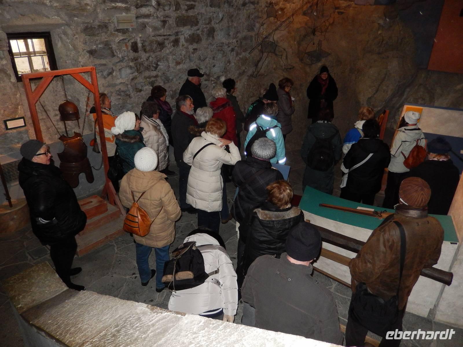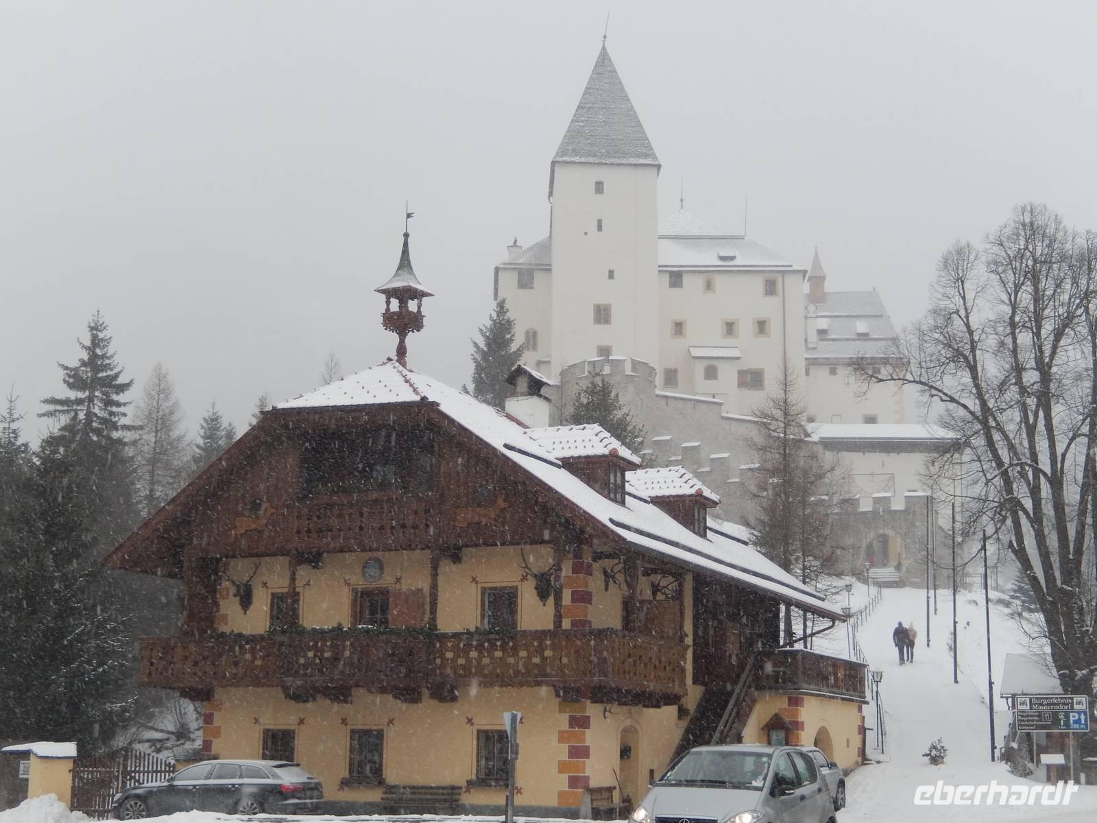 Heute besuchten wir die Burg Mautendorf. Die mittelalterliche Burg aus dem 13. Jahrhundert ist ein einzigartiges Kleinod. Diese Burg war zeitweilig Sommerresidenz der Fürstbischöfe von Salzburg. Von der Burg hatten wir einen Blick auf die Radstädter Tauern, die Hohen Tauern sowie die Nockberge. Frau Haupt führte uns durch die mittelalterliche Ausstellung und wir erhielten interessante Informationen über das Leben der ehemaligen Bewohner im Mittelalter. Anschließend kehrten wir in die Burgschänke ein. Doch nicht einfach hinsetzen, den bevor gespeißt wurde, tauschten einige Ihr Outfit und schlüpften in die Kostüme des Burgherren, der Burgherrin, den Vorkoster und die Knechte. Bevor wir die Schänke betretten durften mußte jeder erst einmal die Hände waschen. Jetzt knurrte doch der Magen. Eine Riesenpfanne wurde herein getragen. Käsespätzle, Blutwurstgeröstl und Sauerkraut wurde uns von den Knechten rustikal auf Brettern gereicht. Schön einmal von den Männern bedient zu werden. Gut gestärkt liefen wir in den Ort Mauterndorf. Einige stürmten das Schmuckgeschäft oder kehrten in das Cafe ein. Die etwas sportlichen Gäste wanderten im Schneetreiben zum Mauterndorfer Skizentrum. In der Alm liessen wir uns den Grog, Kaffee oder Glühwein schmecken. Kurz vor 18.00 Uhr fuhren wir mit der Kabinenbahn auf den Berg. Unter dem Motto "Feiern auf dem Berg" erwartete uns ein Fondue und eine Band die mit viel Spaß und Humor. Die Stimmung war ausgelassen, es wurde getanzt und viel gelacht.